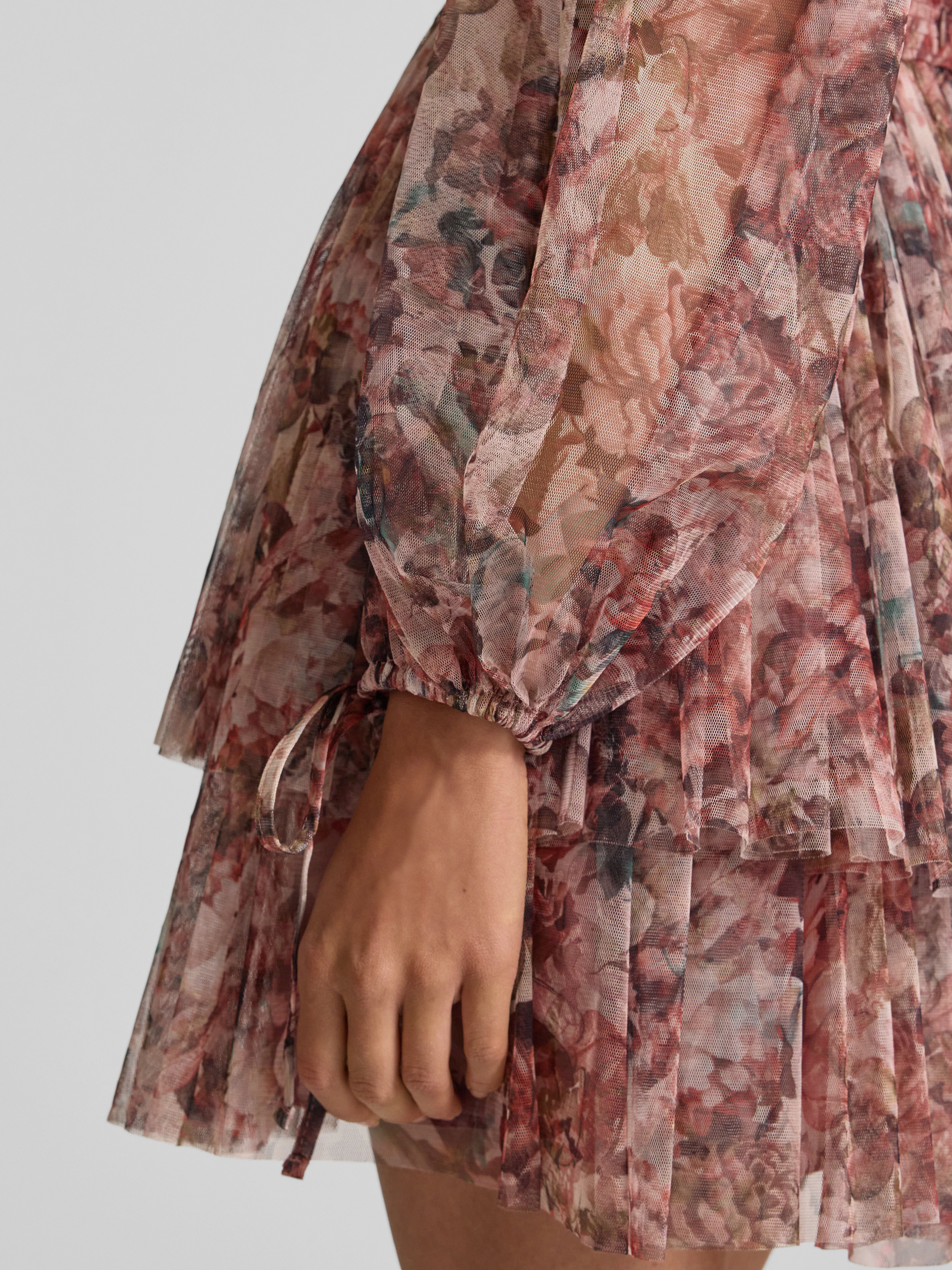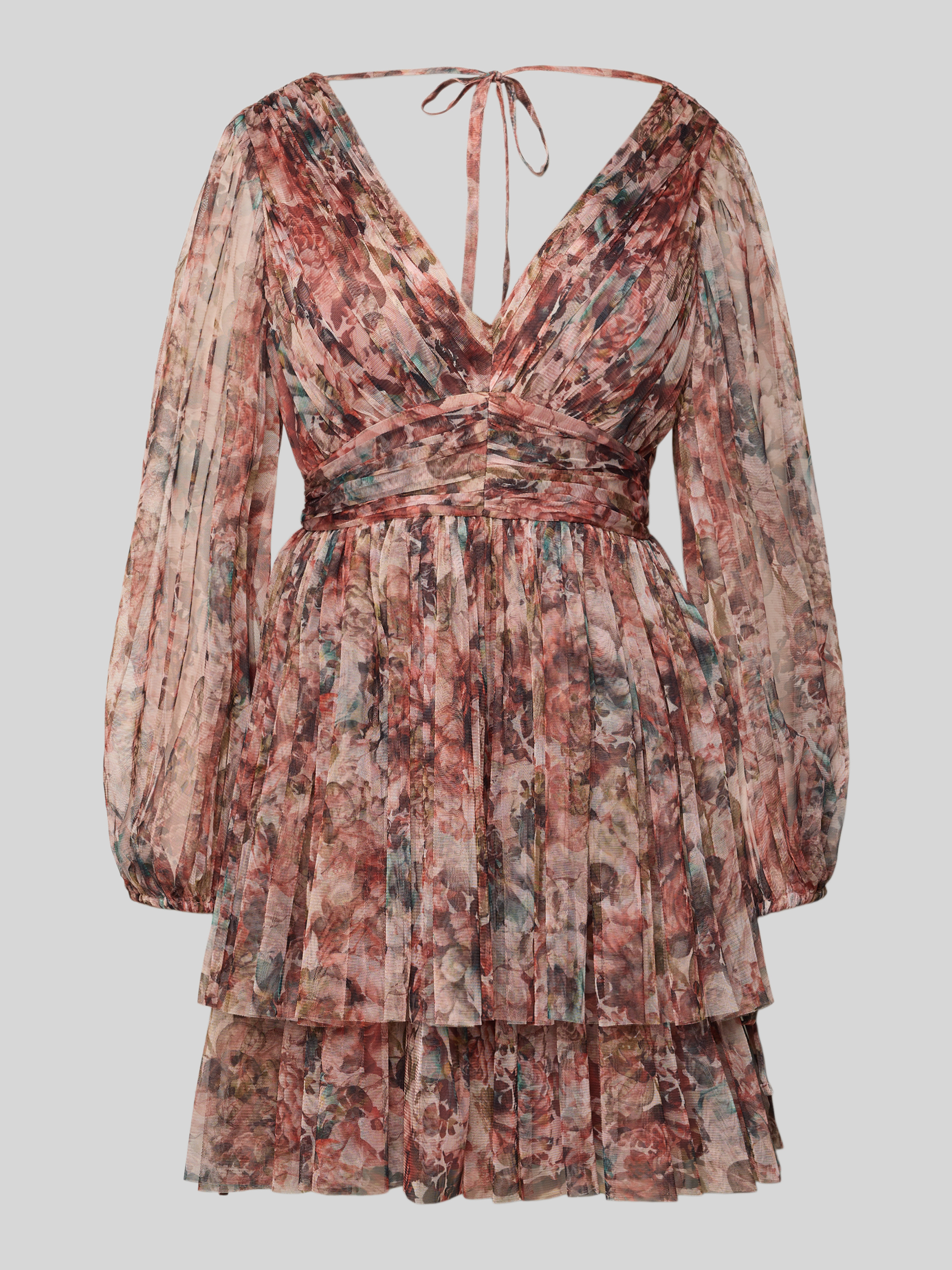 Sukienka koktajlowa z paskiem w talii - różowy melanż