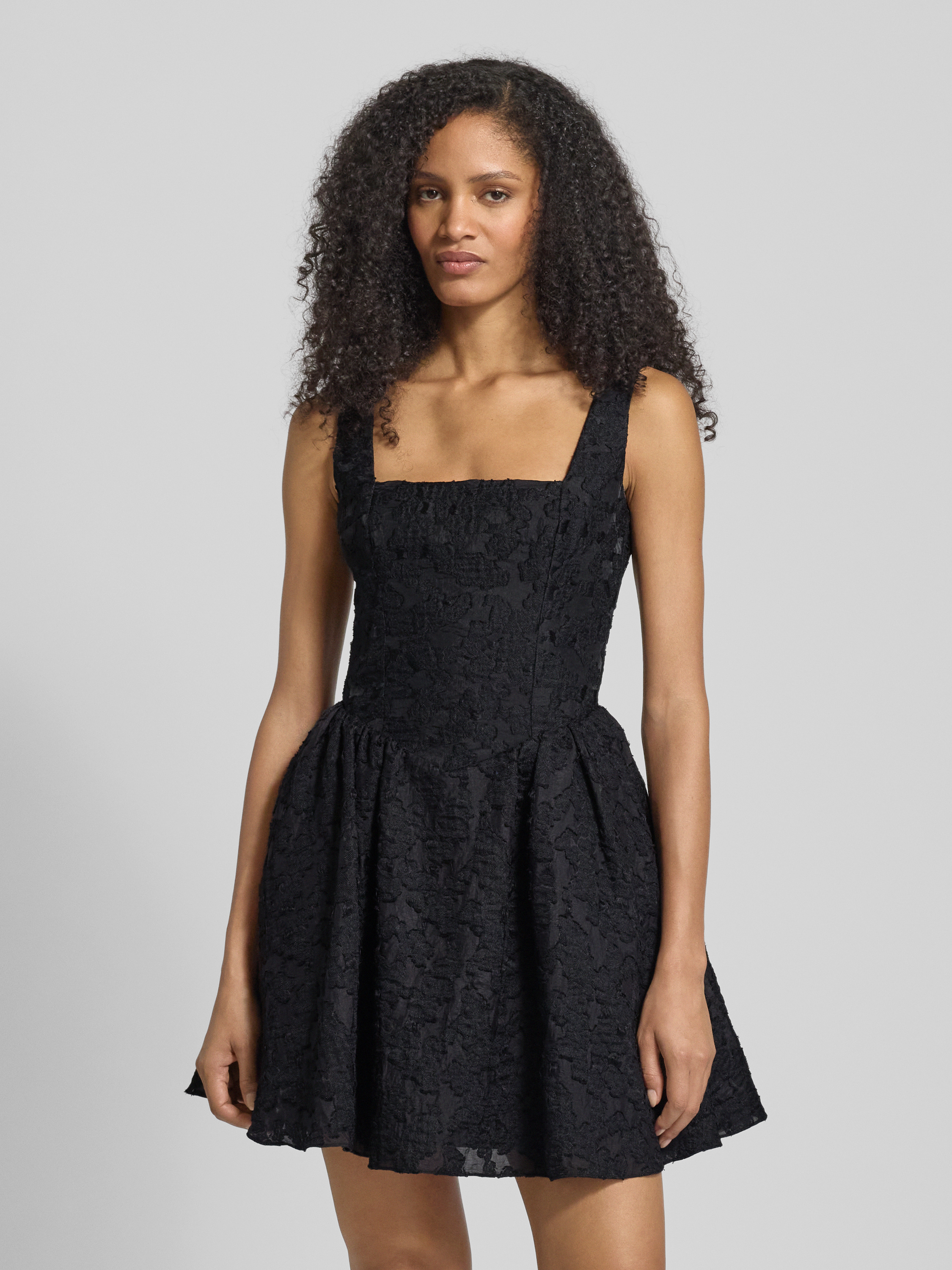 Sukienka koktajlowa z prostokątnym dekoltem - czarny