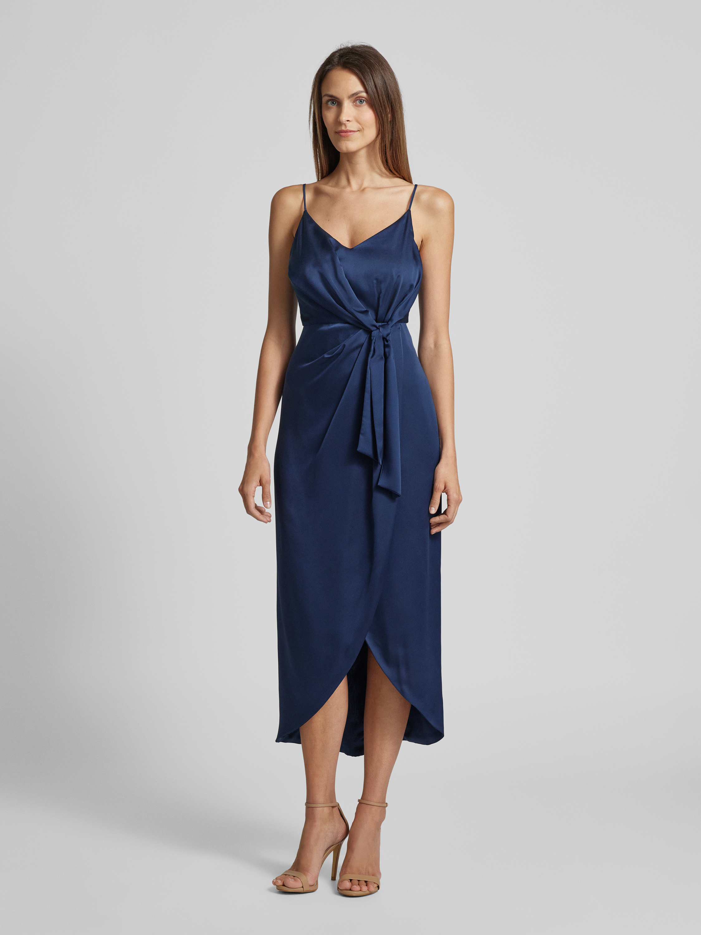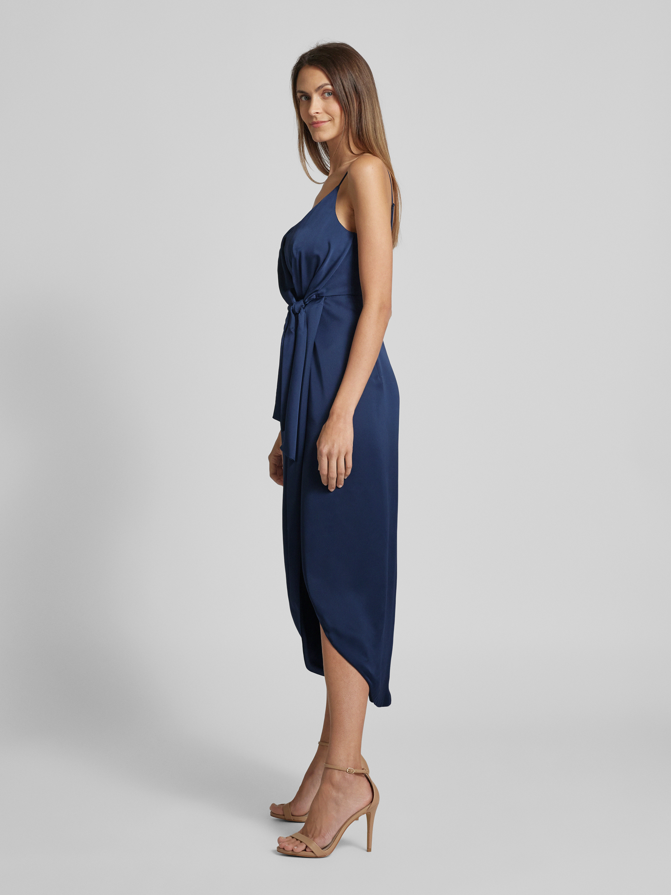 Sukienka koktajlowa z wiązanym detalem - granatowy