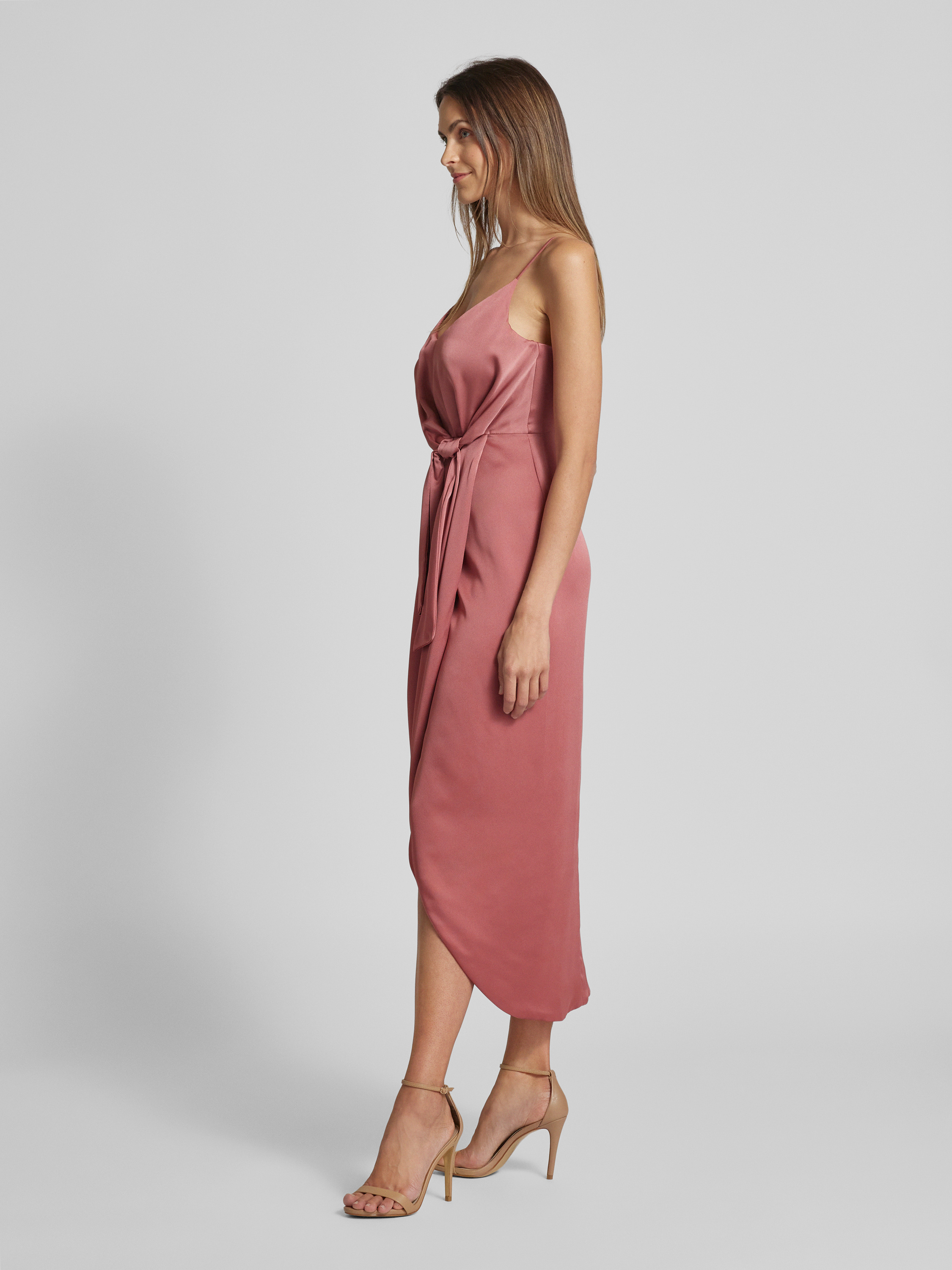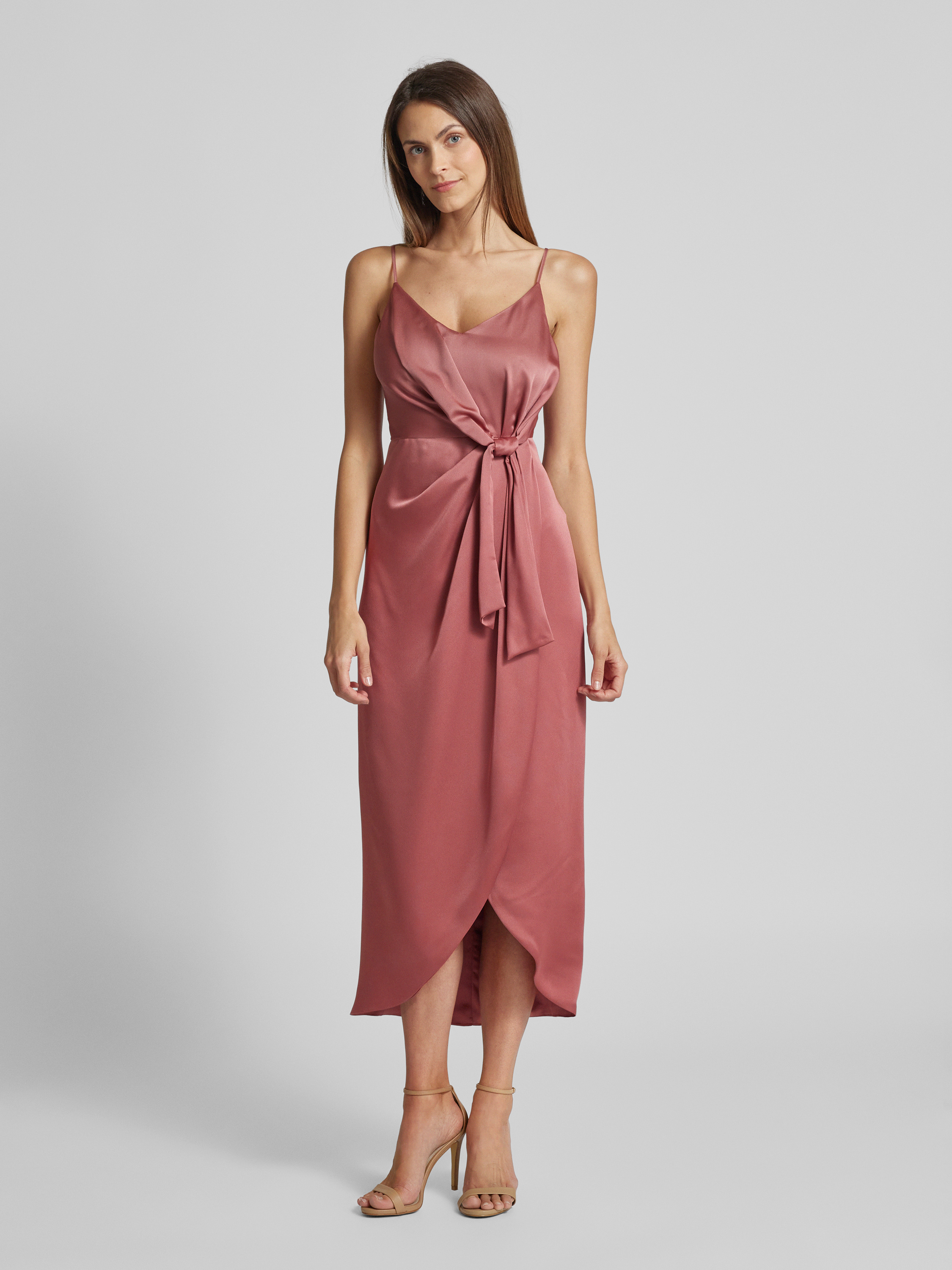 Sukienka koktajlowa z wiązanym detalem - różowawy melanż