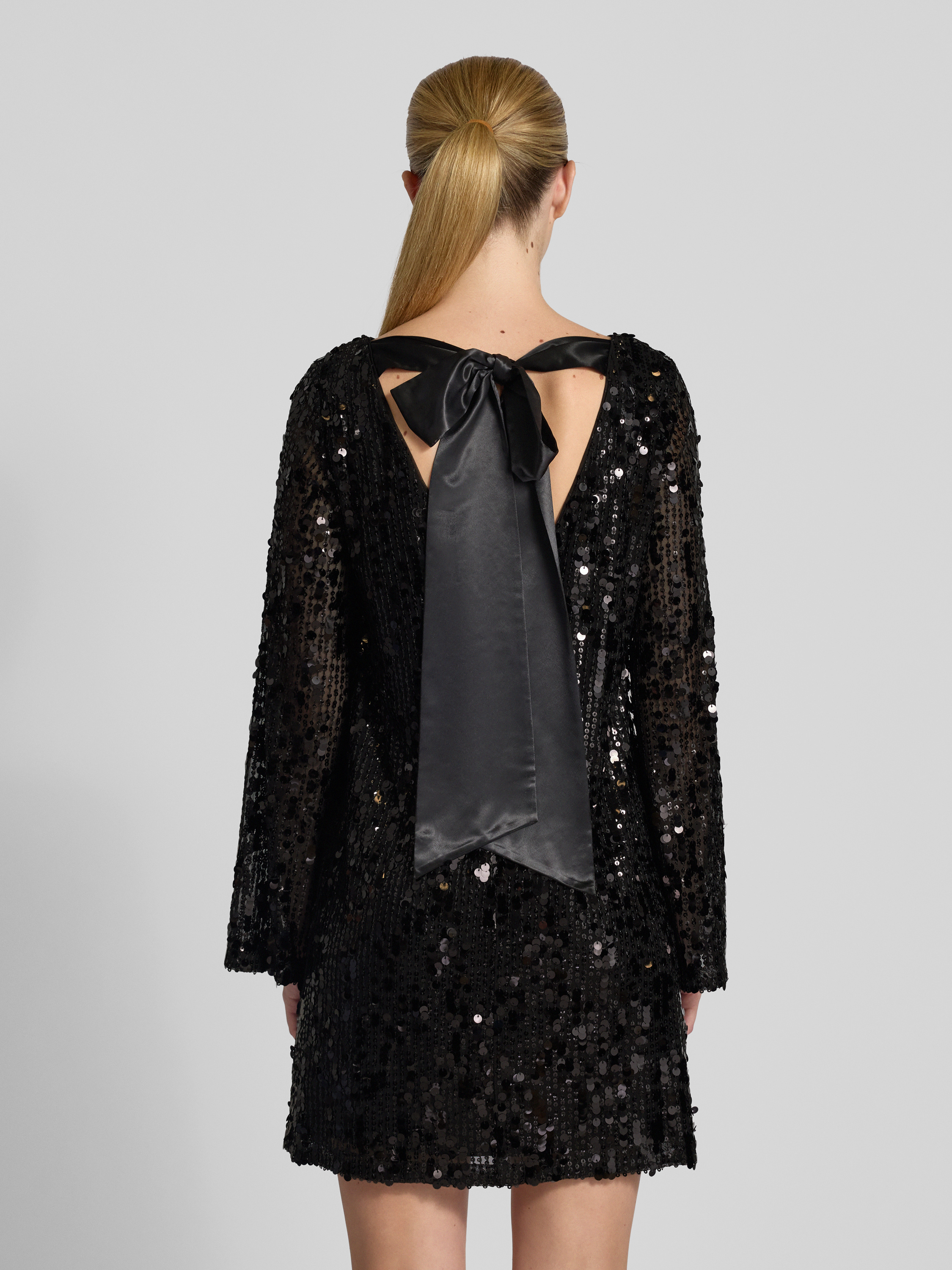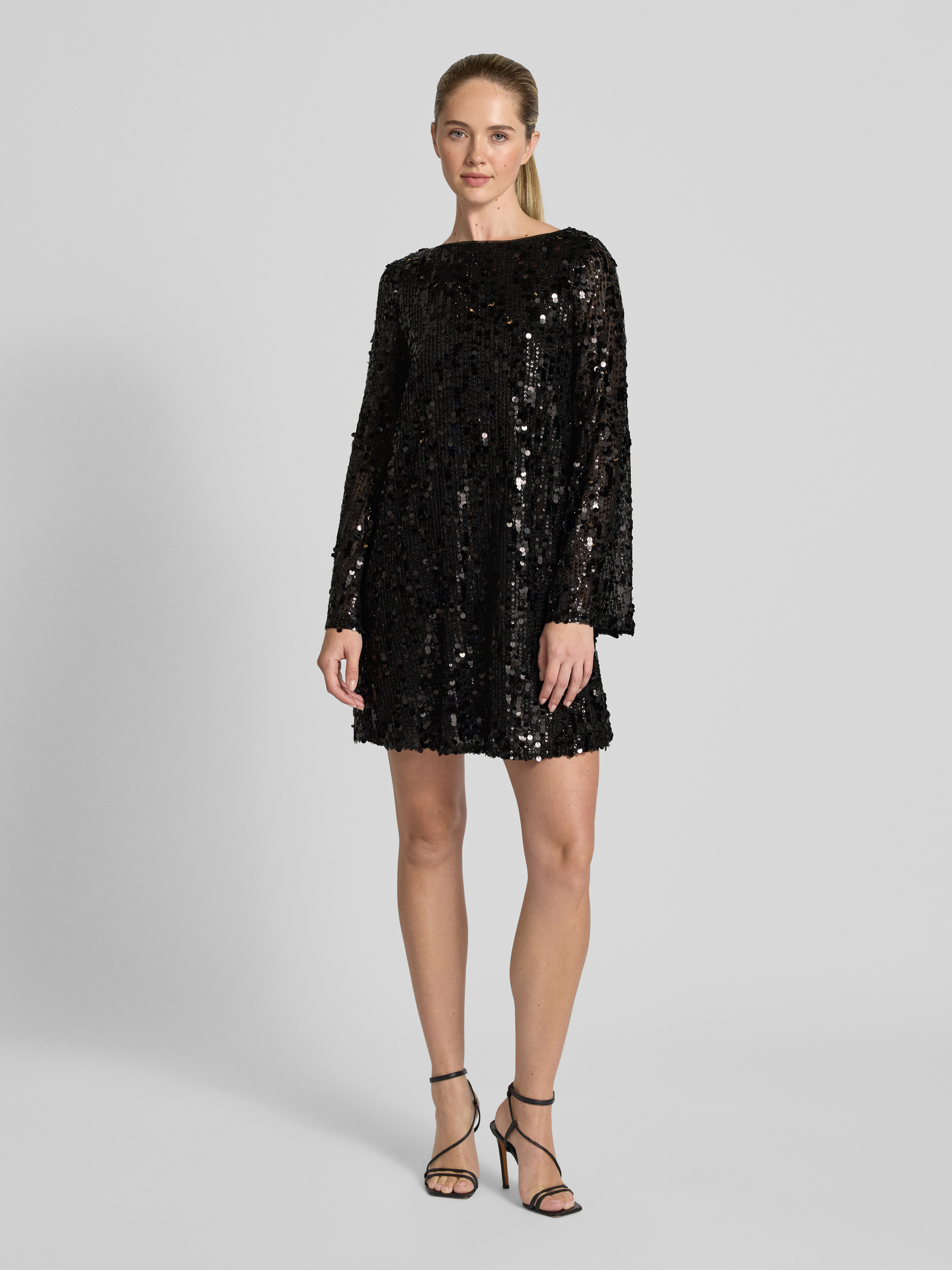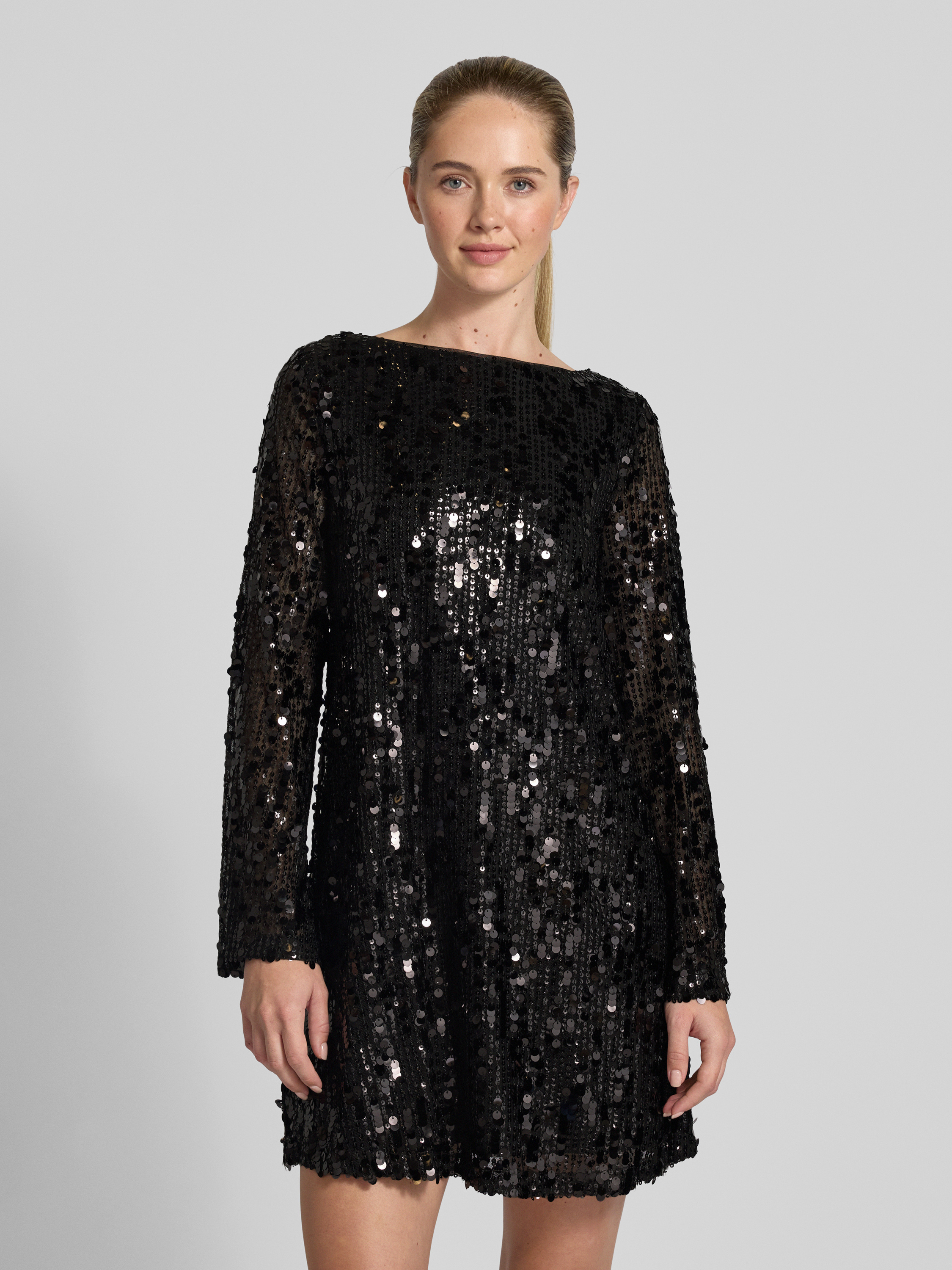 Sukienka mini o kroju relaxed fit z cekinowym obszyciem na całej powierzchni - czarny