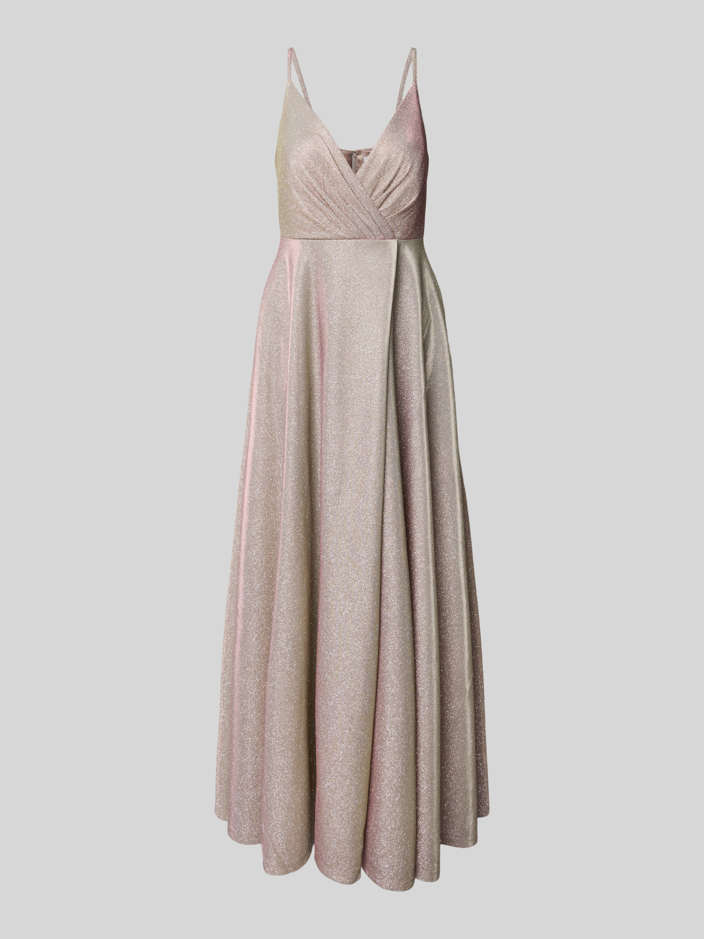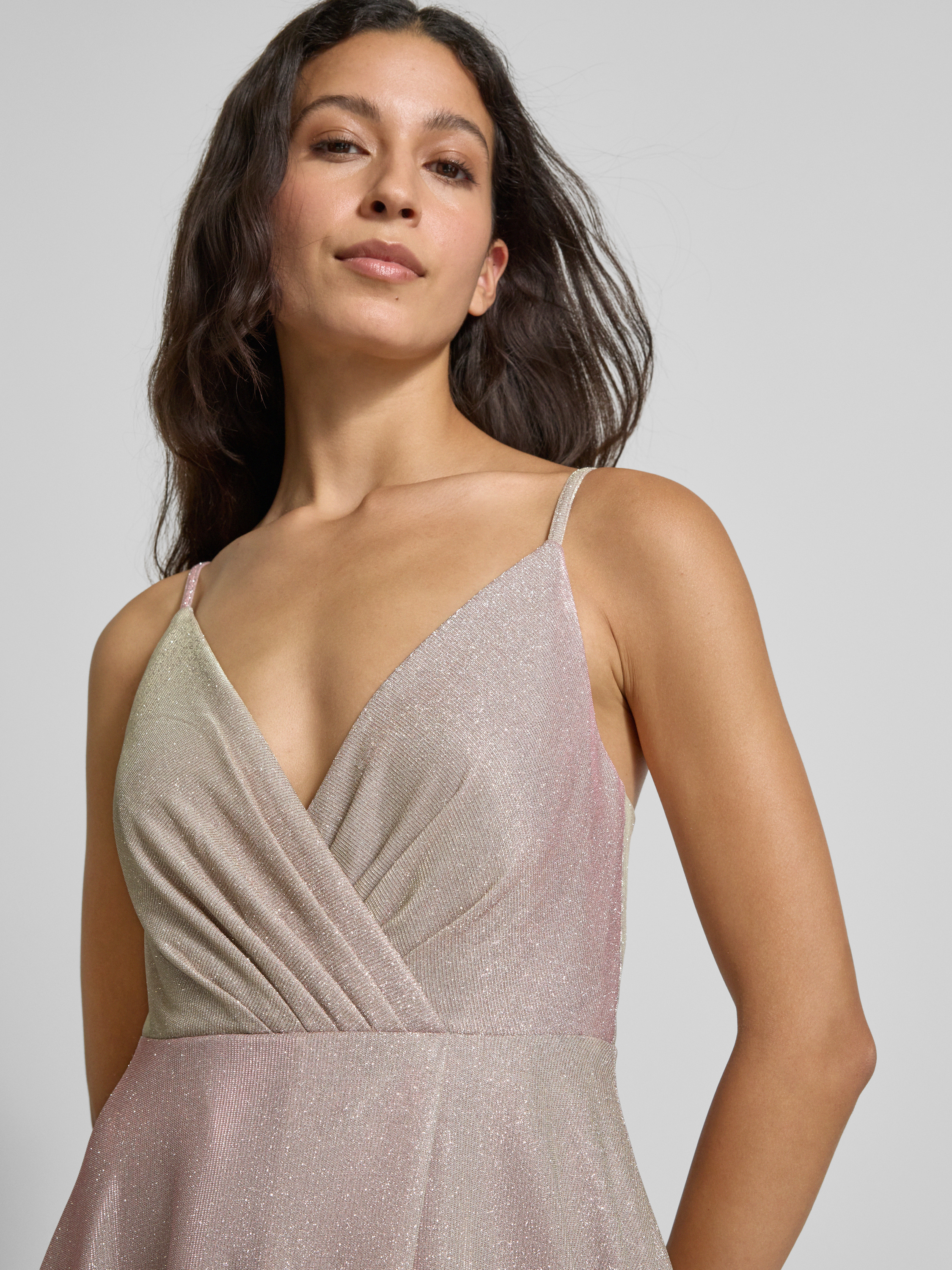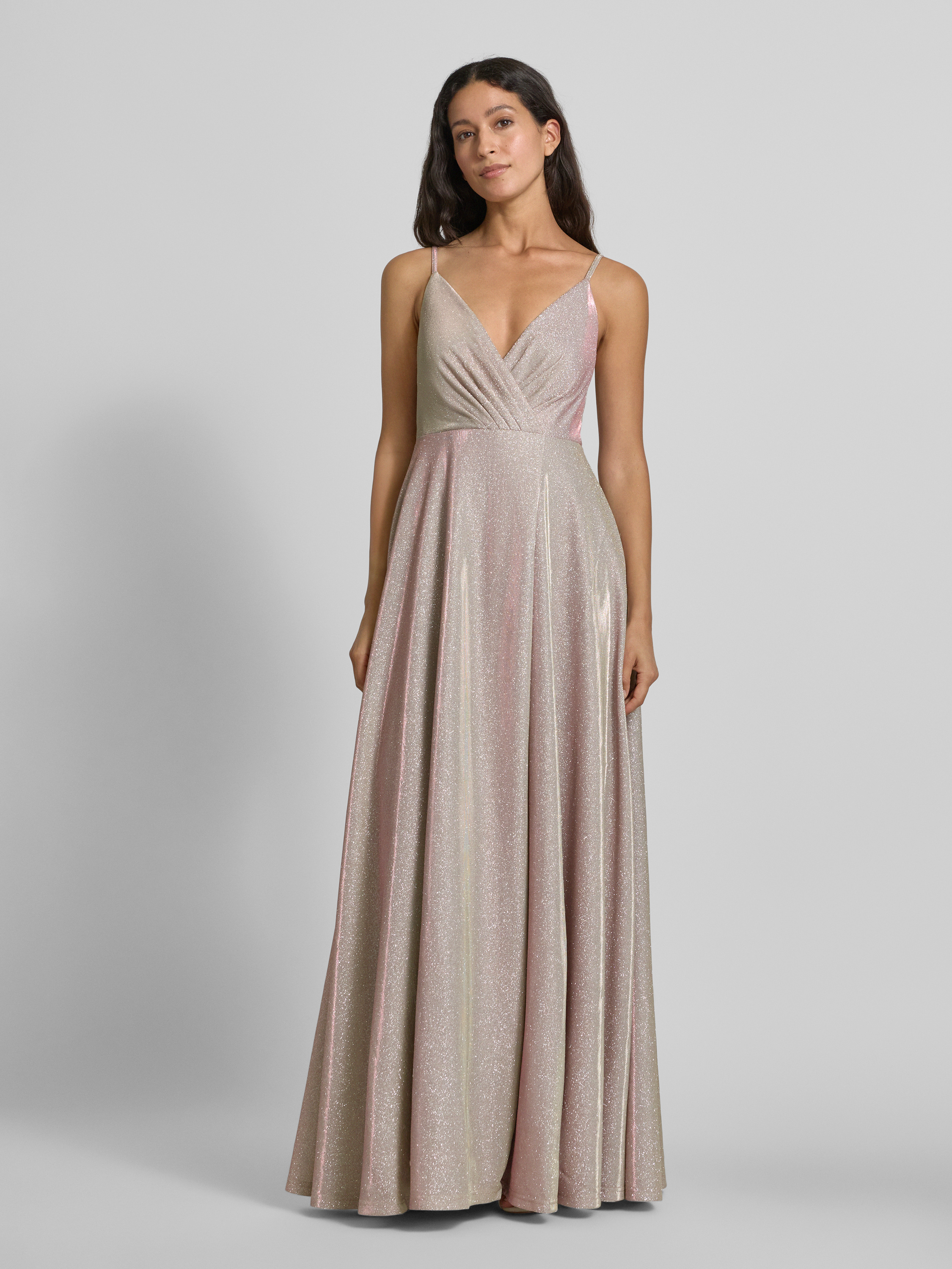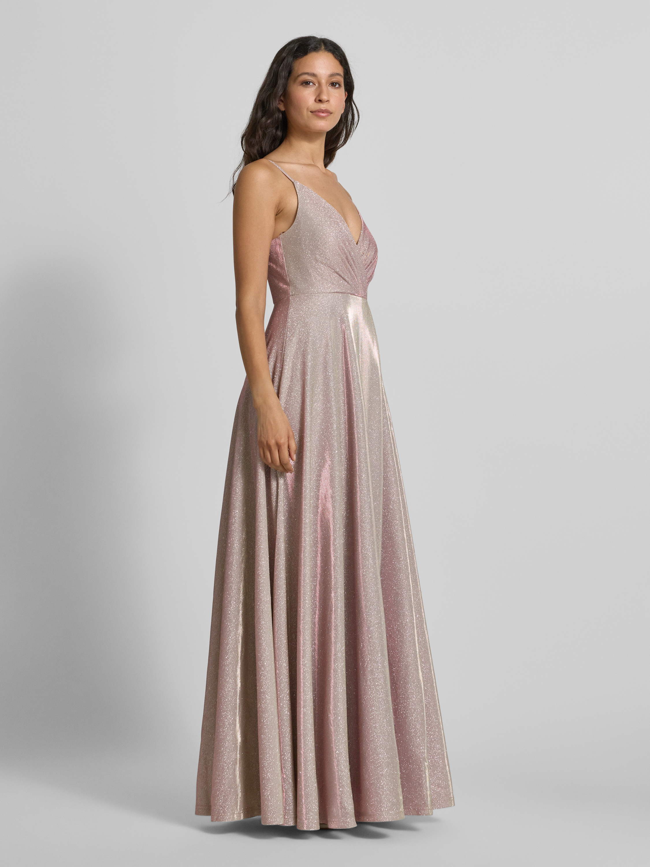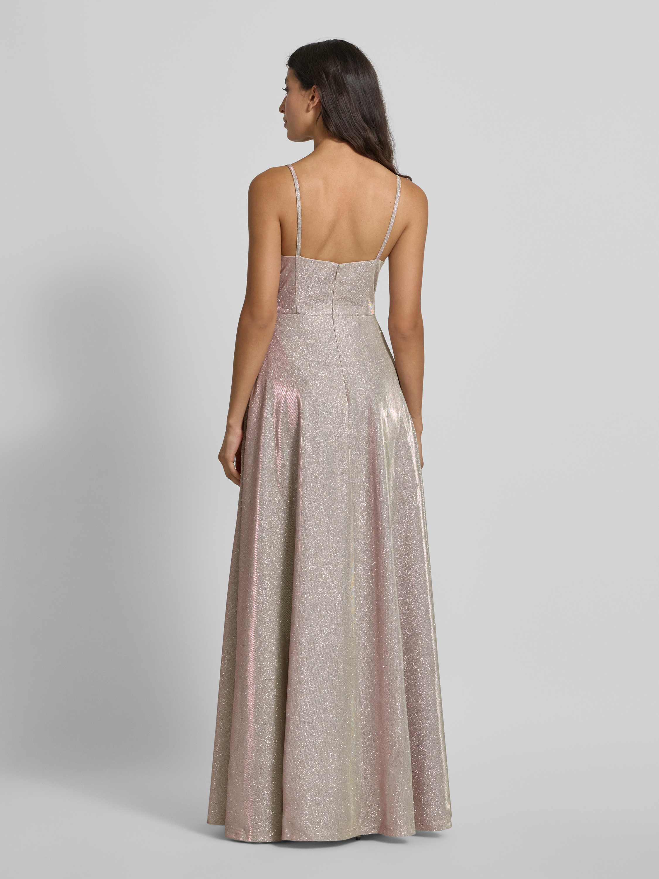 Sukienka wieczorowa z cienkimi ramiączkami - metaliczny różowy