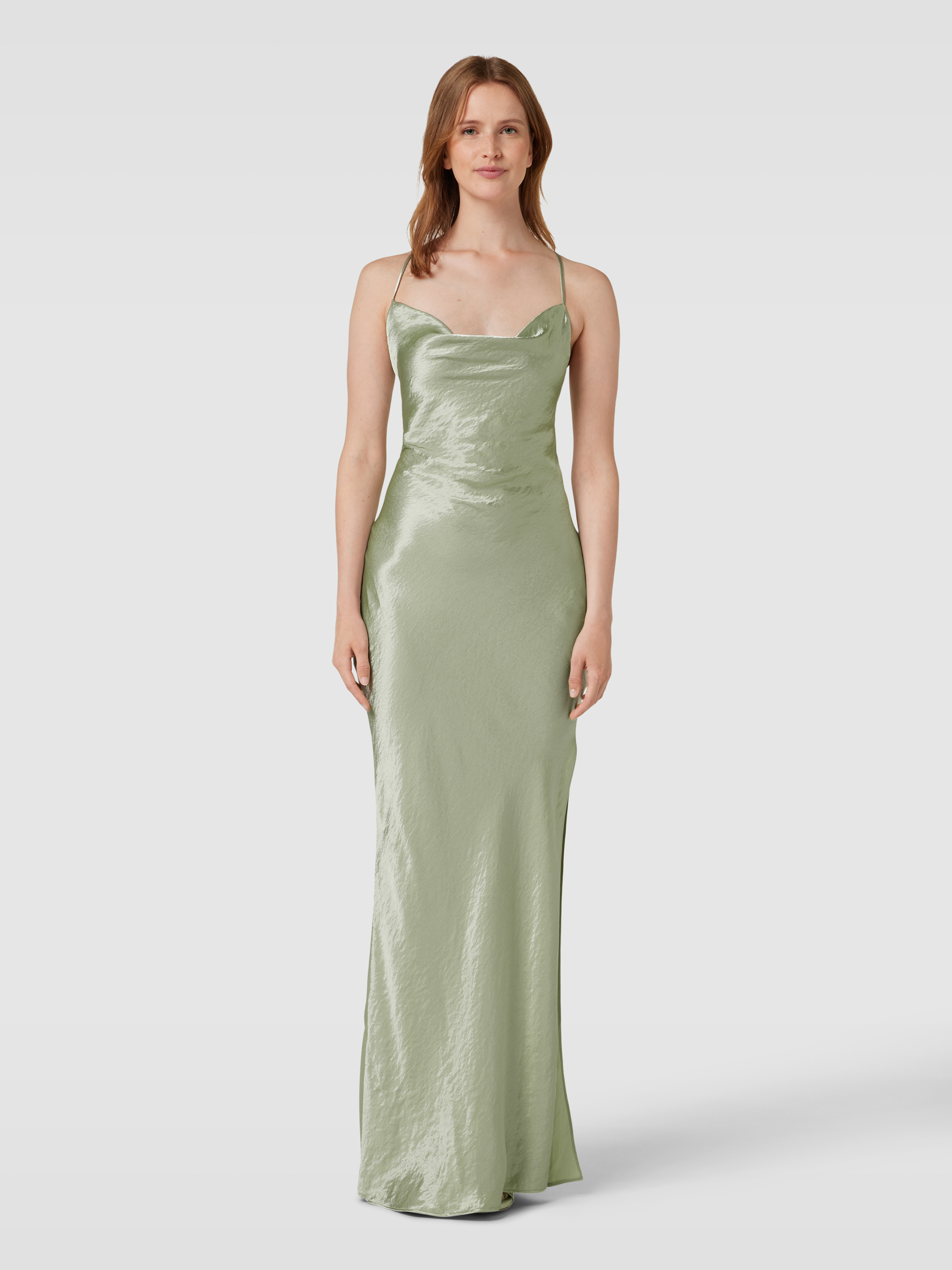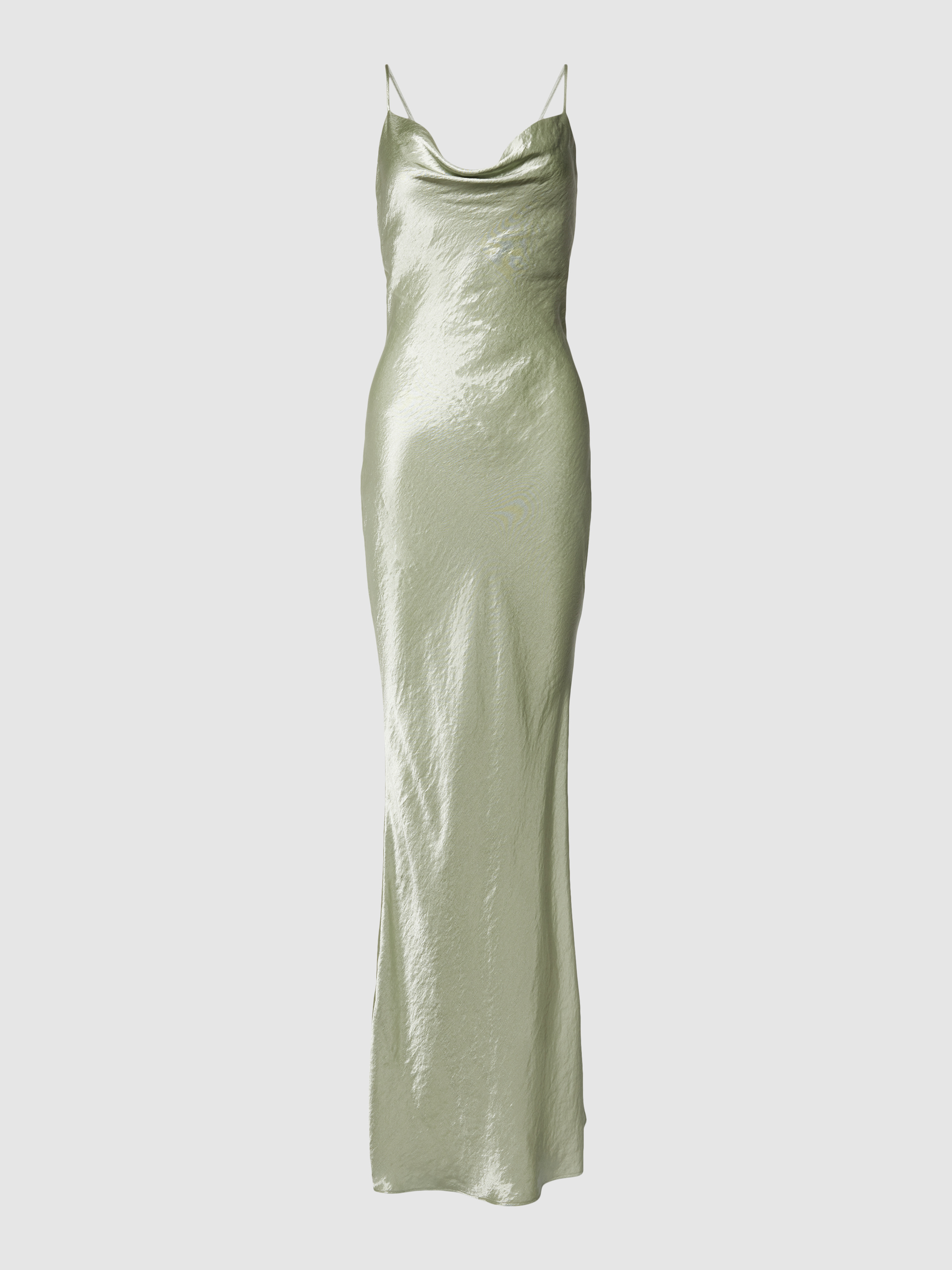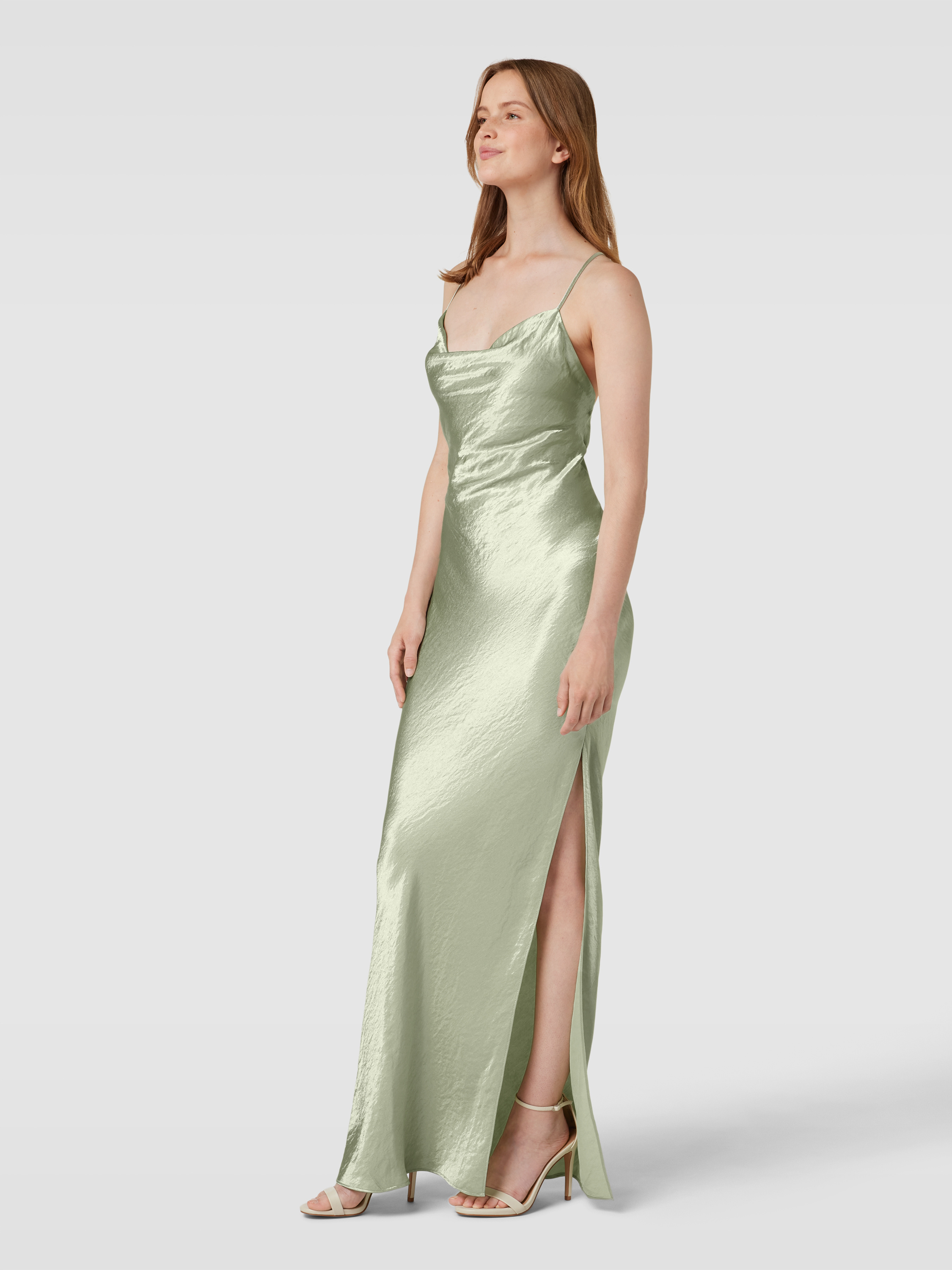 Sukienka wieczorowa z lejącym dekoltem - limonkowy melanż