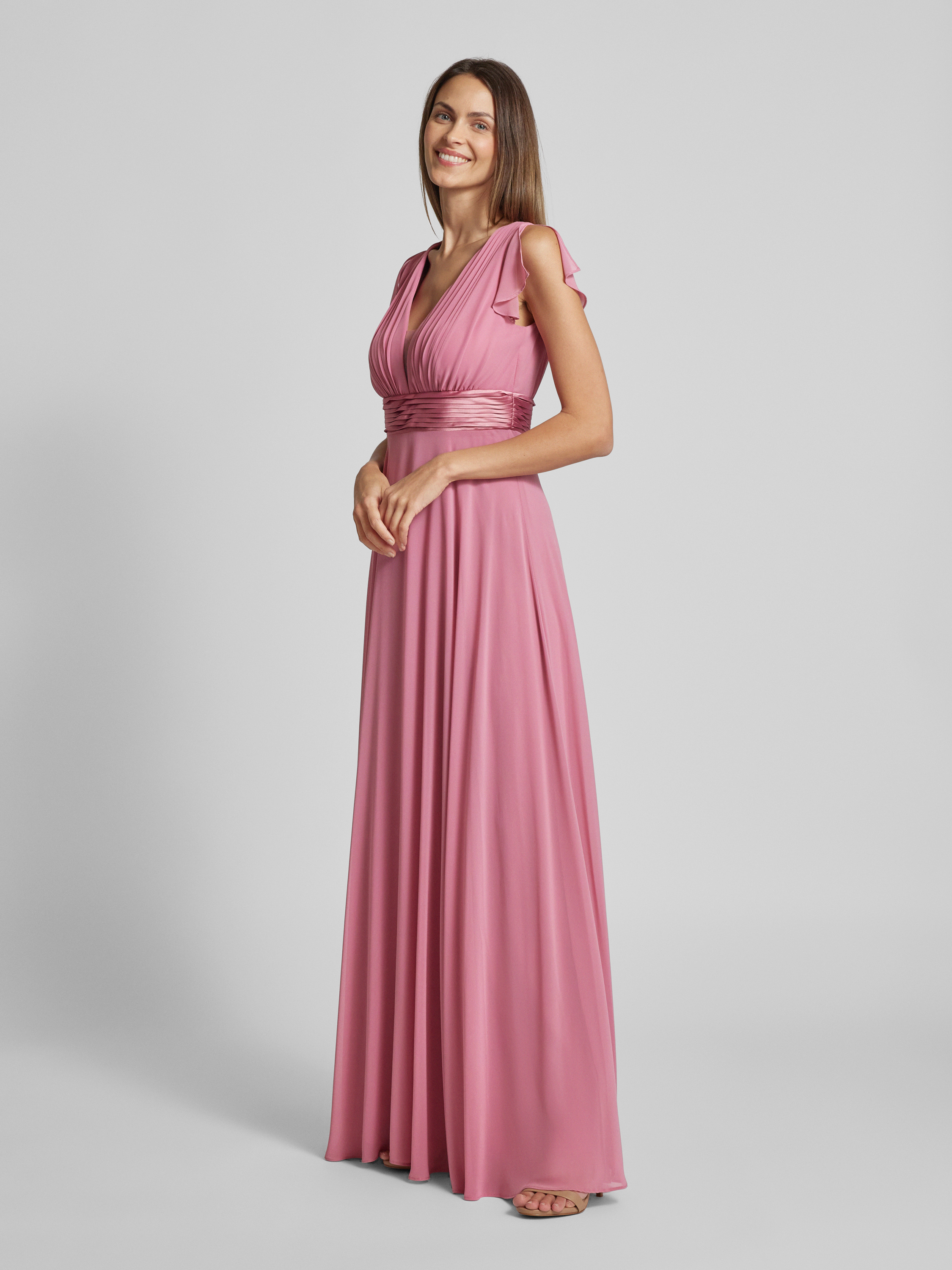 Sukienka wieczorowa z plisami - brudnoróżowy
