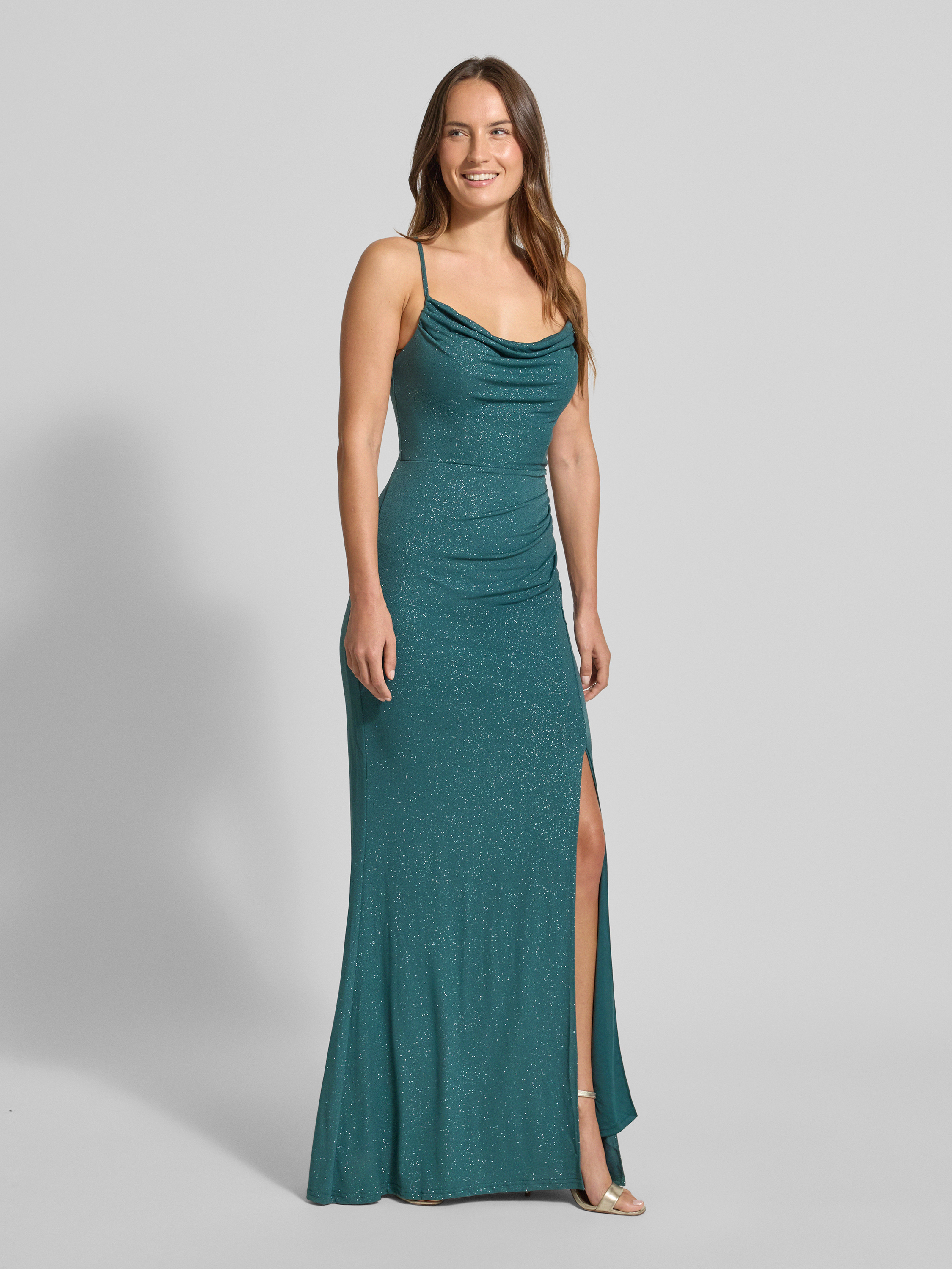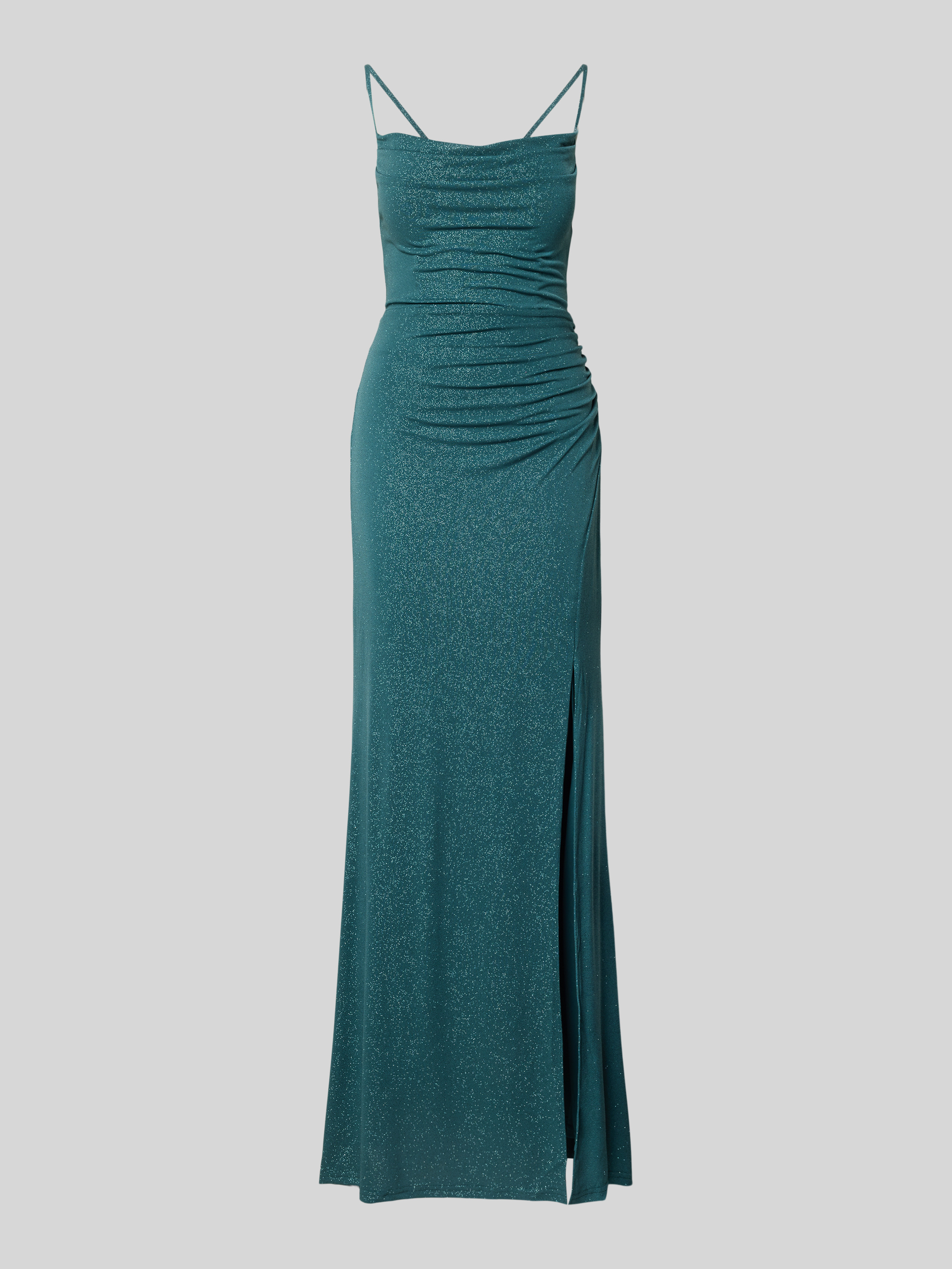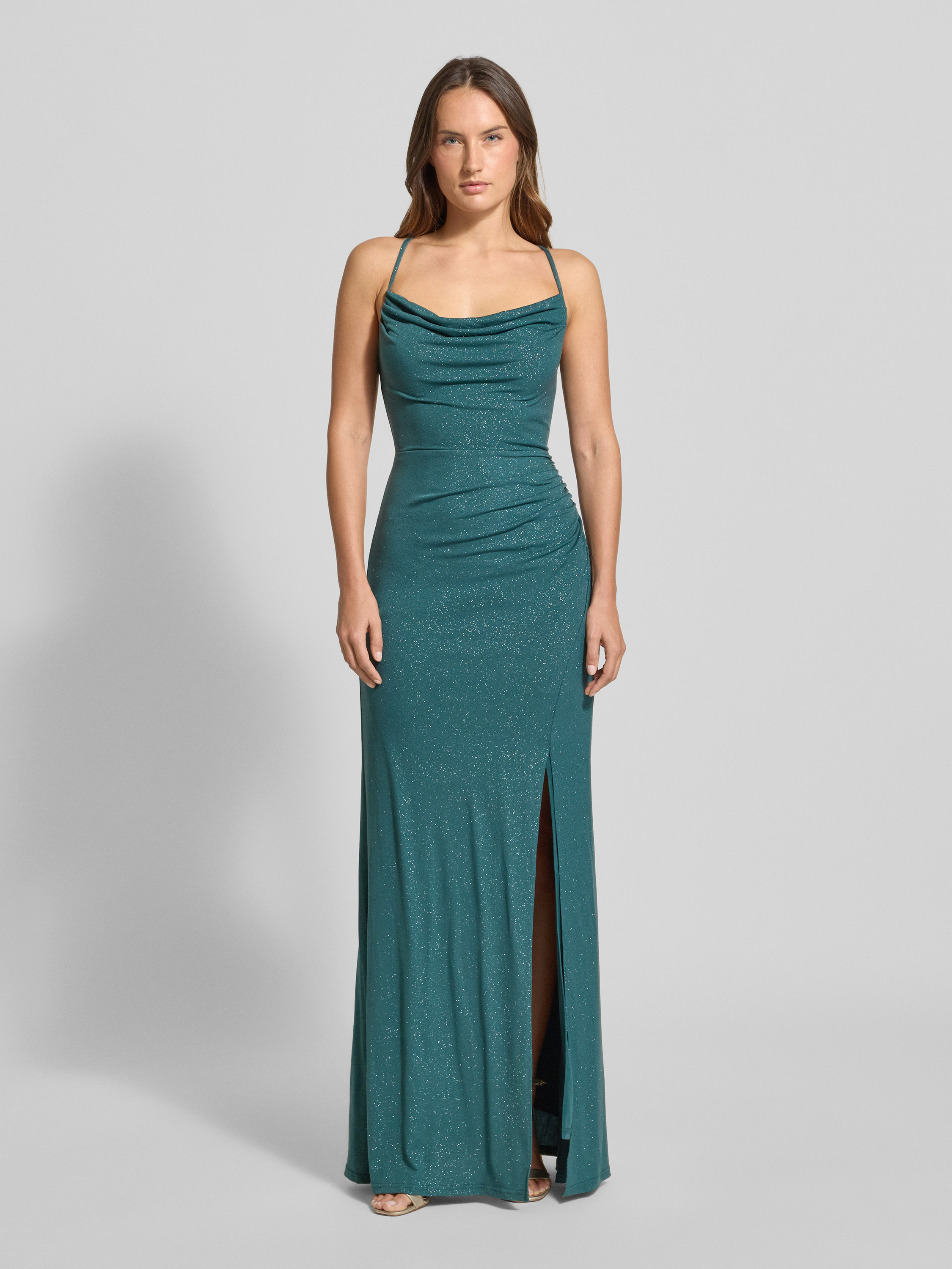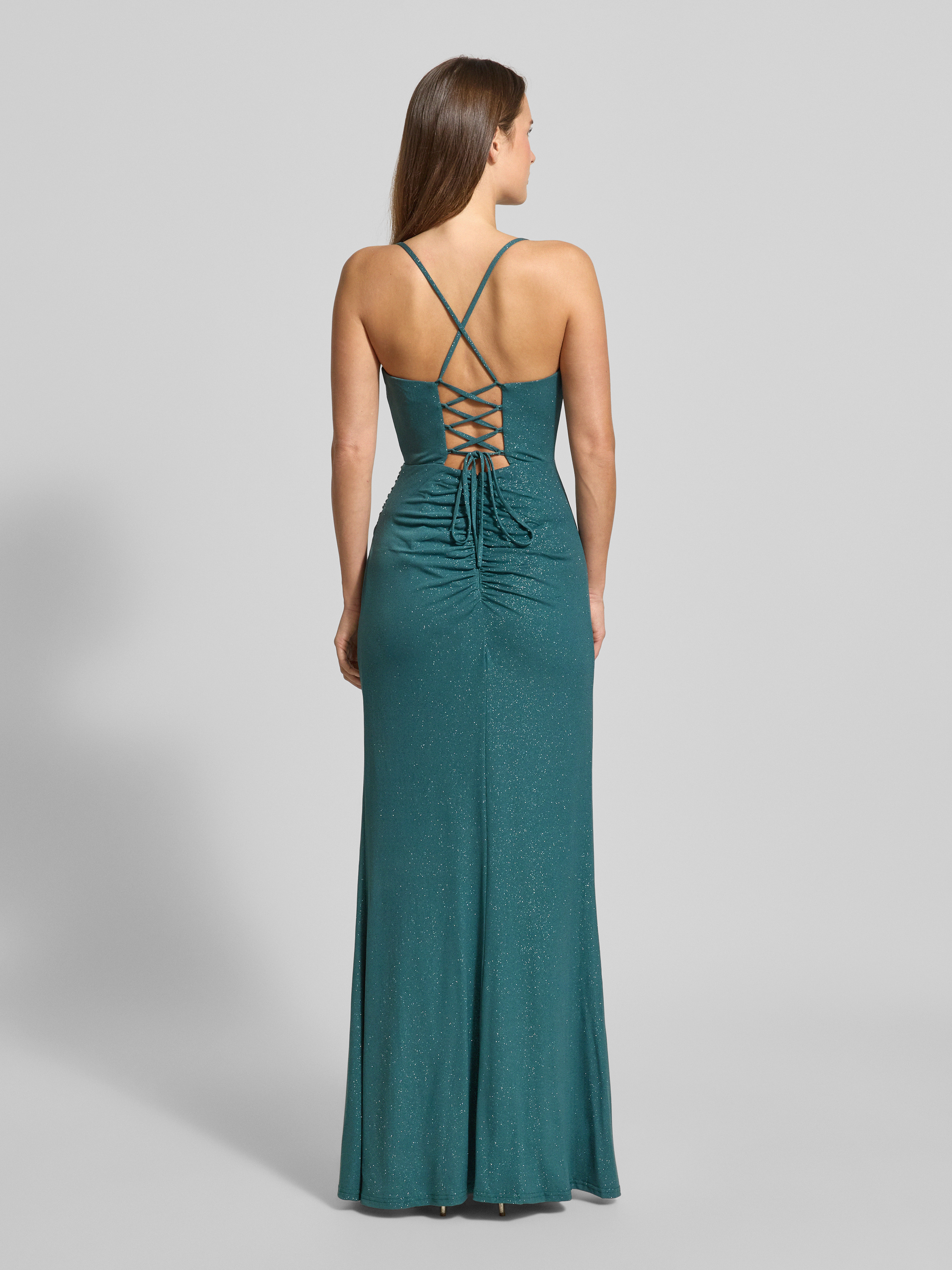 Sukienka wieczorowa z rozcięciem i wiązaniem z tyłu - ciemnozielony