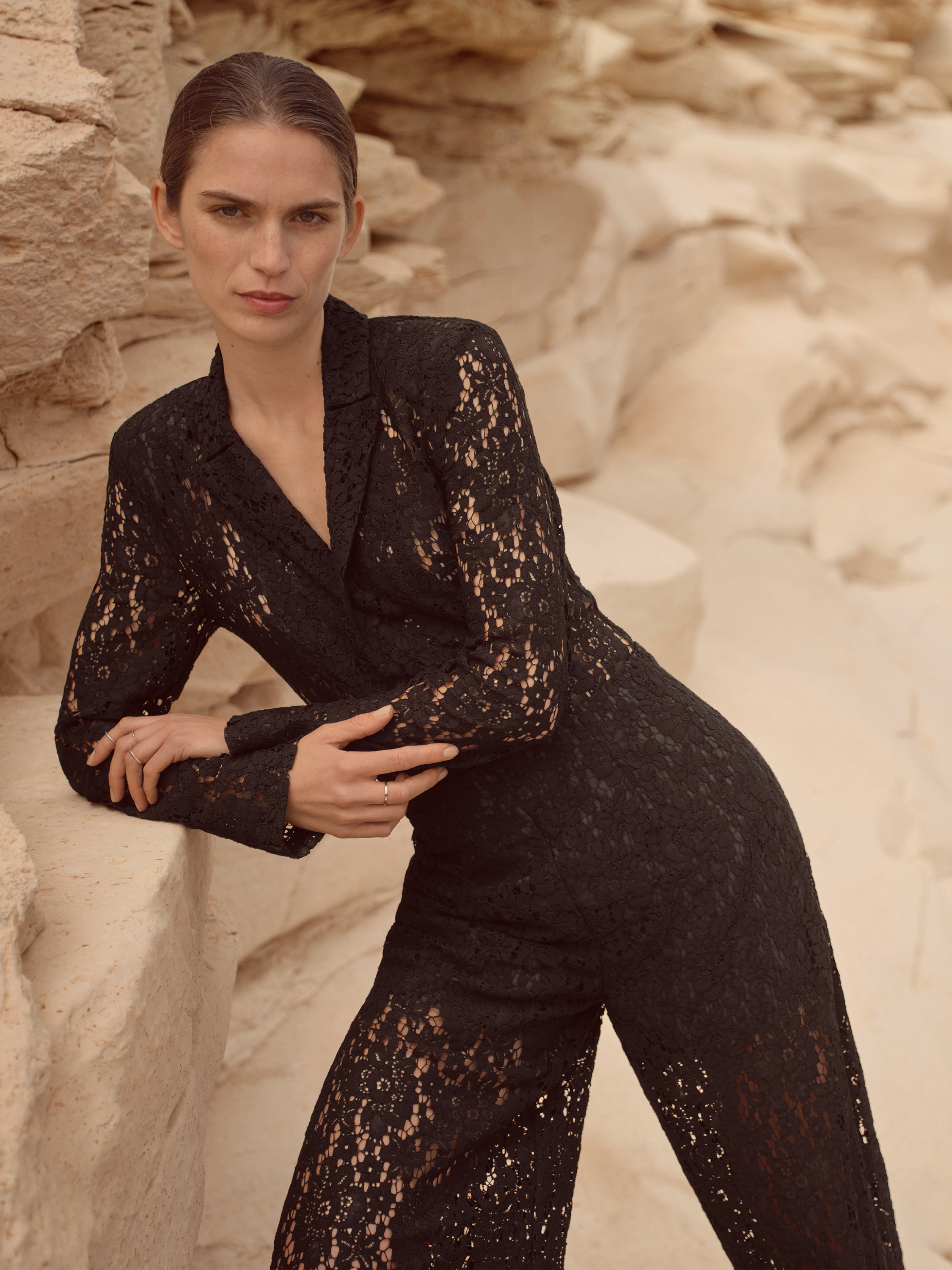 Spodnie koktajlowe o luźnym kroju z haftem angielskim