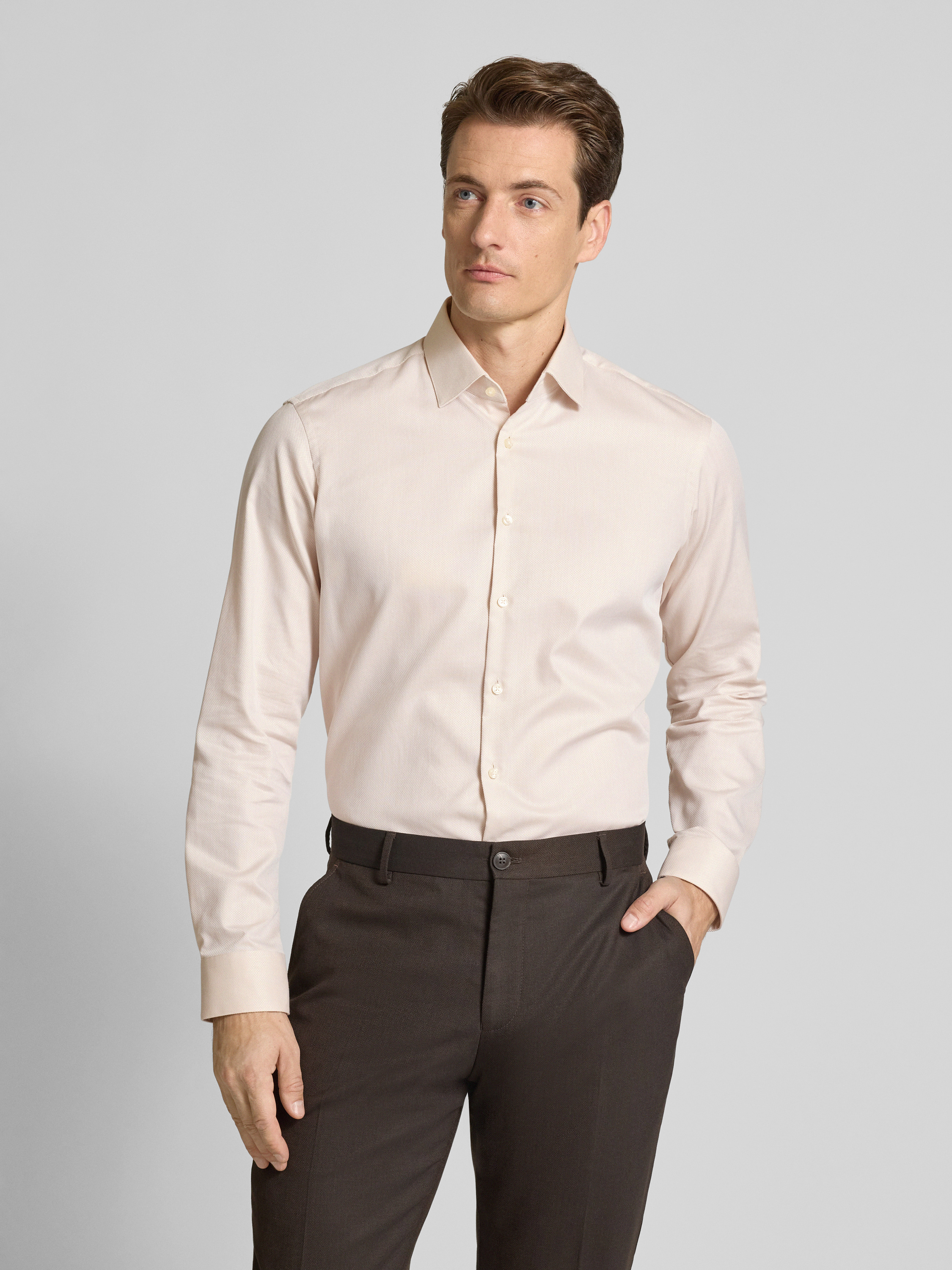 Koszula biznesowa o kroju regular fit z kołnierzykiem typu kent - piaskowy