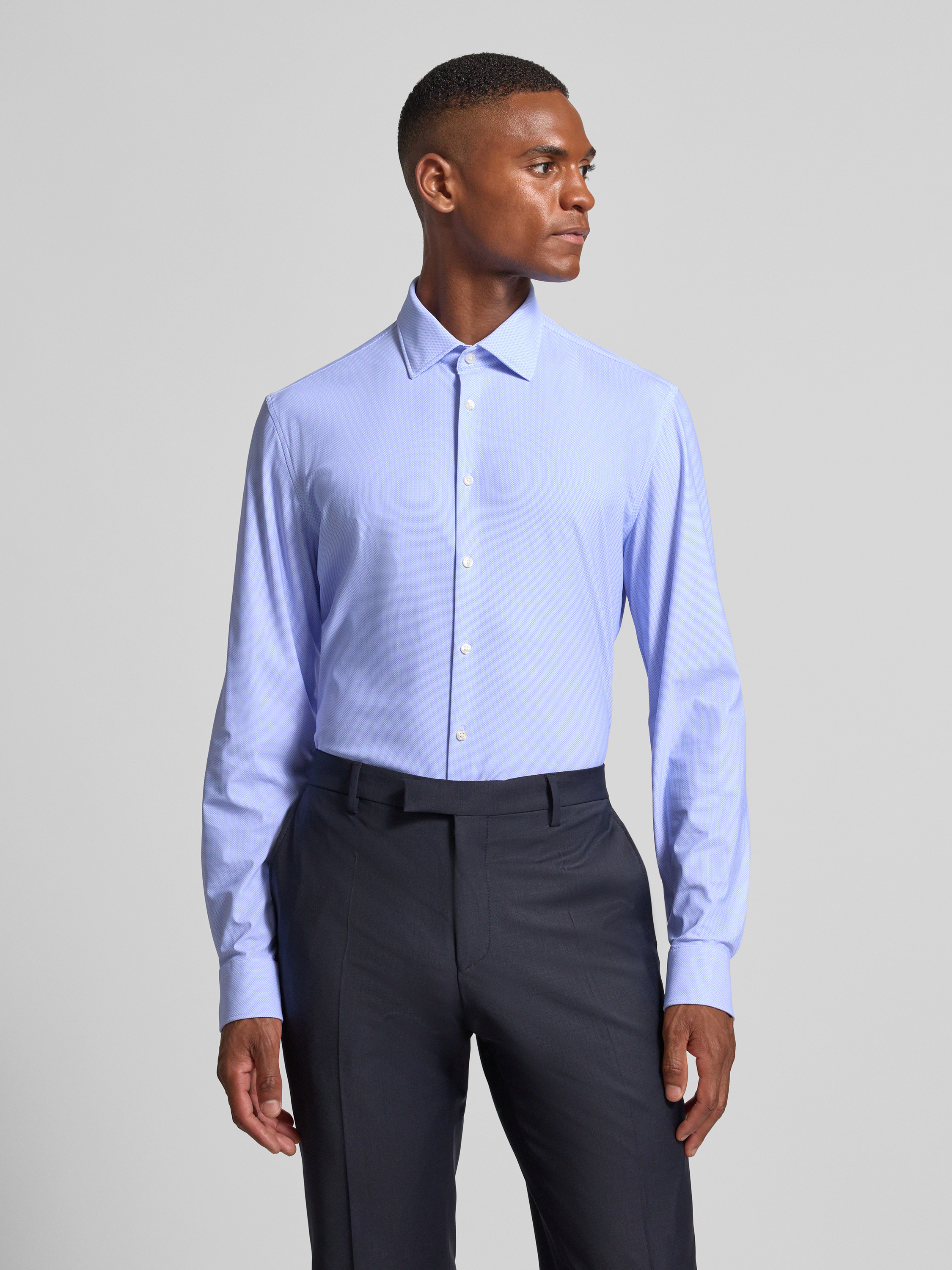 Koszula biznesowa o kroju slim fit z kołnierzykiem typu kent - błękitny