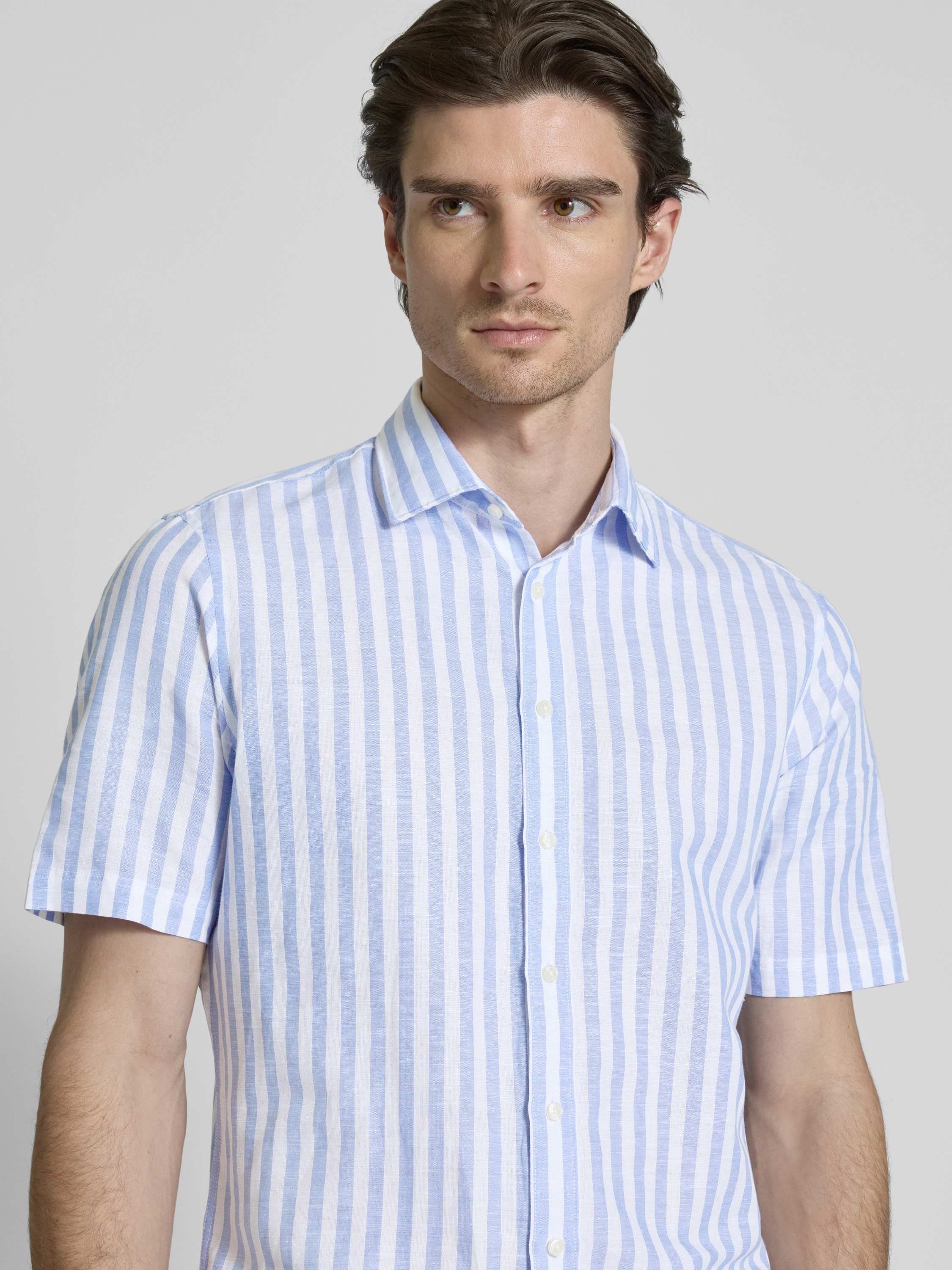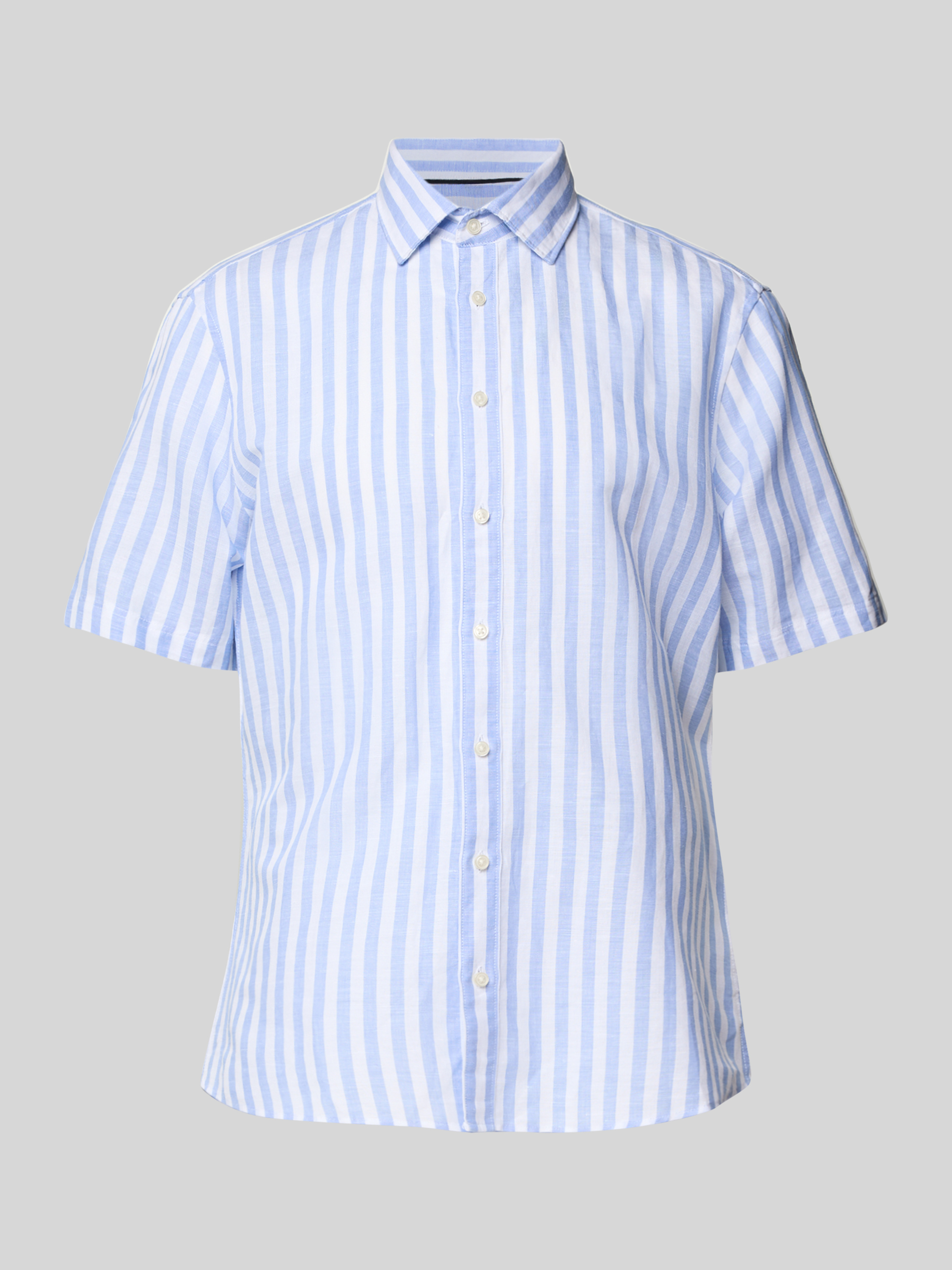 Koszula lniana o kroju casual fit z rękawem o dł. 1/2 - błękitny