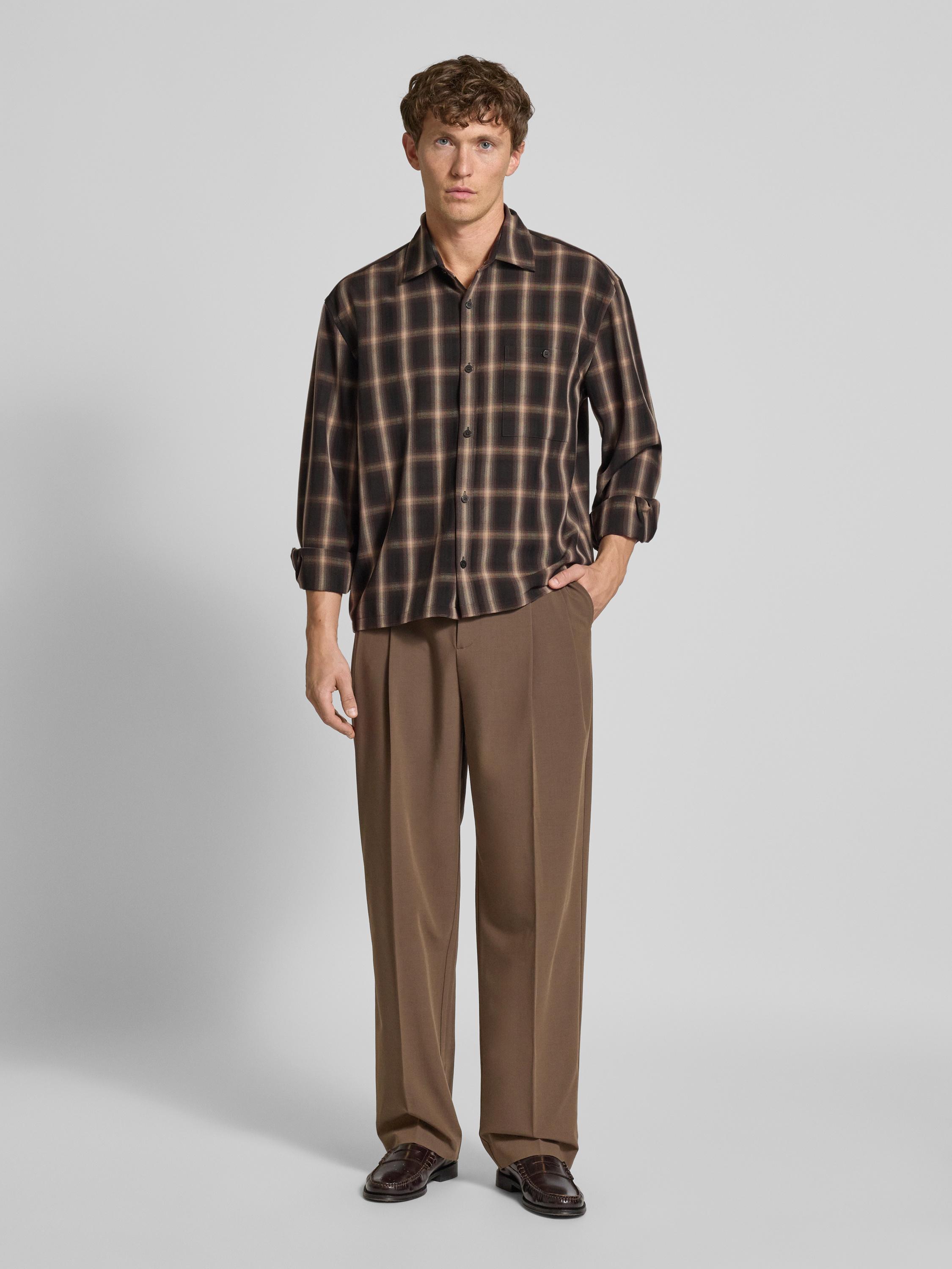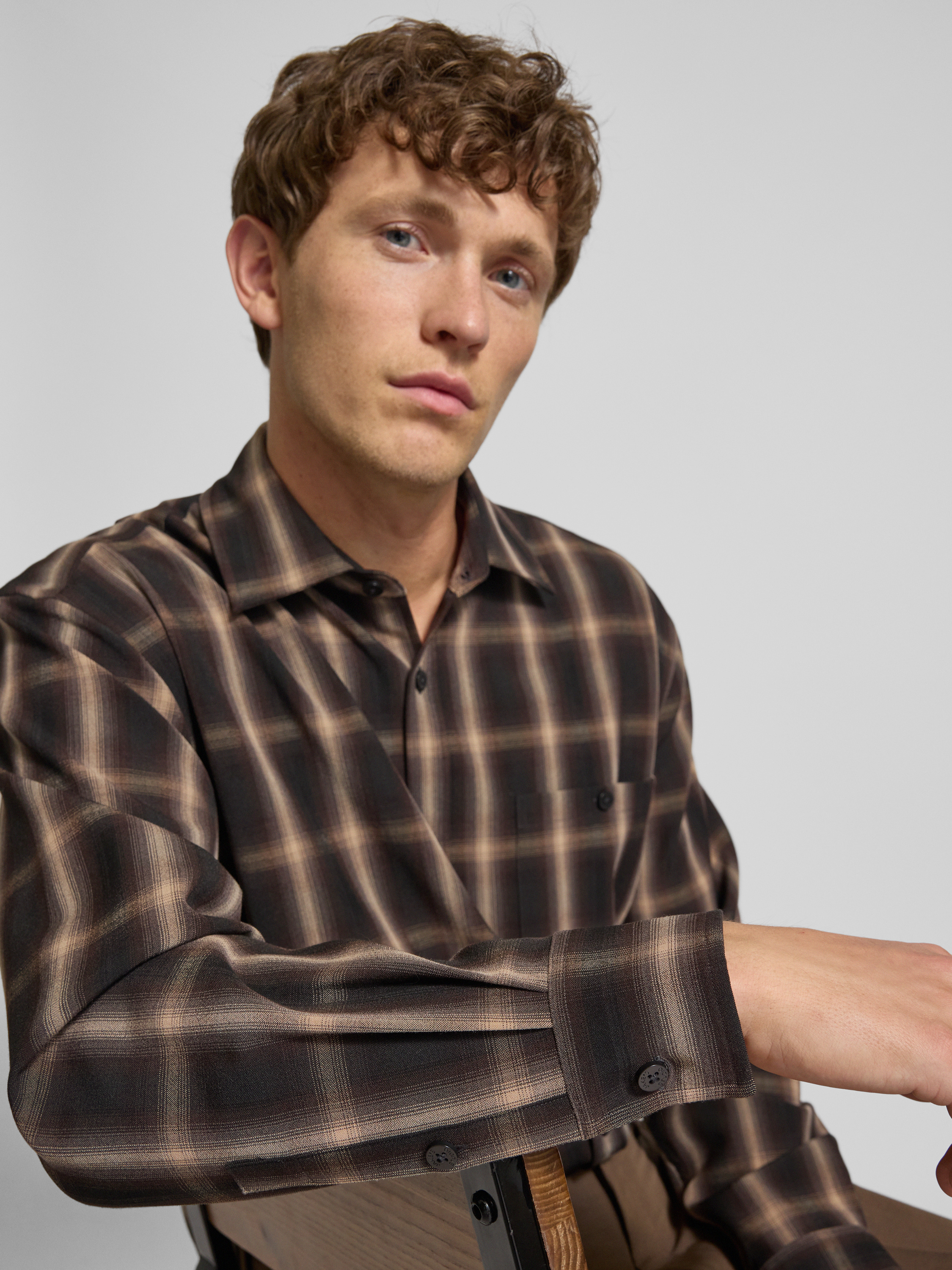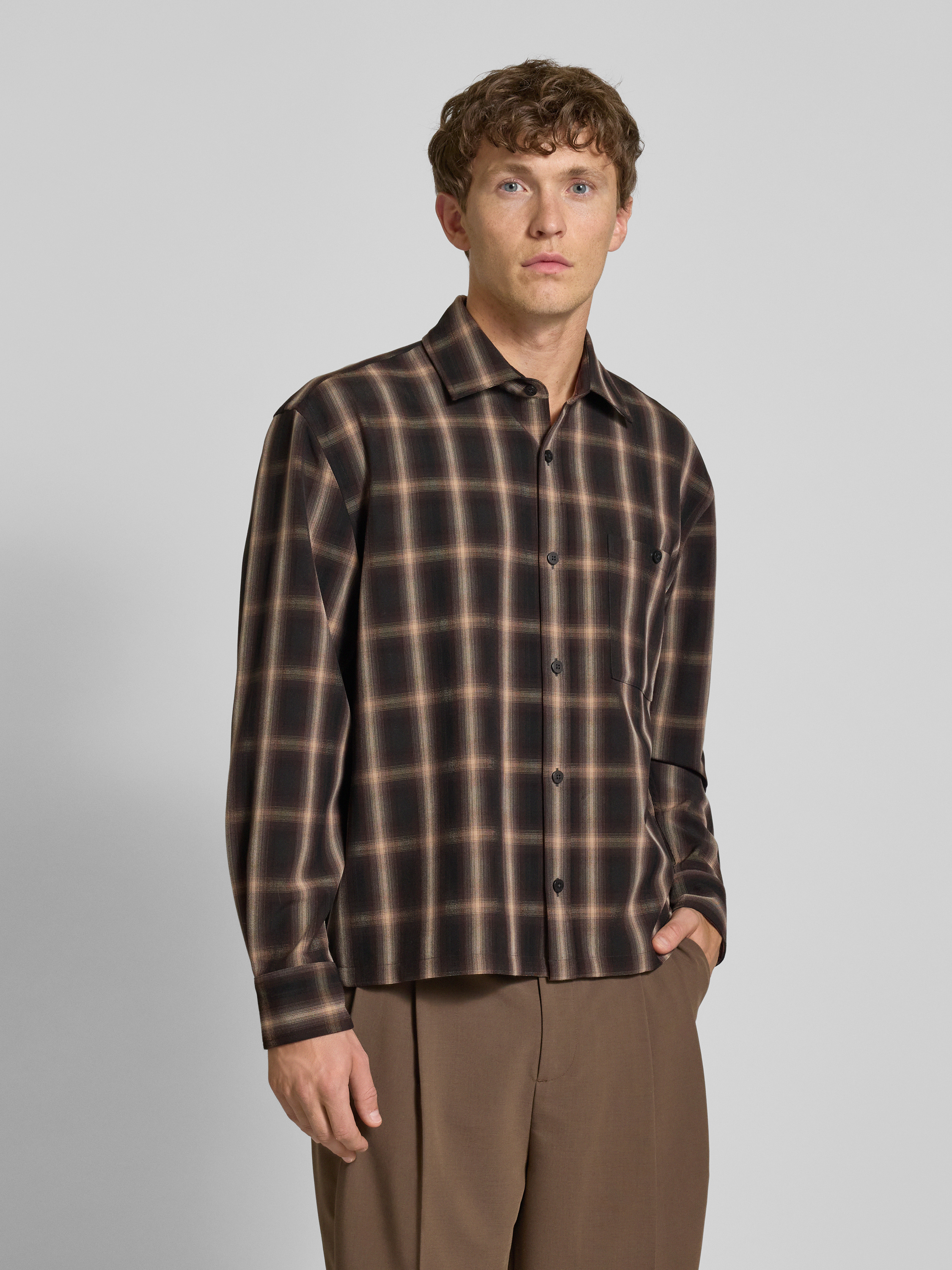 JAKE*S STUDIO MENKoszula casualowa z listwą guzikową - ciemnobrązowy