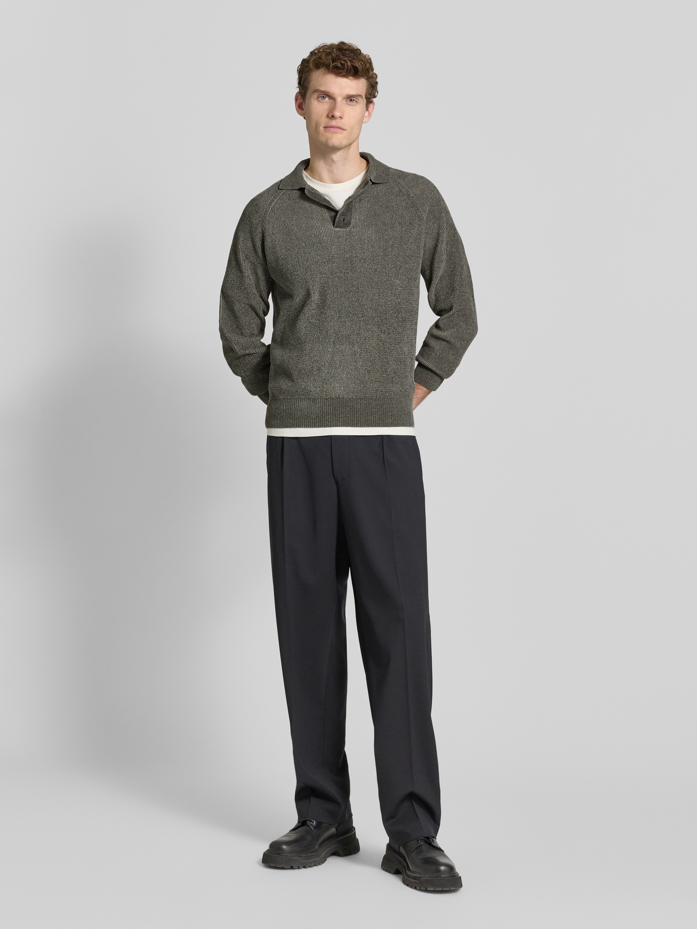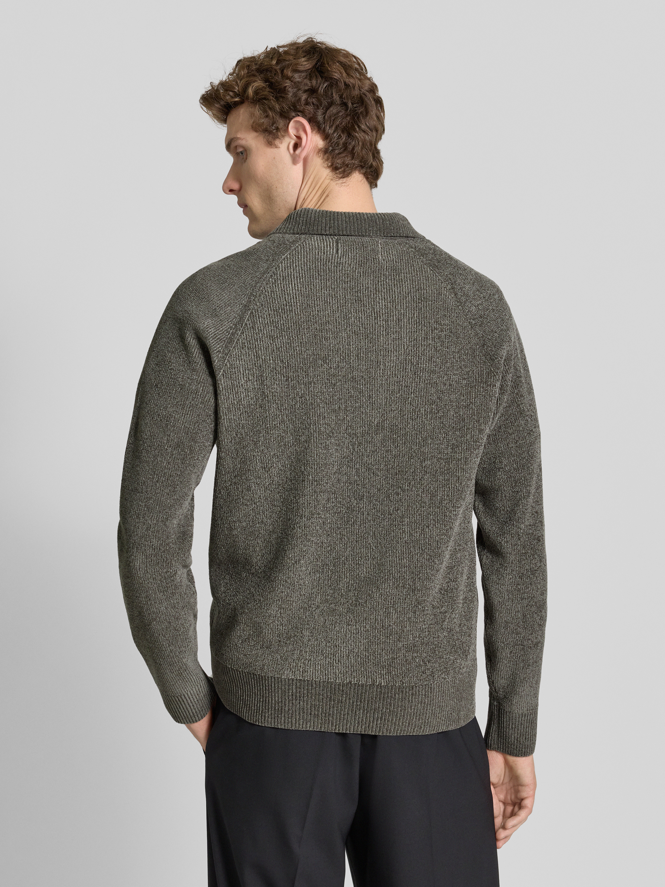 JAKE*S STUDIO MENSweter z dzianiny z kołnierzykiem polo - ciemnoszary