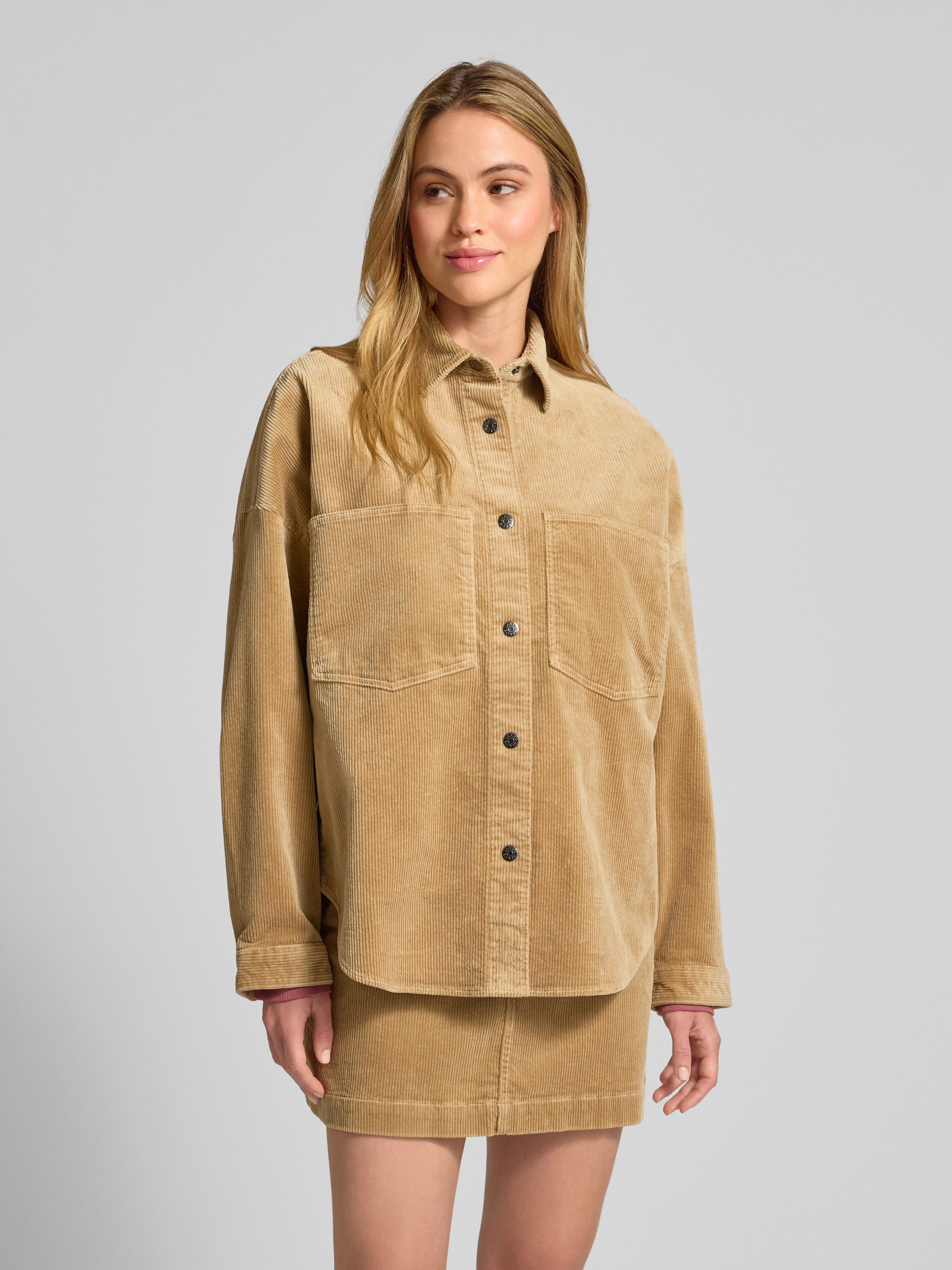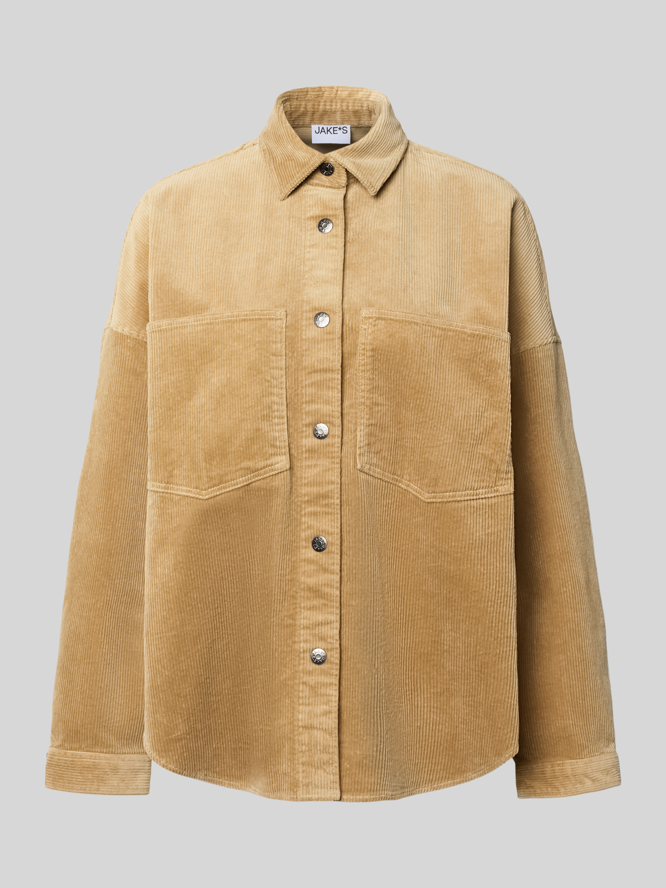 Bluzka koszulowa o kroju regular fit z imitacji sztruksu - piaskowy