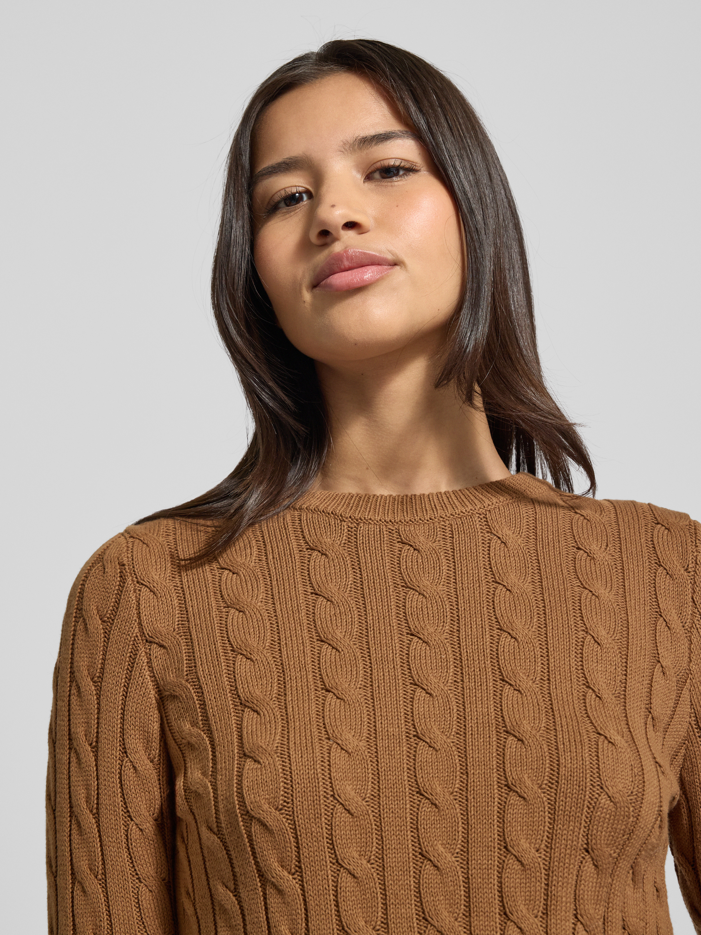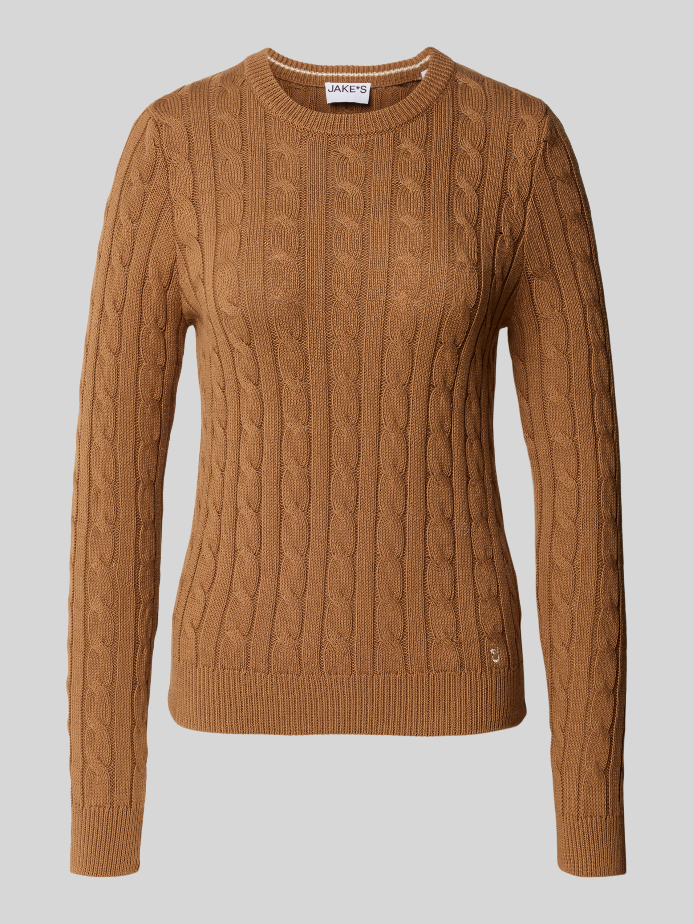 Bluzka z długim rękawem o kroju slim fit z imitacji dzianiny - średniobrązowy