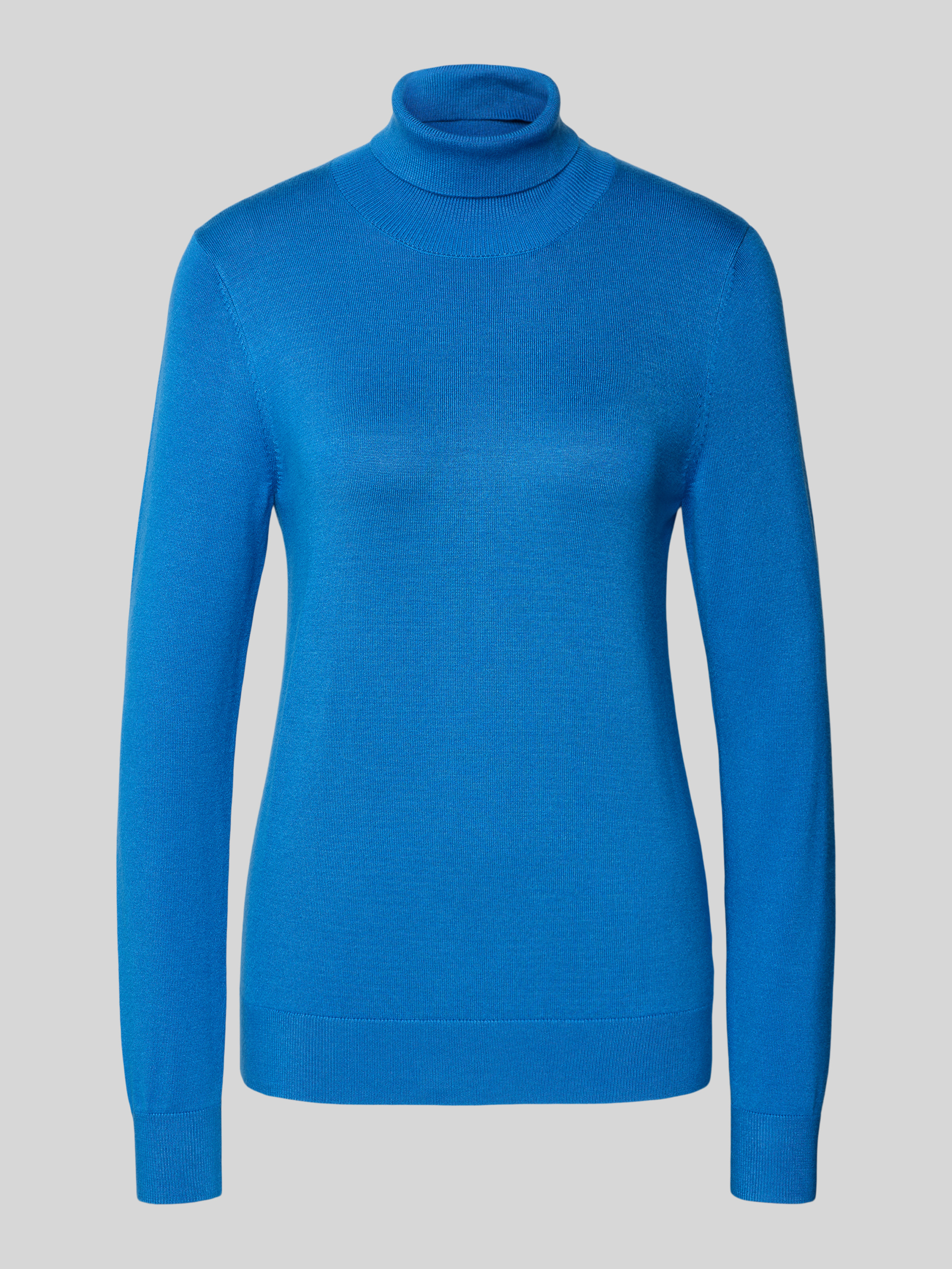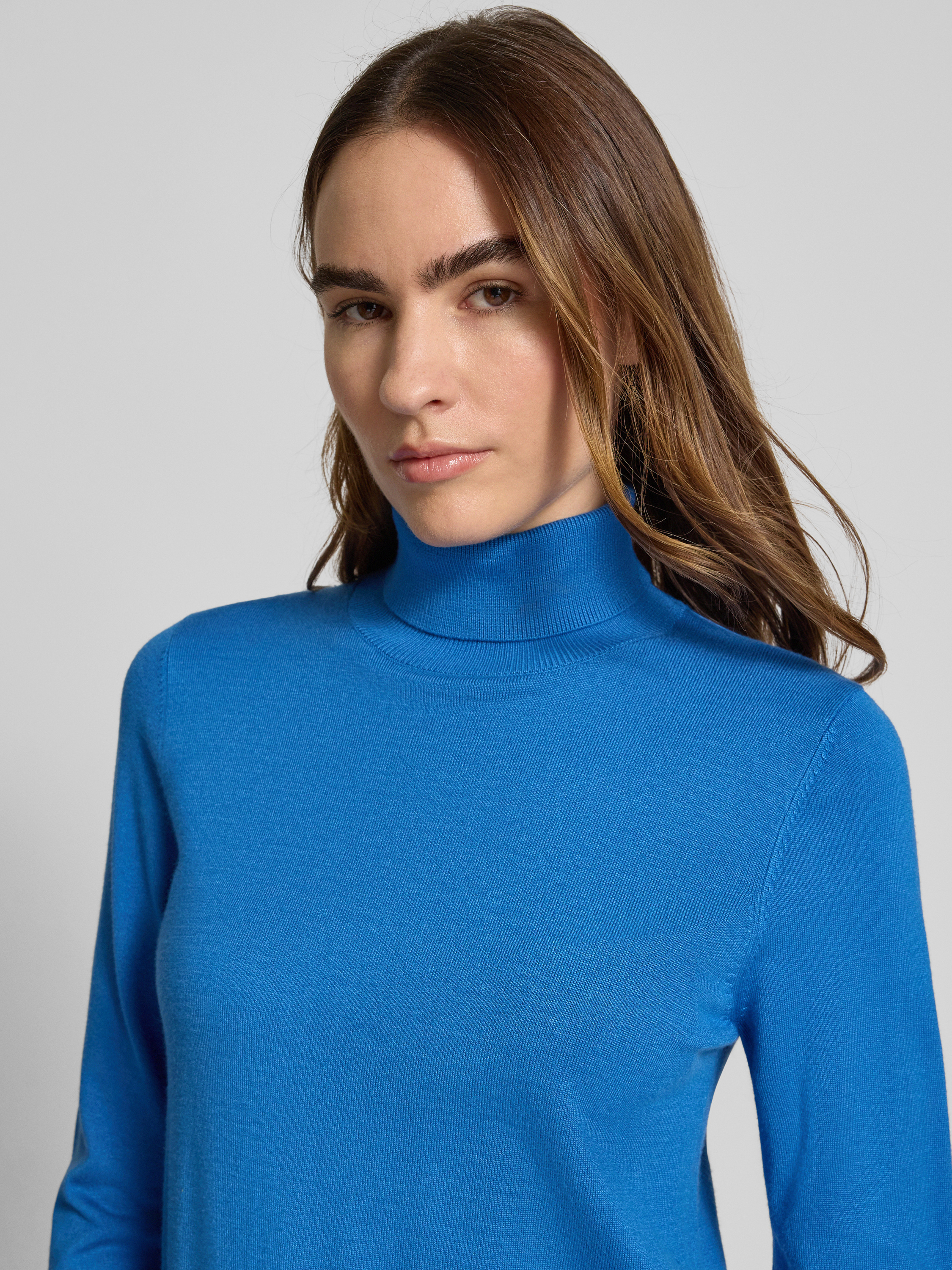 Bluzka z długim rękawem o kroju slim fit z mieszanki wiskozy z efektem dzianiny - niebieski