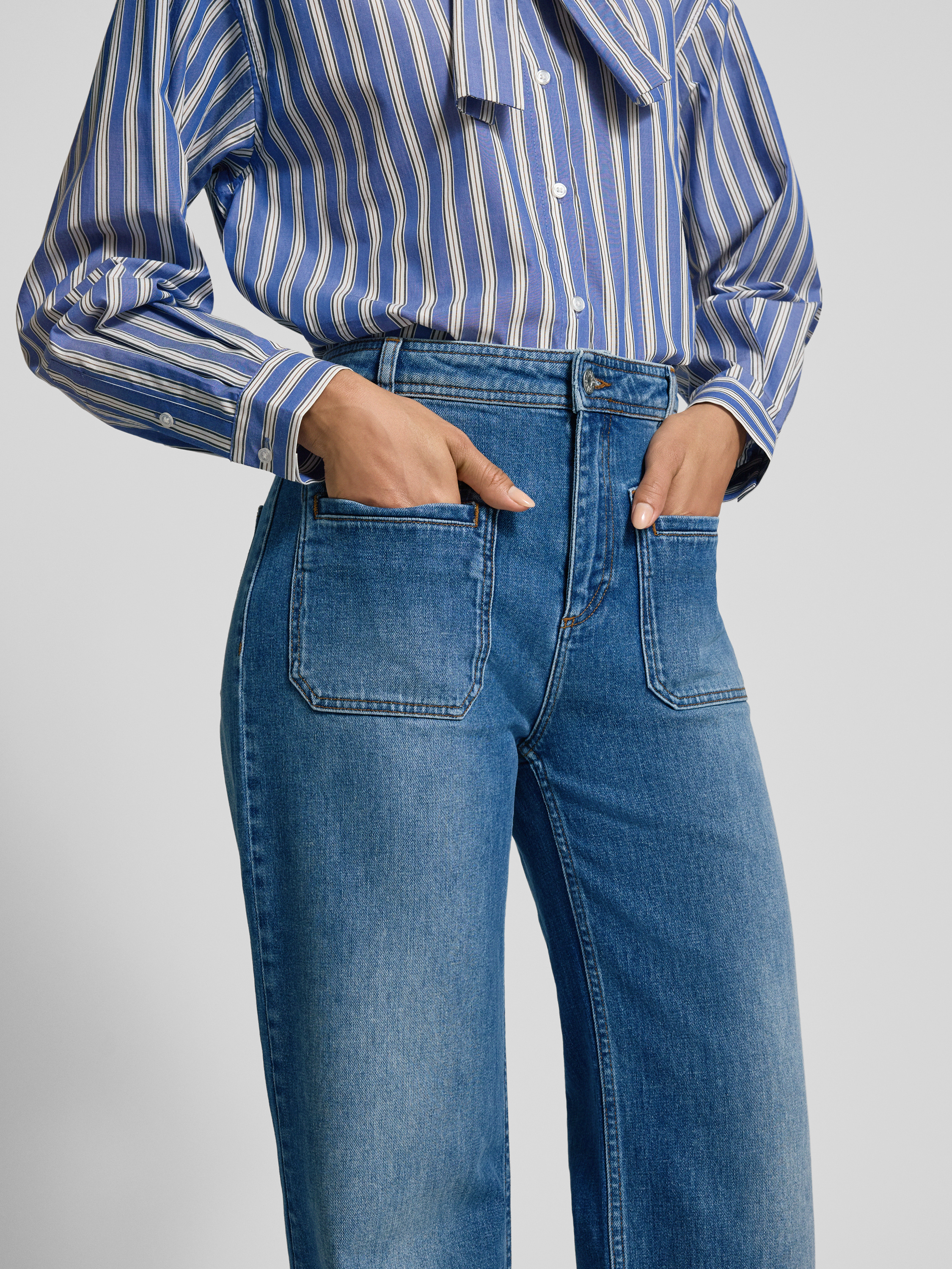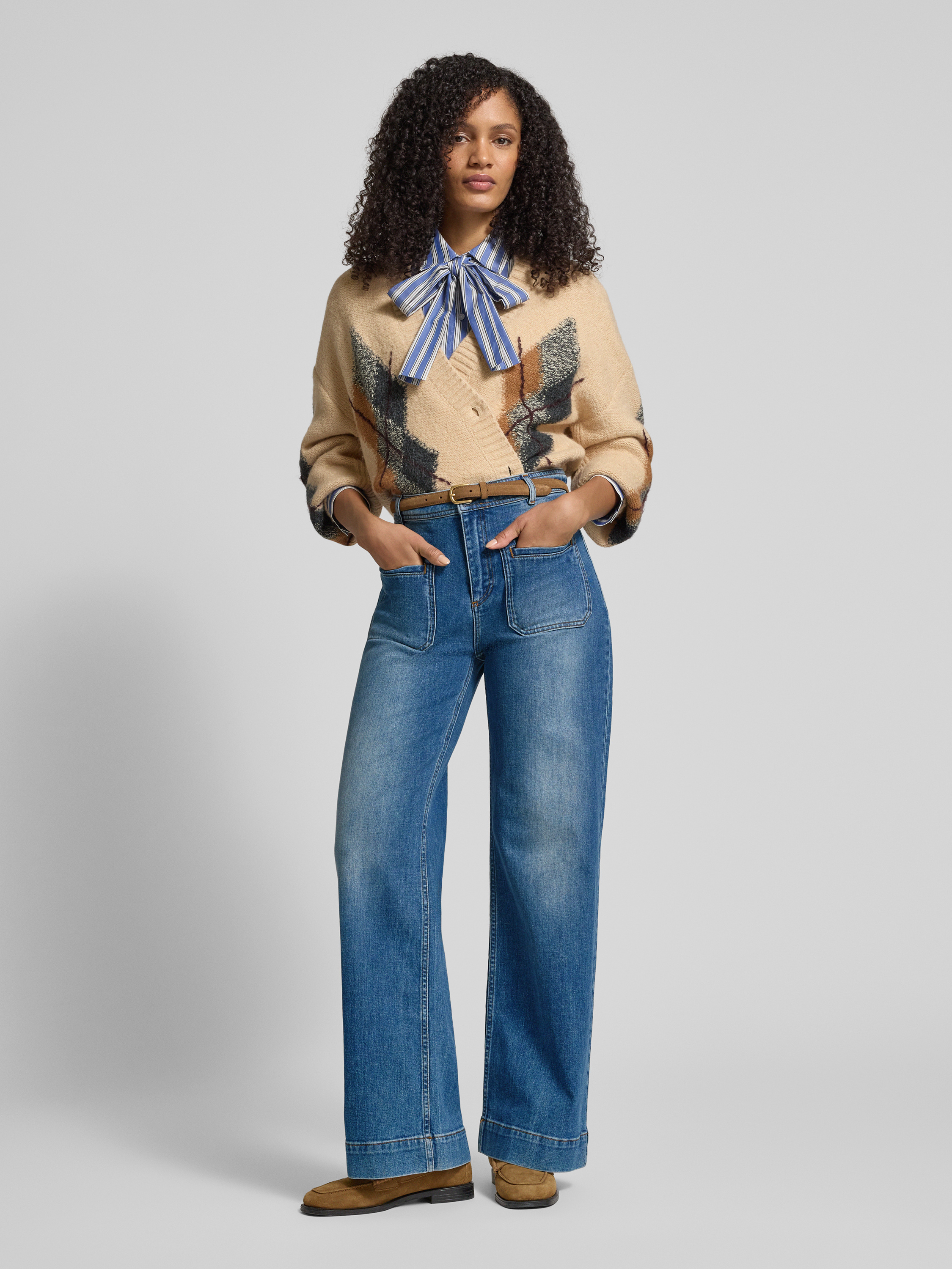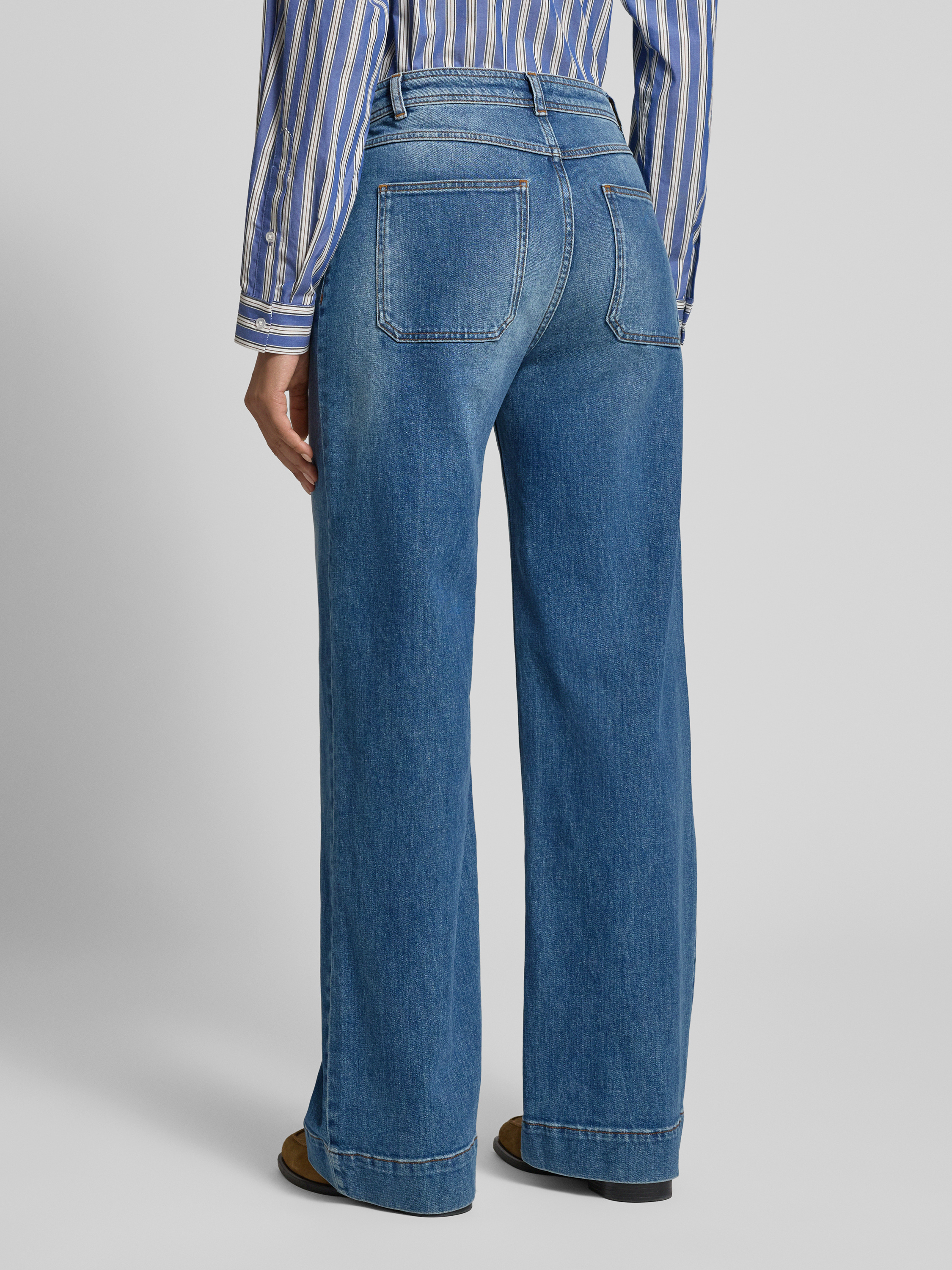 Jeansy z szeroką nogawką i efektem znoszenia - jeansowy niebieski