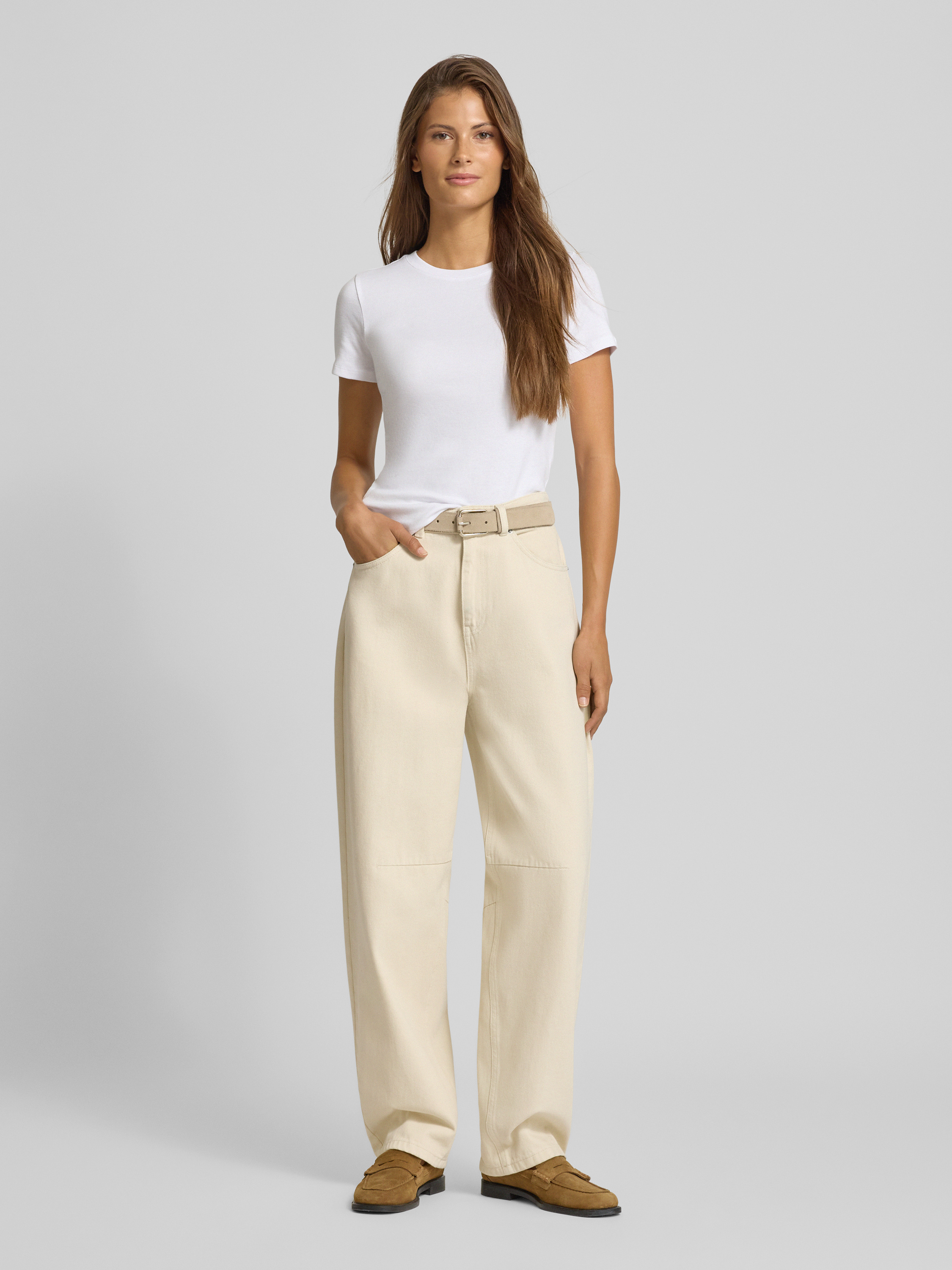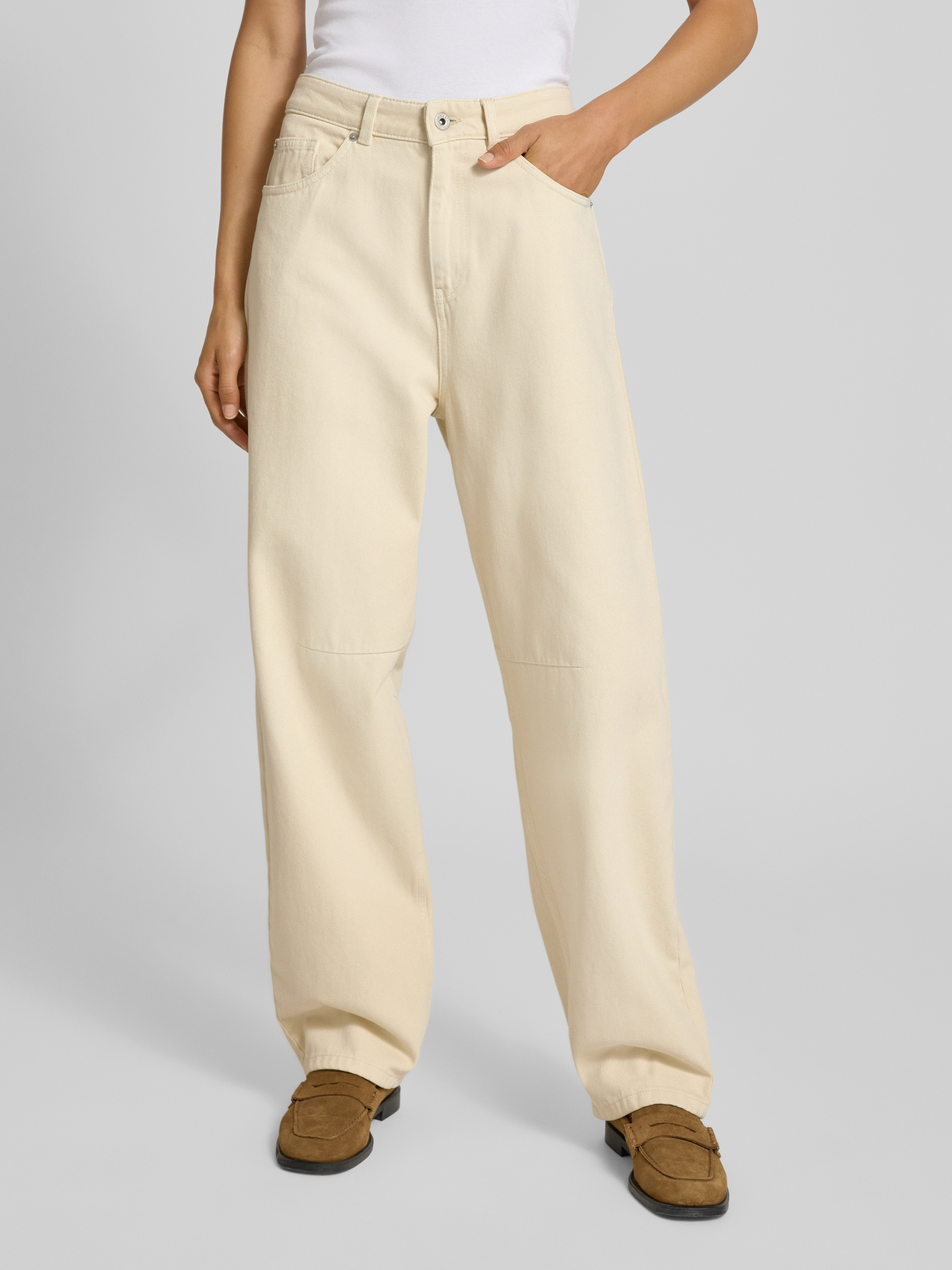 Jeansy z szeroką nogawką i szwami działowymi - écru