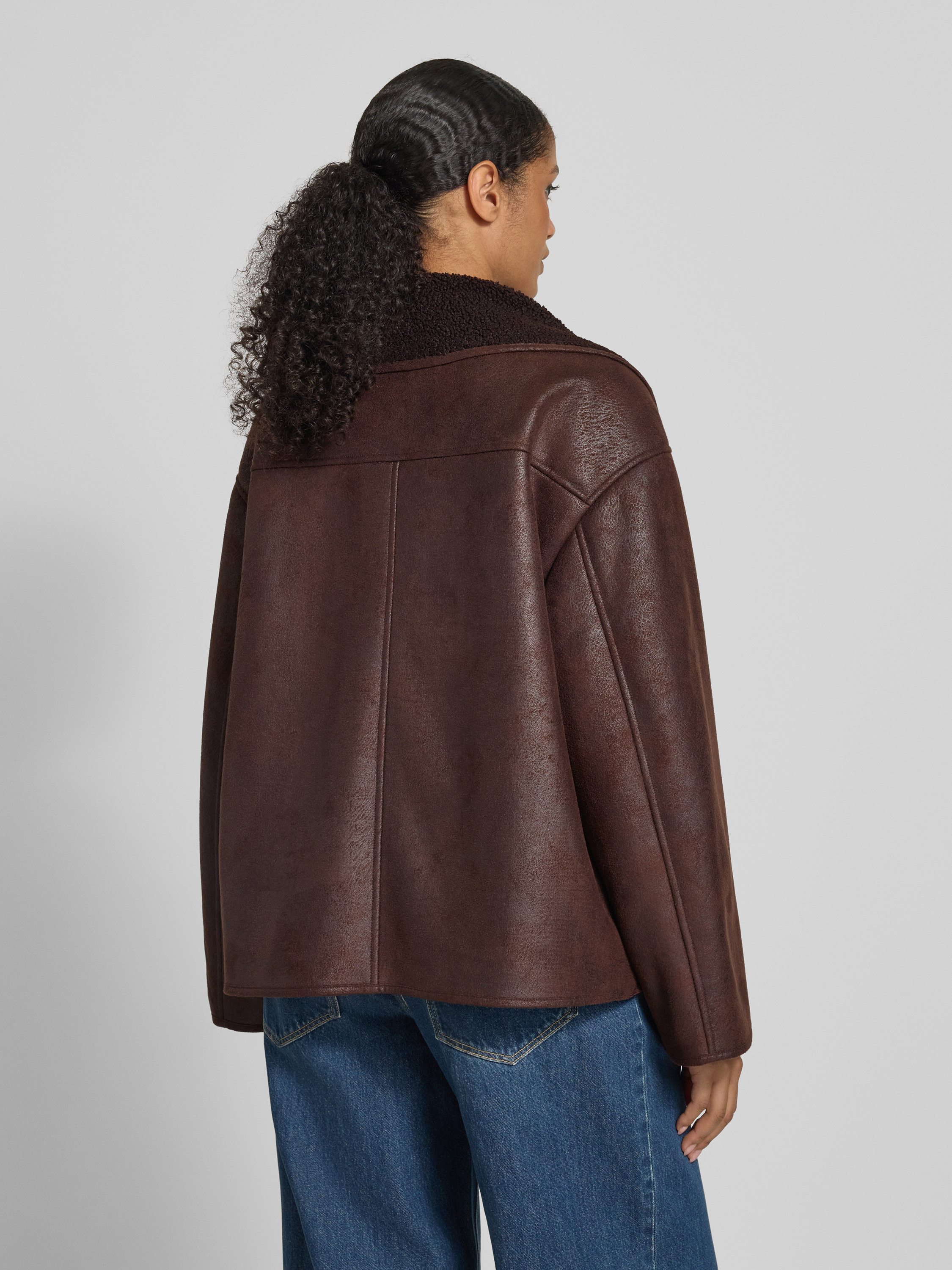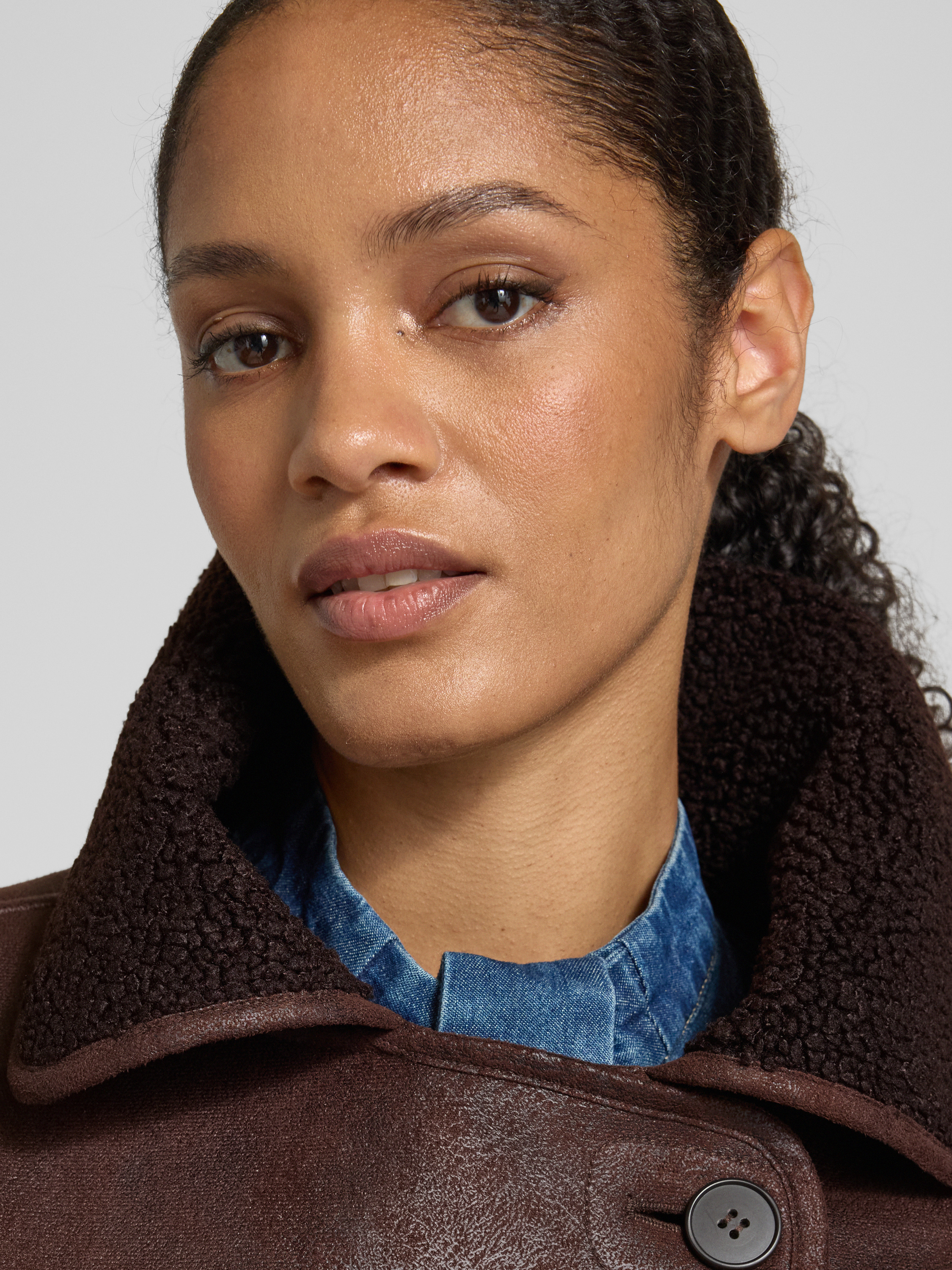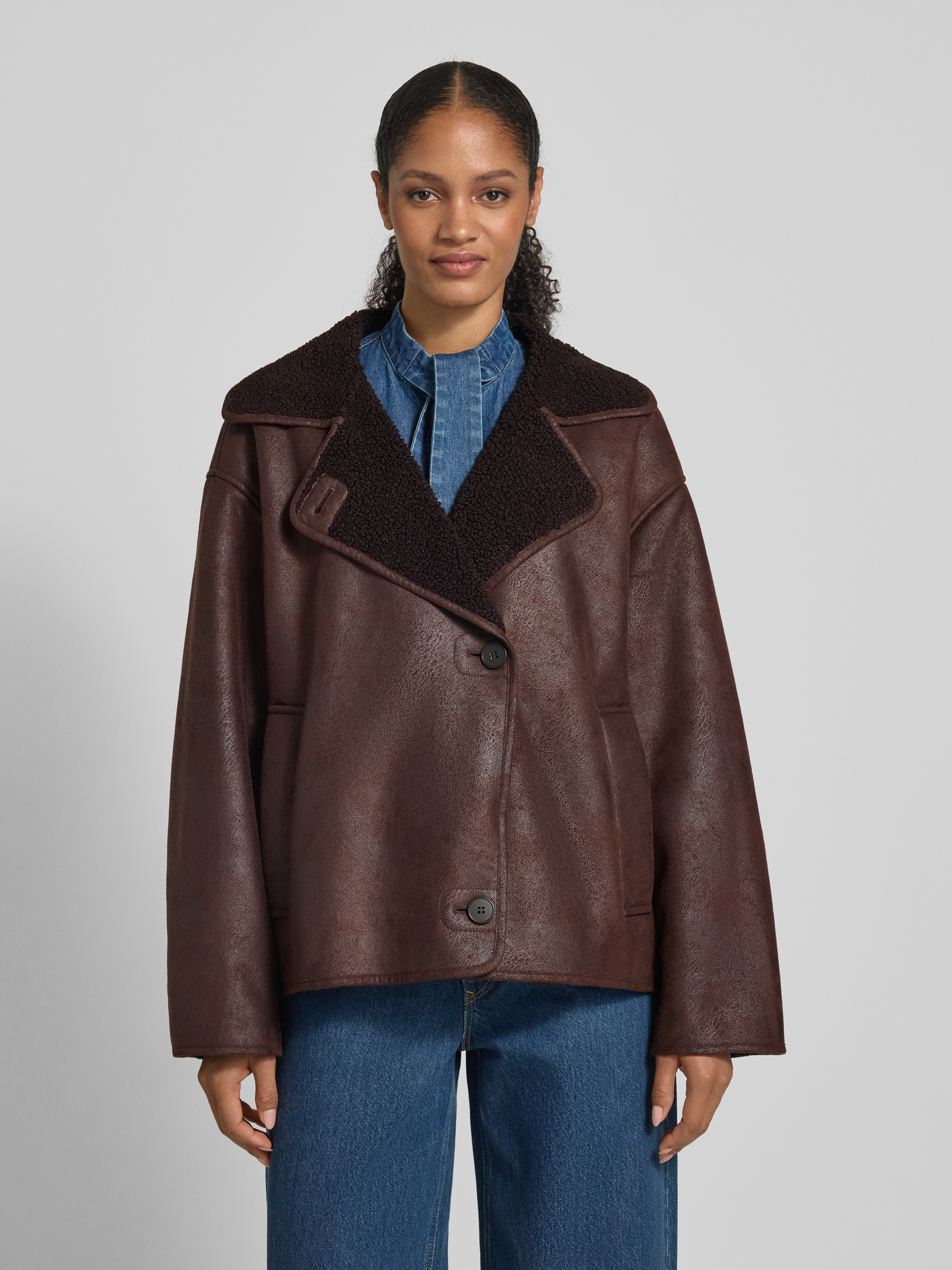 Kurtka o kroju relaxed fit z kołnierzem z połami - ciemnobrązowy
