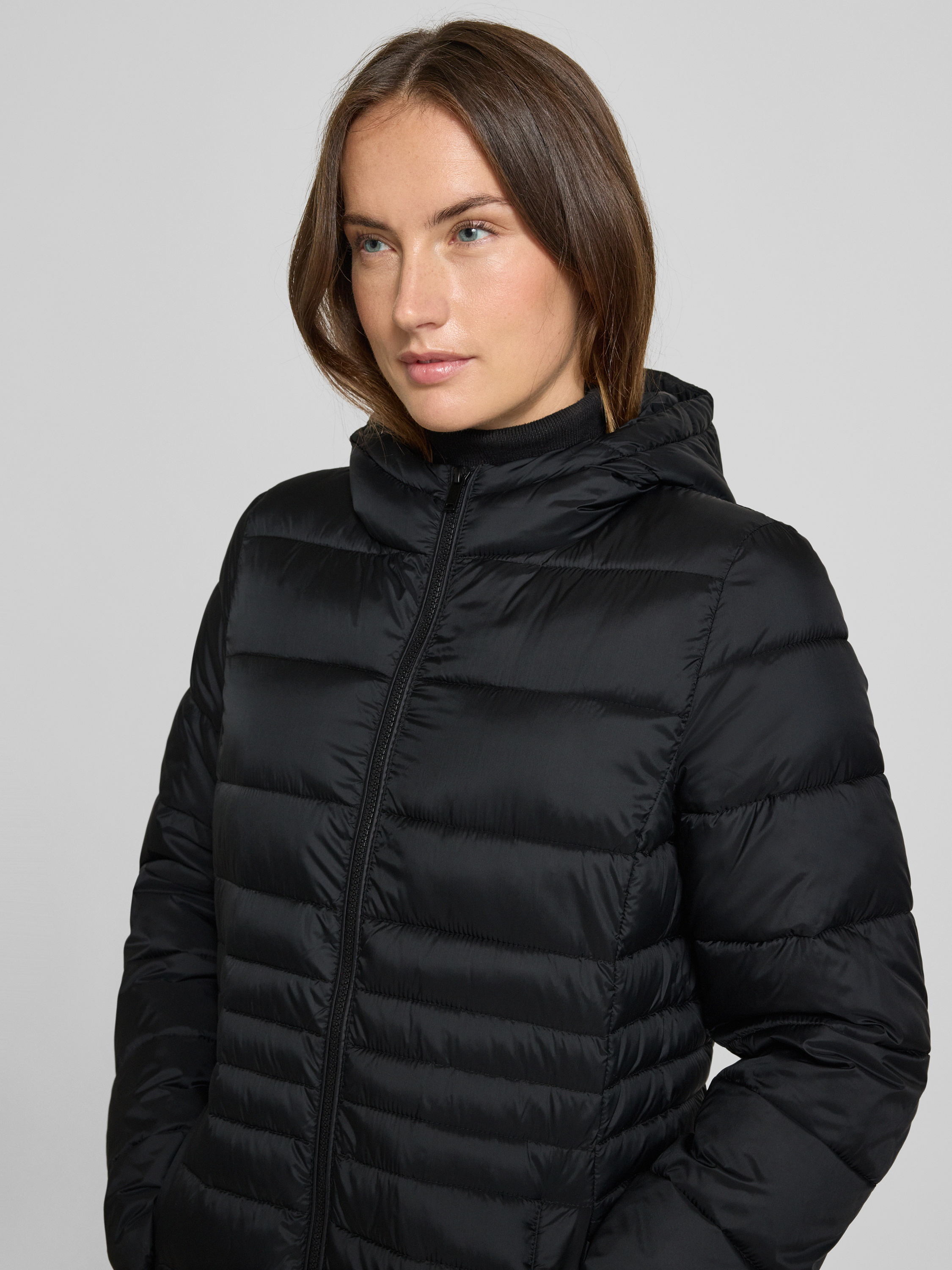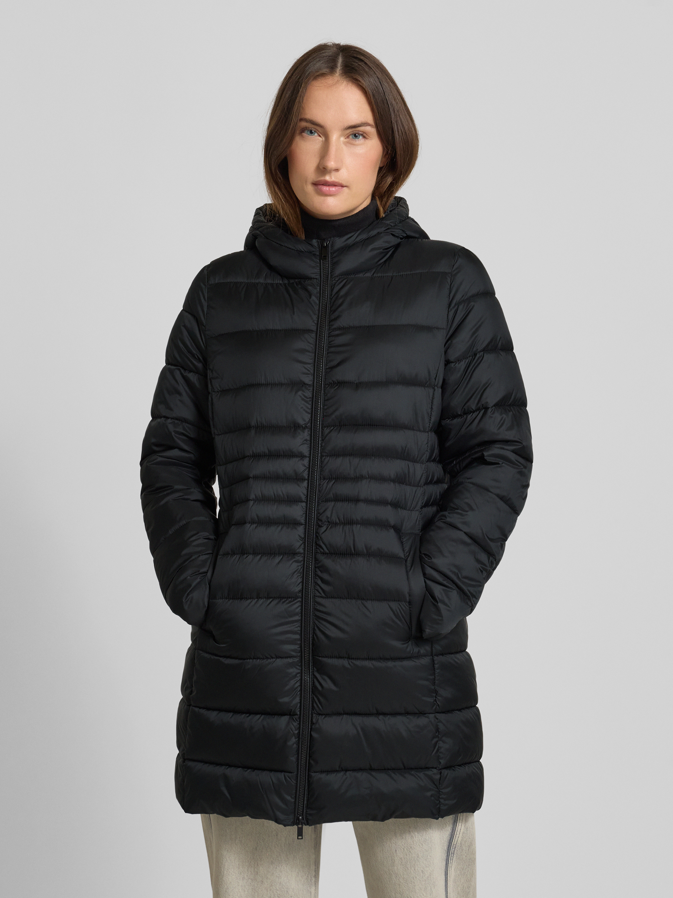 Płaszcz pikowany z kapturem - czarny