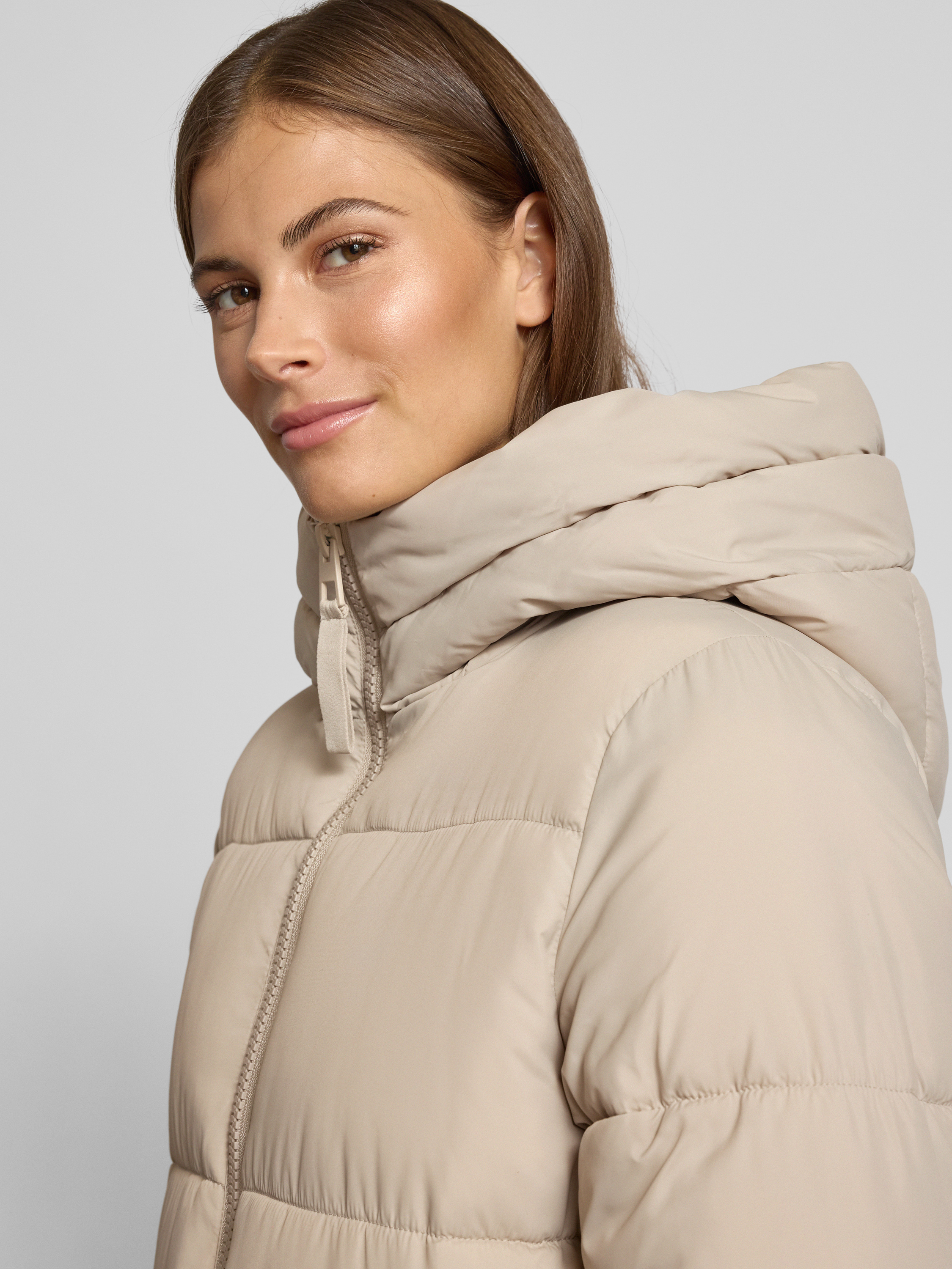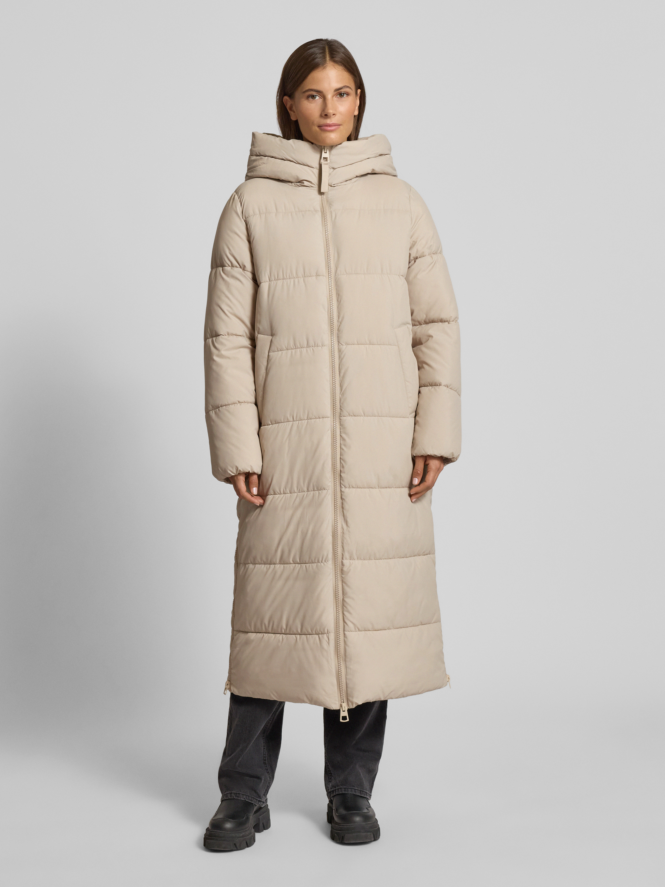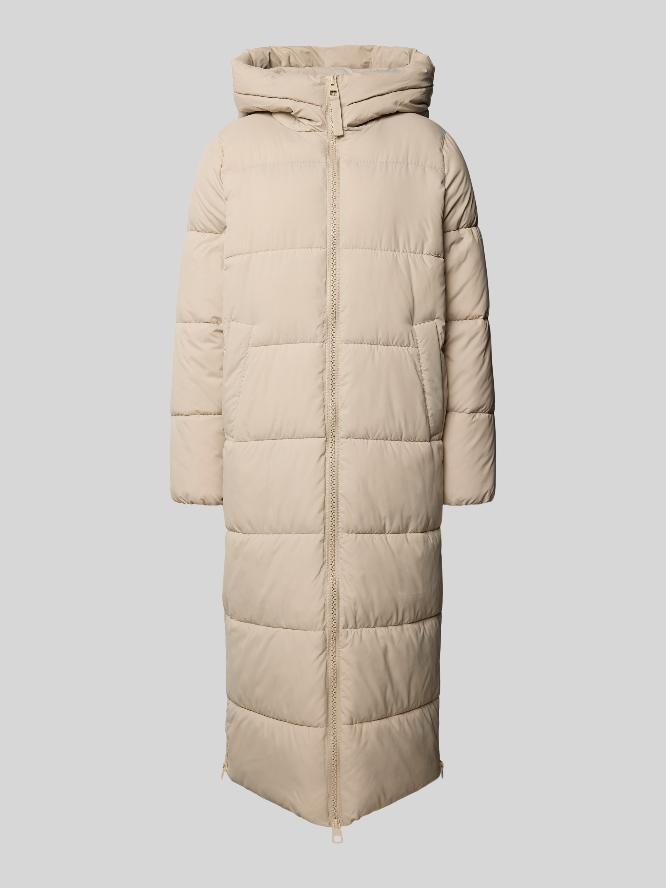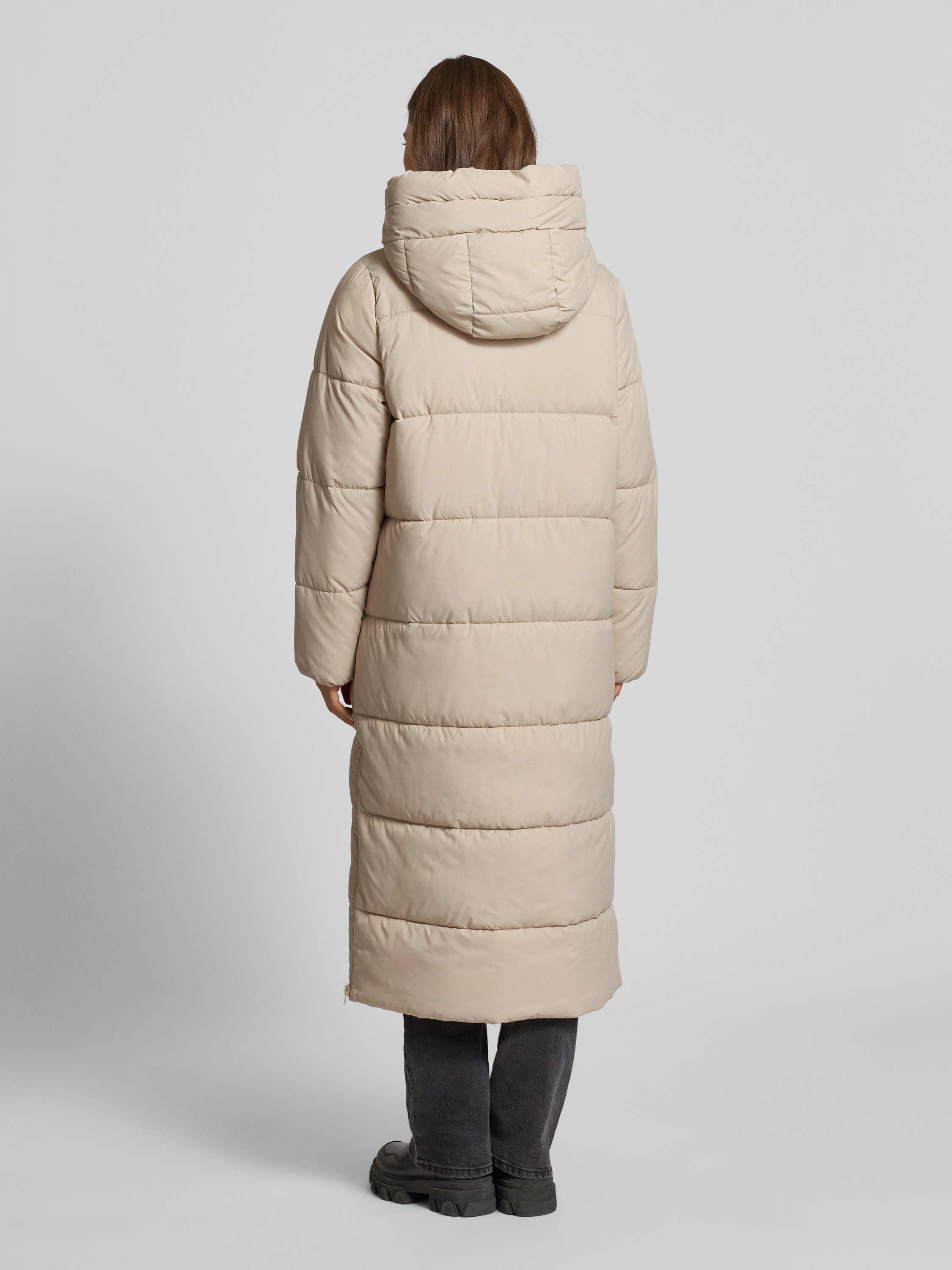 Płaszcz pikowany z kapturem - kamienny