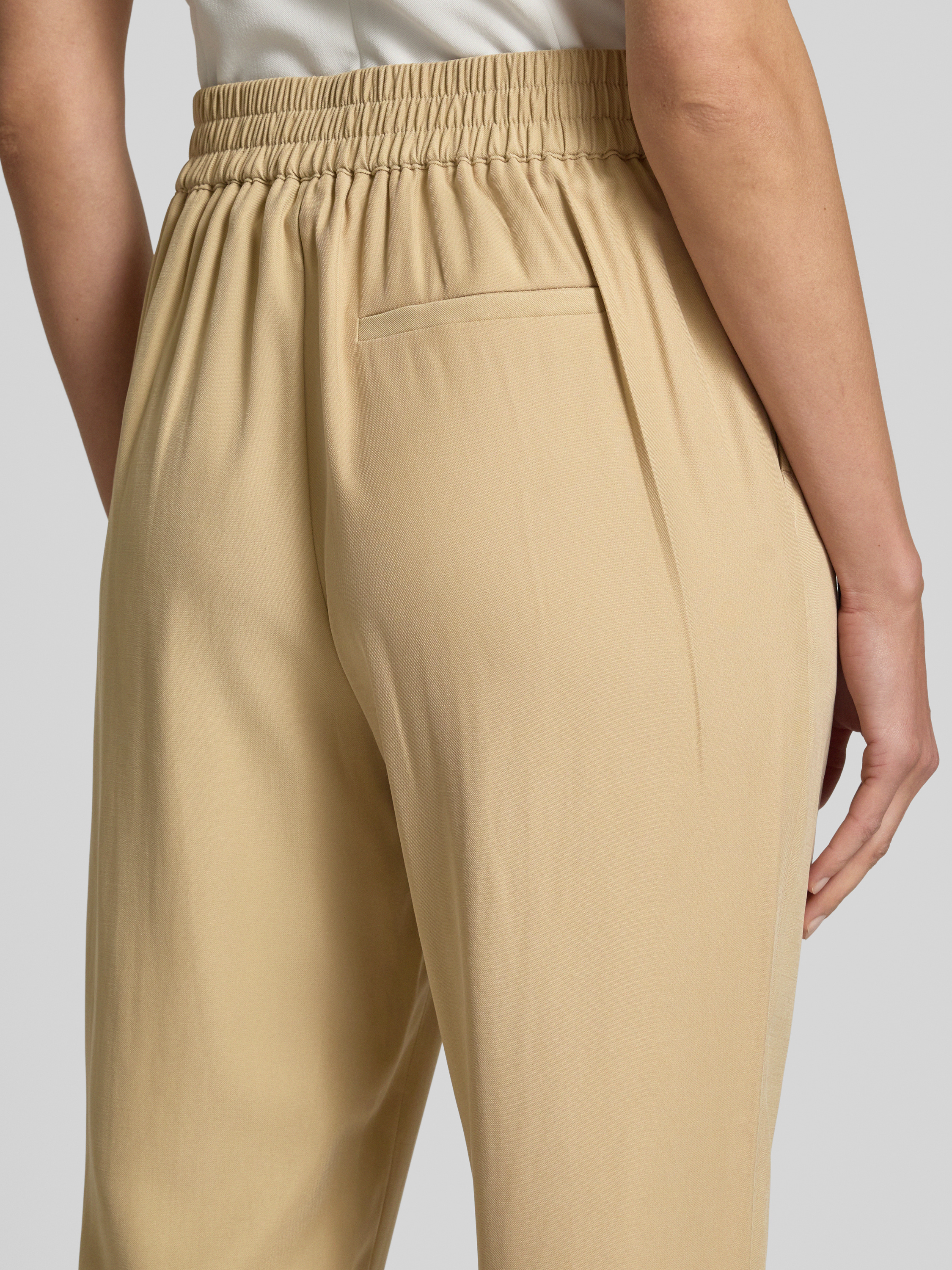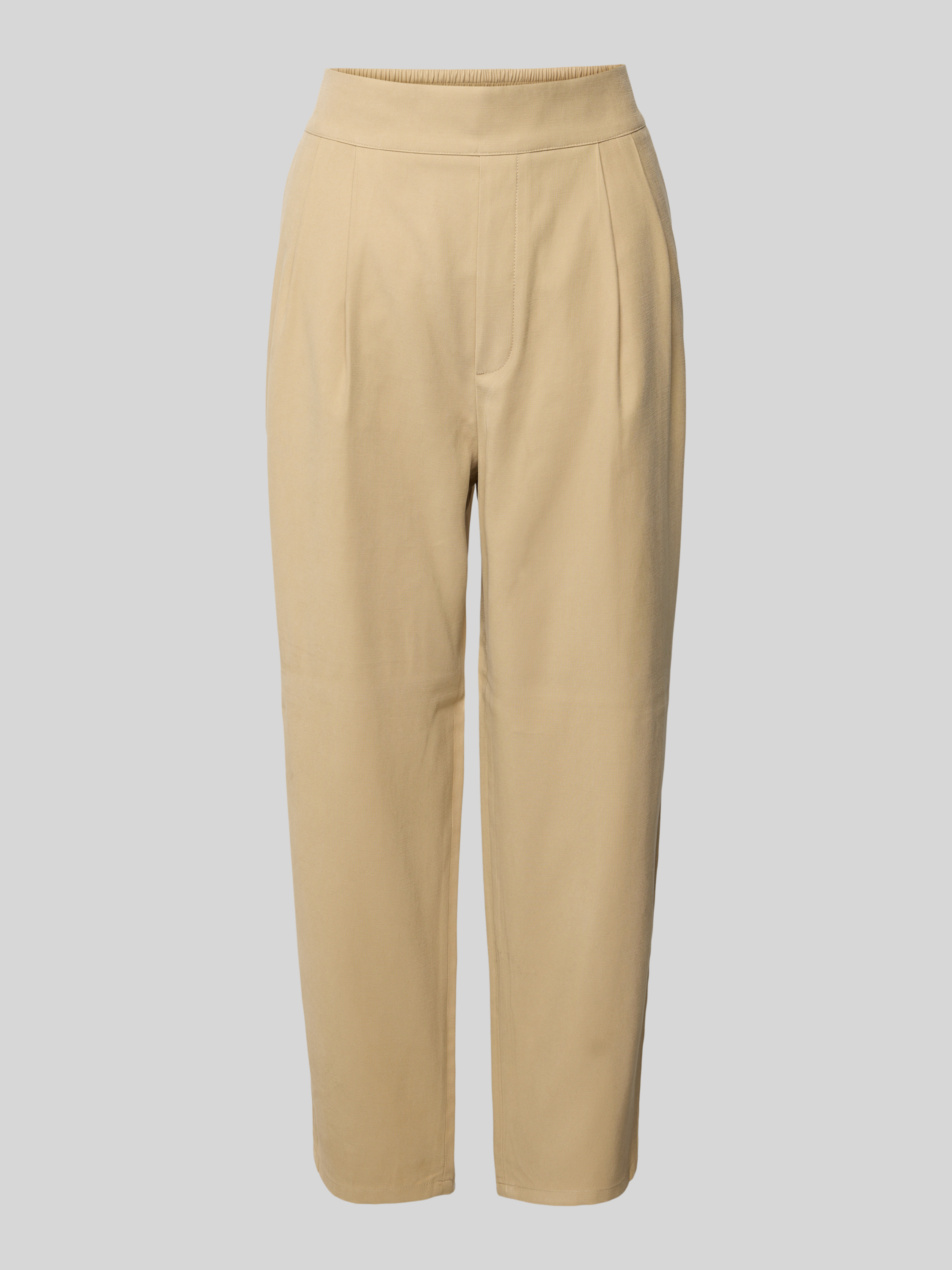 Spodnie materiałowe o kroju tapered fit z zakładkami w pasie - piaskowy