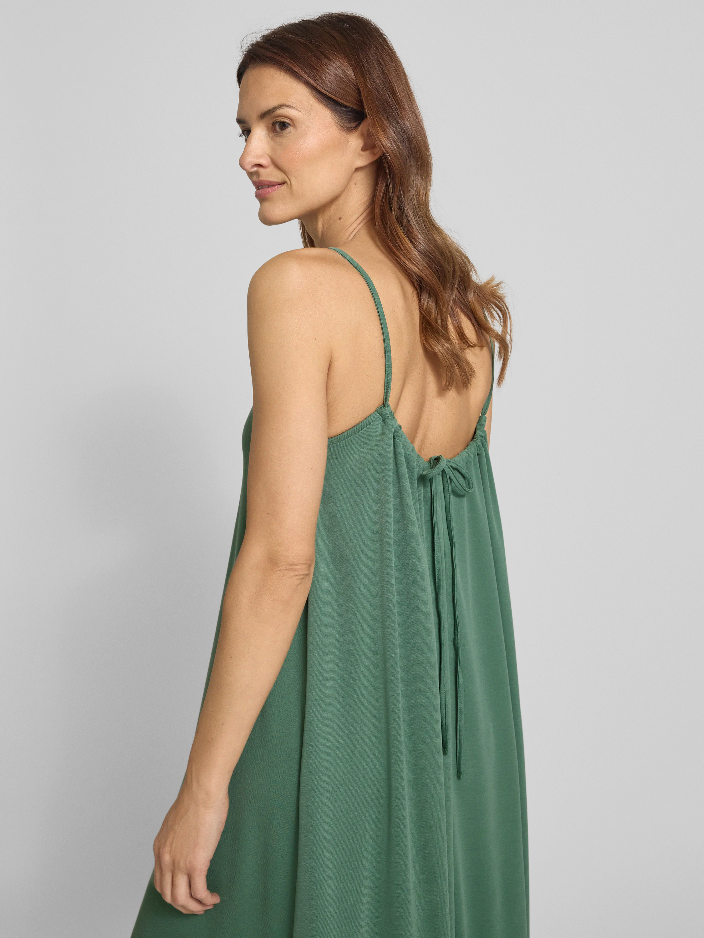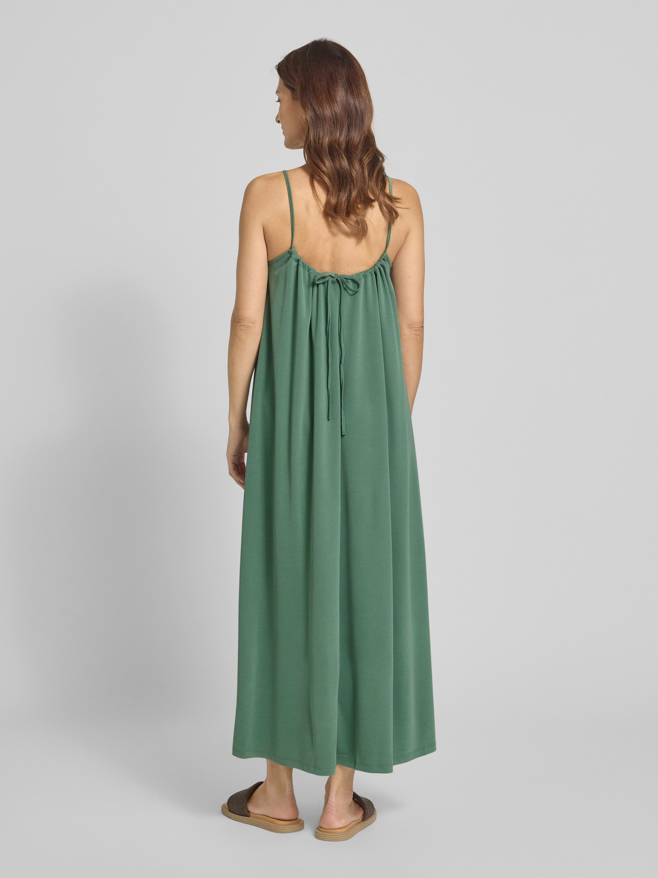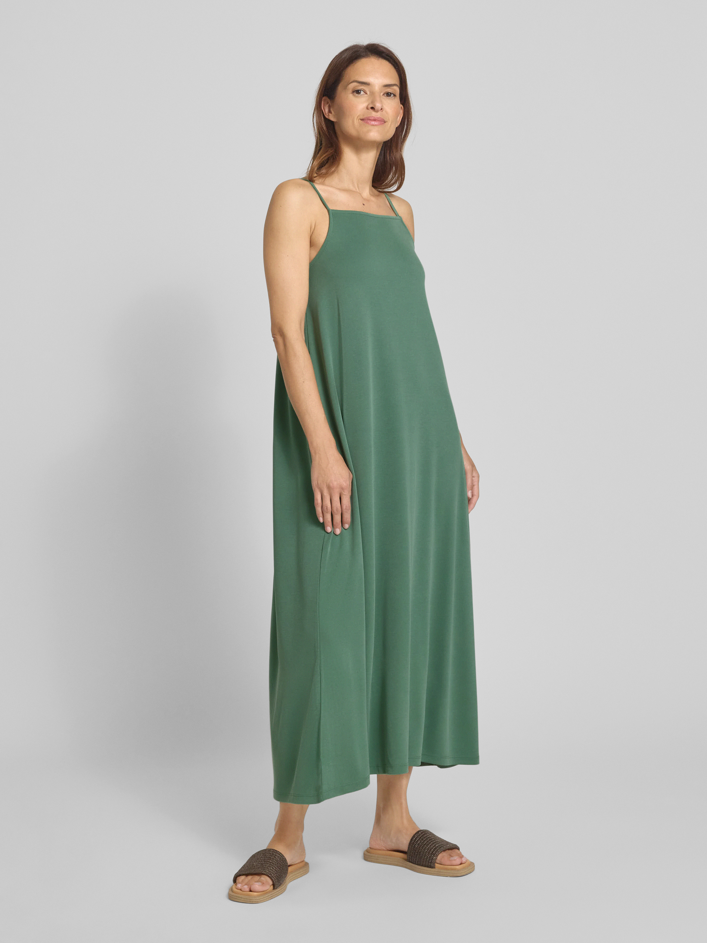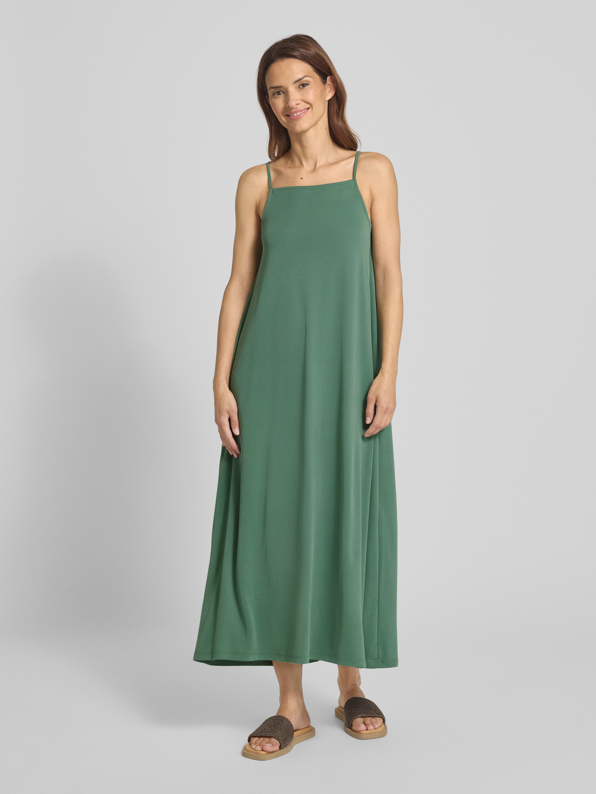 Sukienka midi z prostokątnym dekoltem i cienkimi ramiączkami - zielony