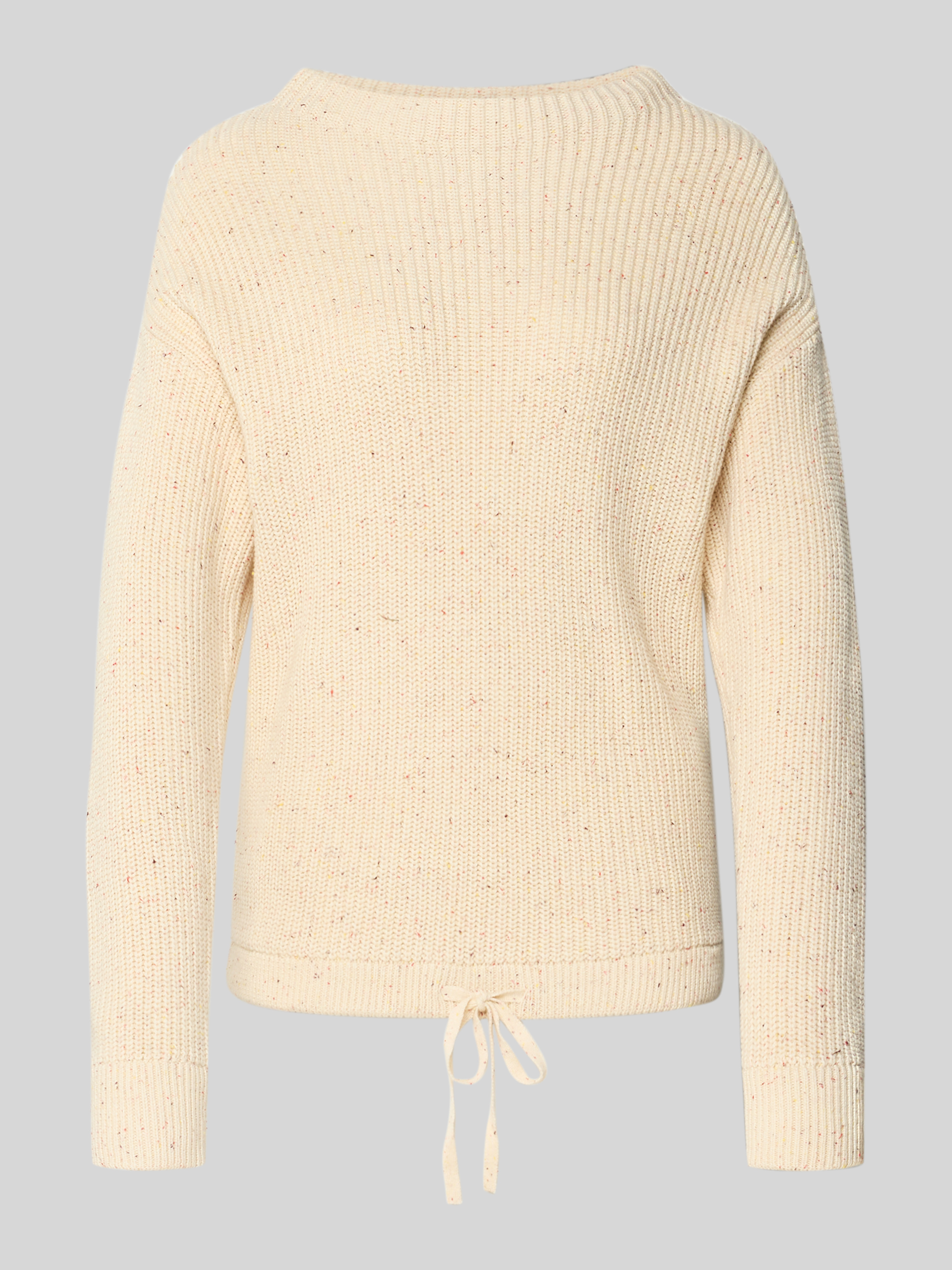 Sweter z dzianiny z obniżonymi ramionami i tunelem - écru