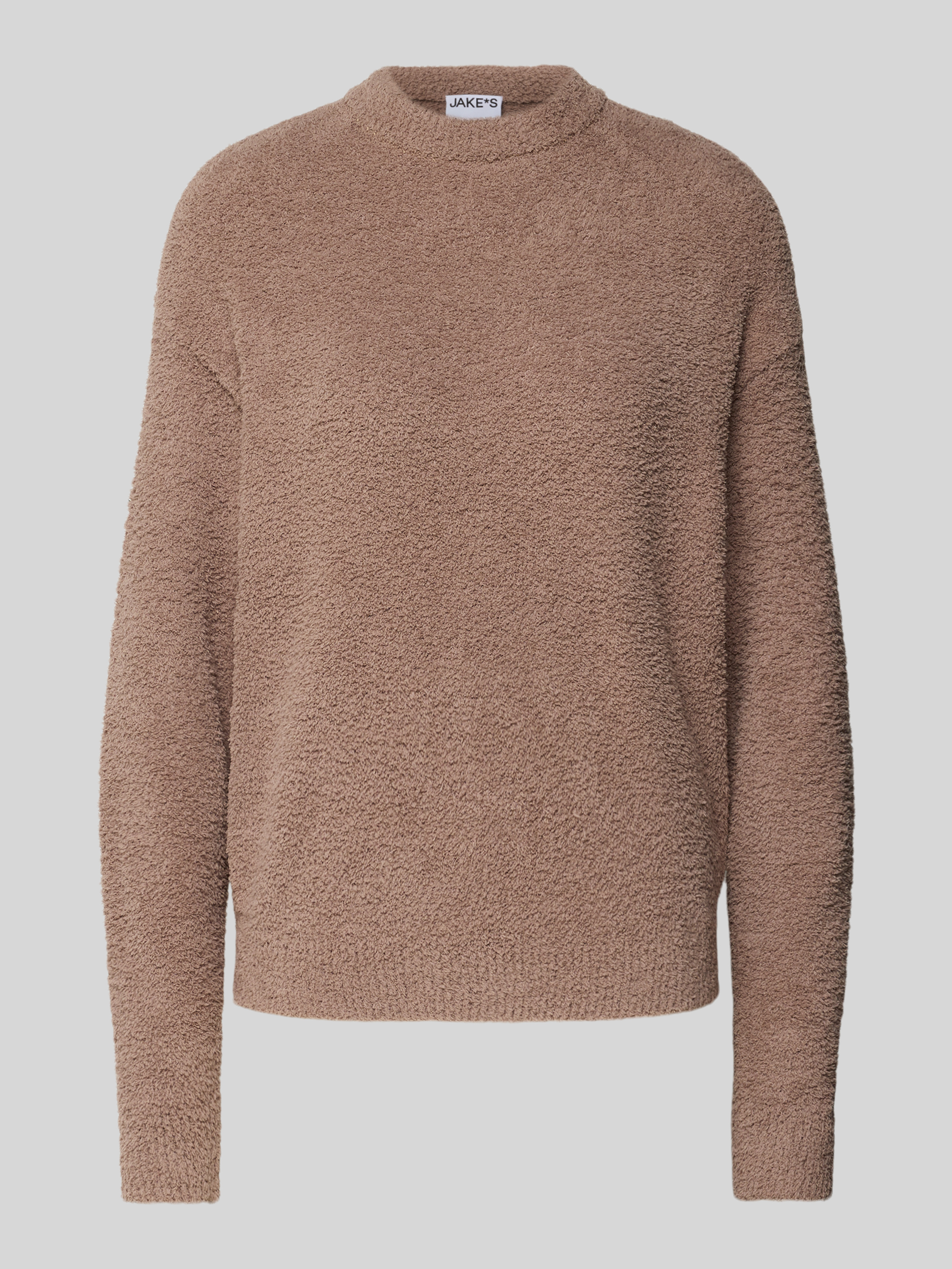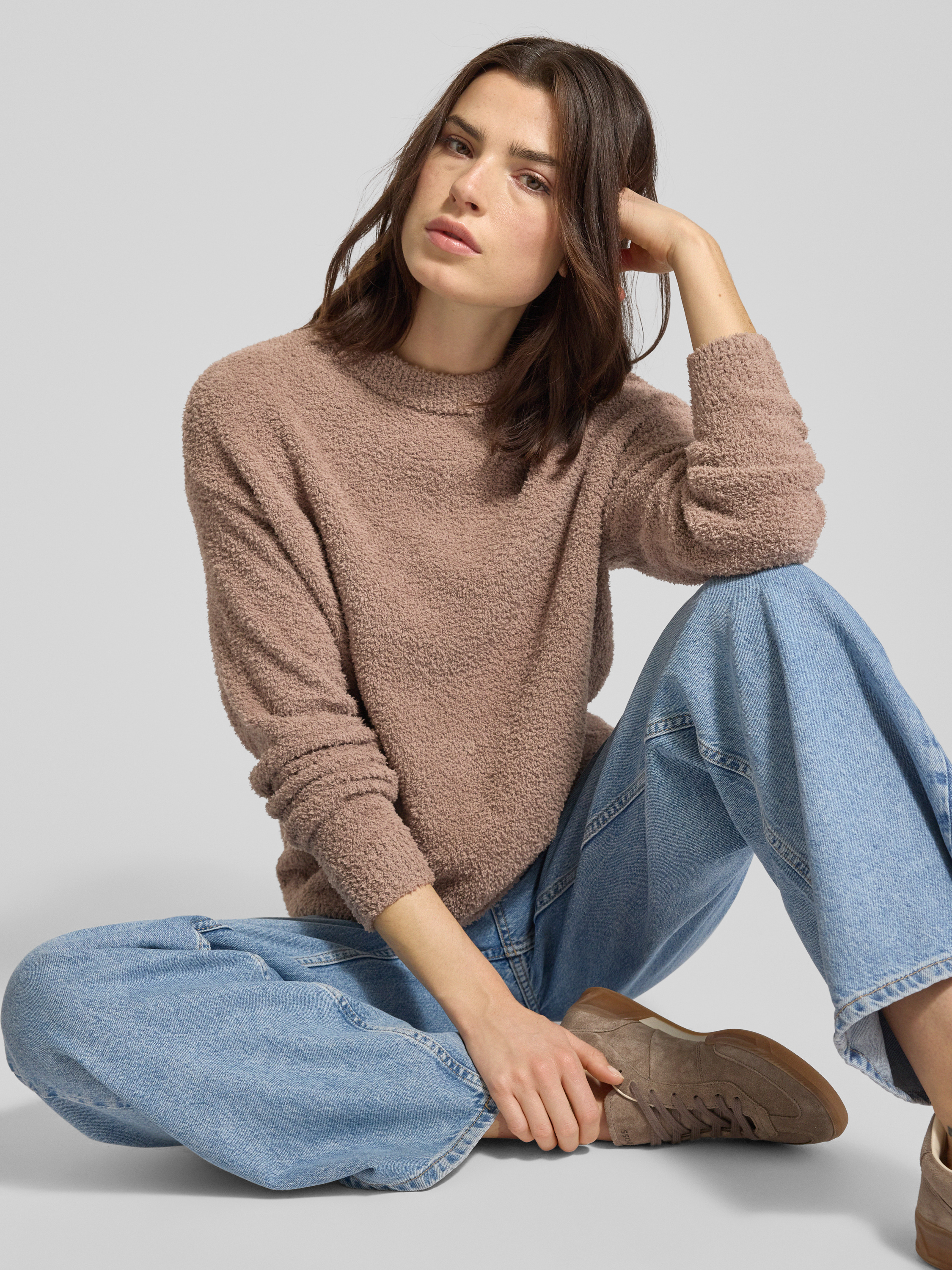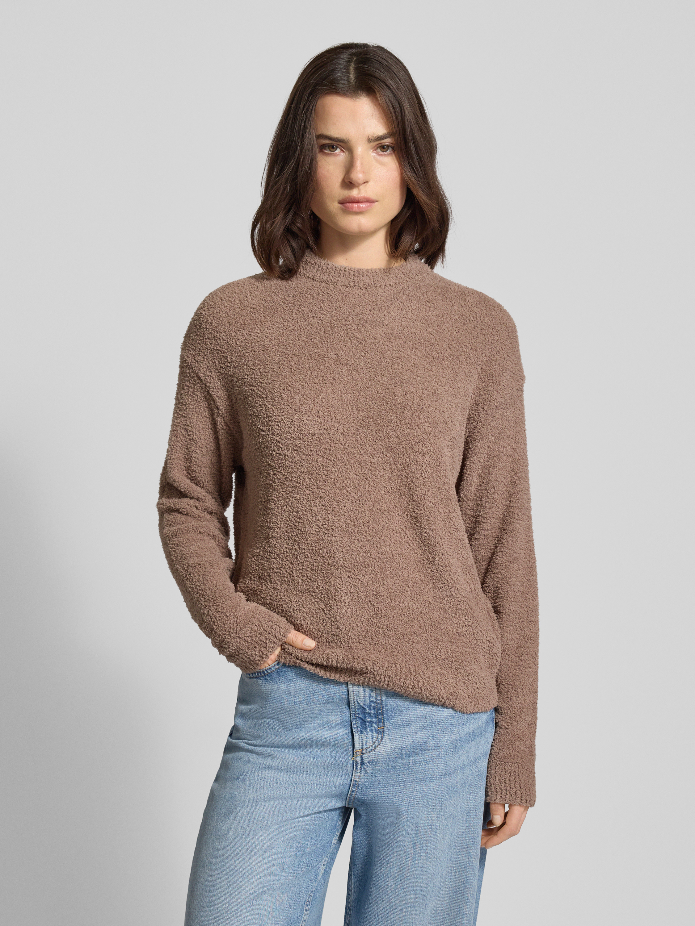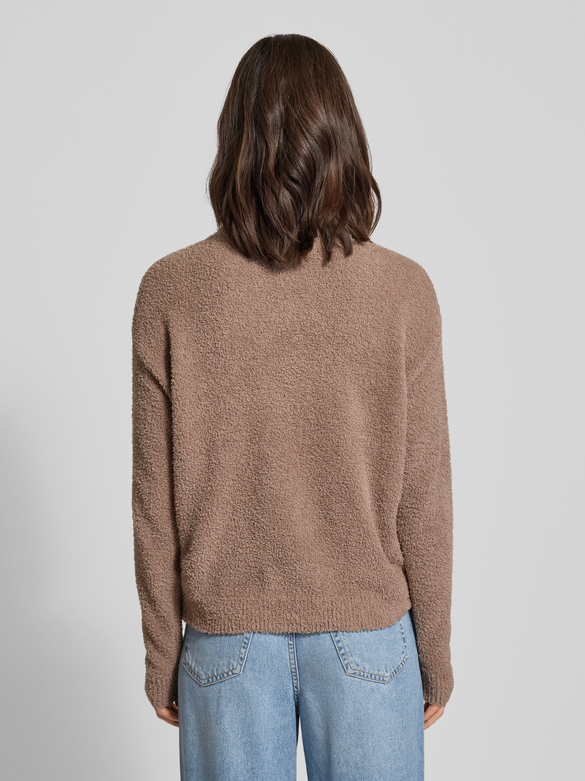 Sweter z dzianiny z obniżonymi ramionami - szarobrązowy