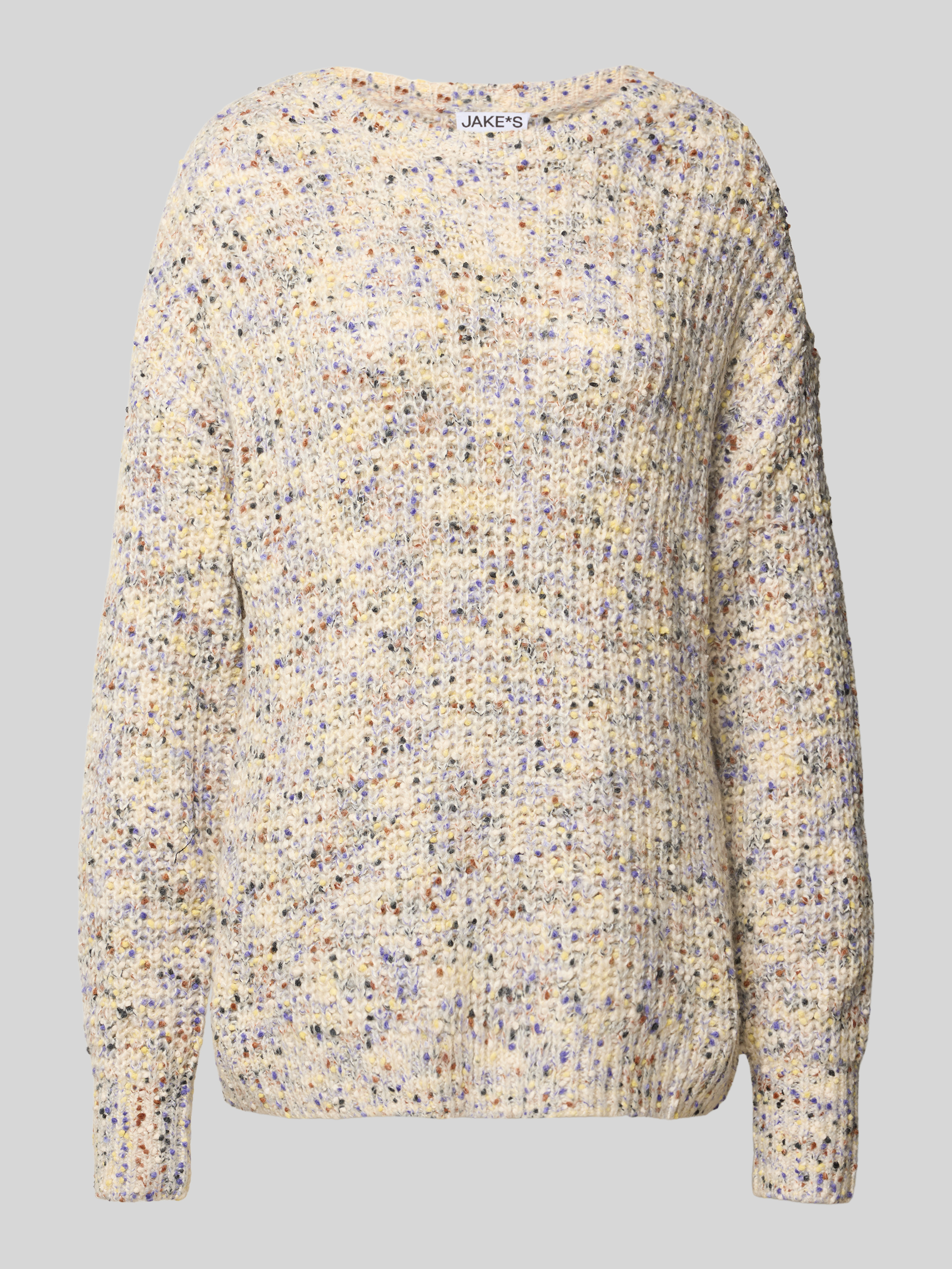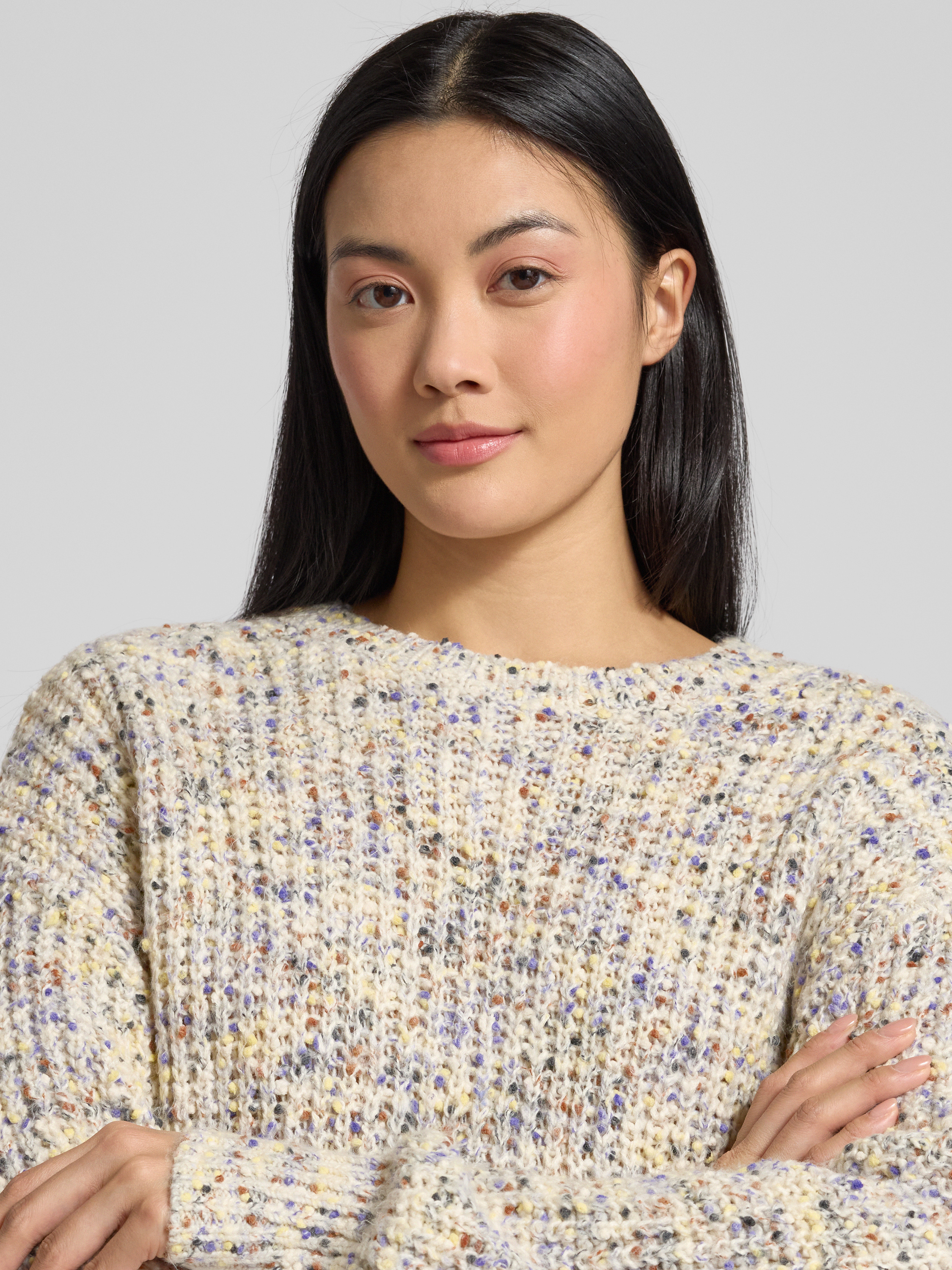 Sweter z dzianiny z okrągłym dekoltem - écru