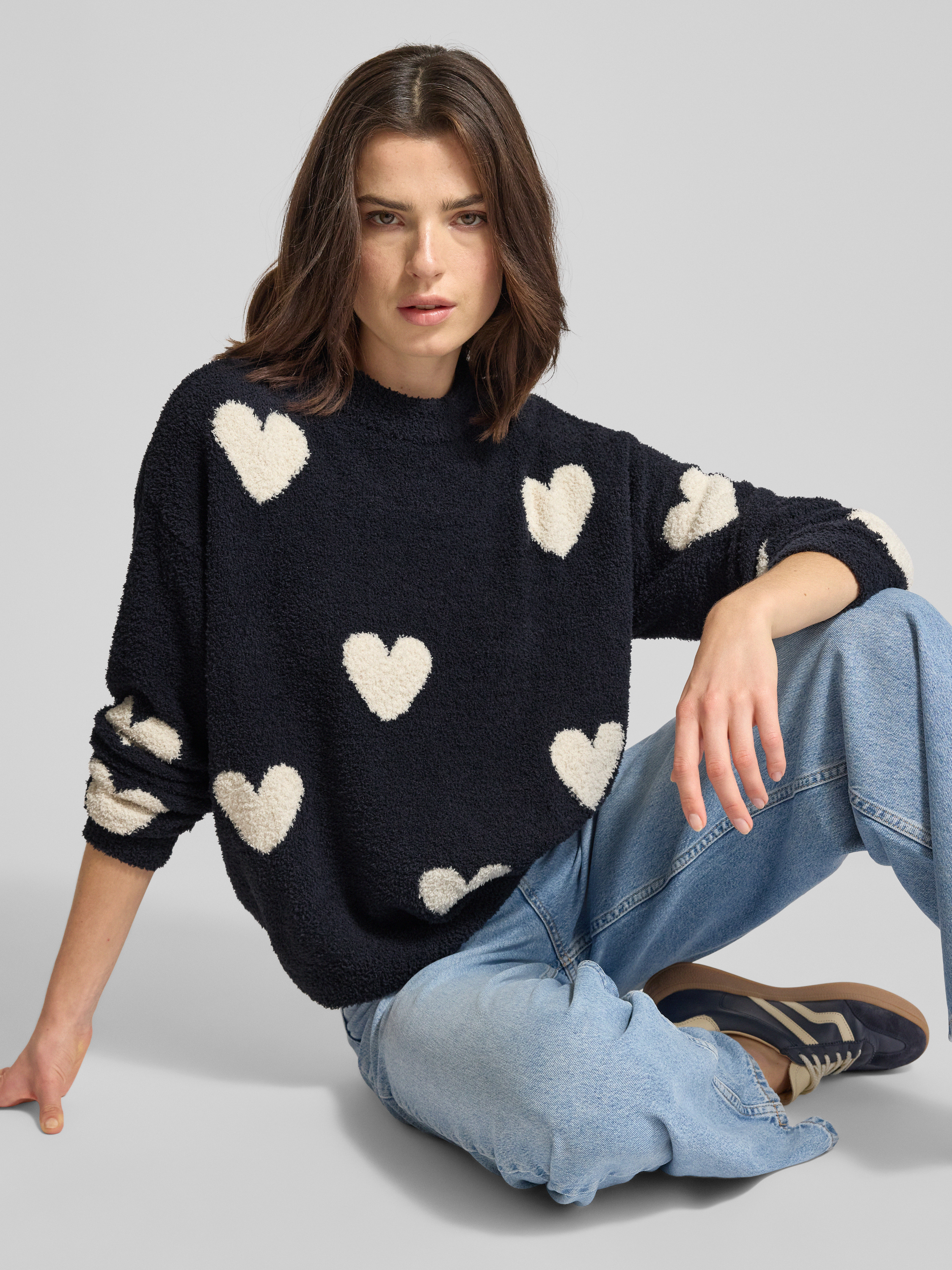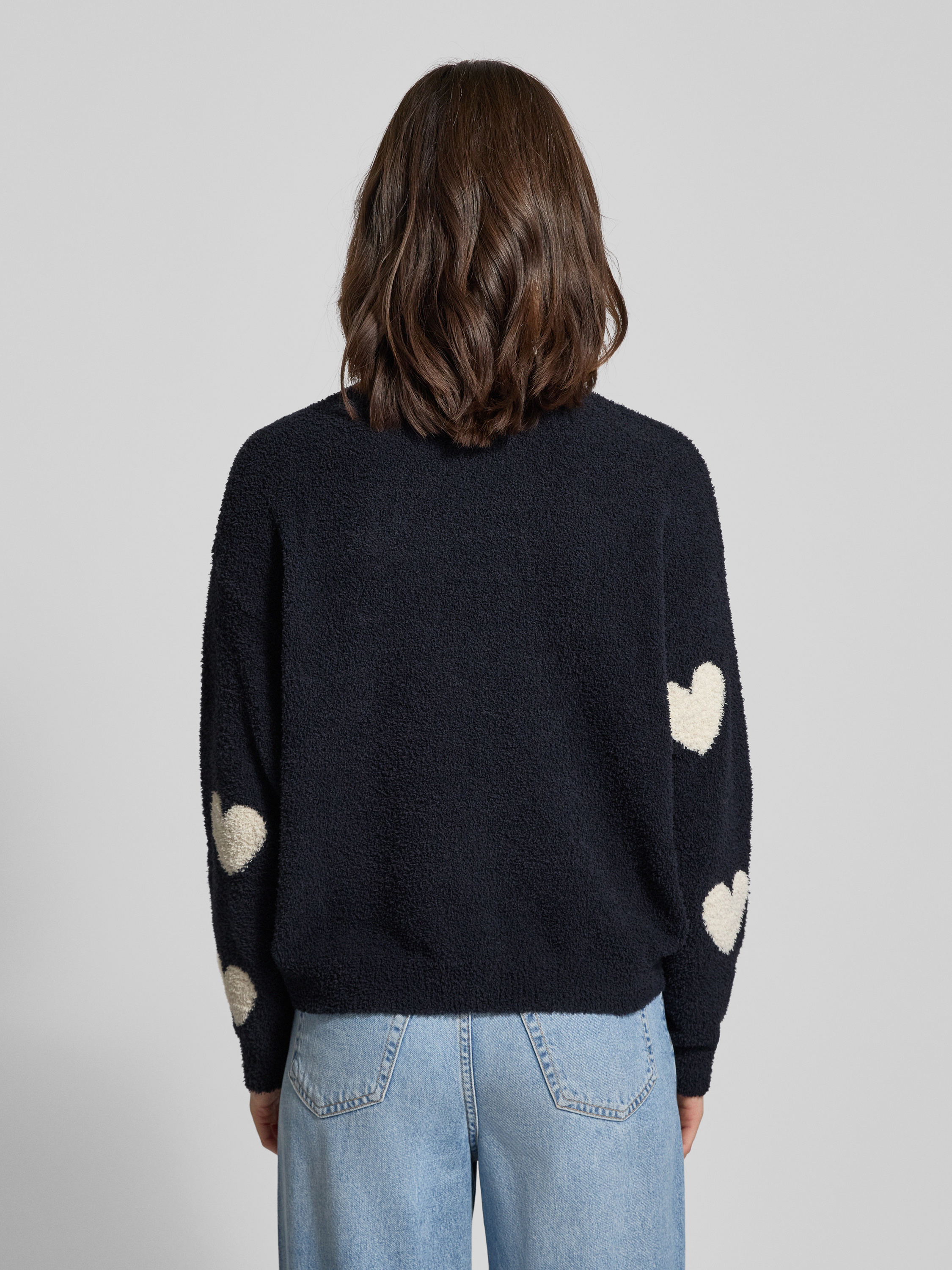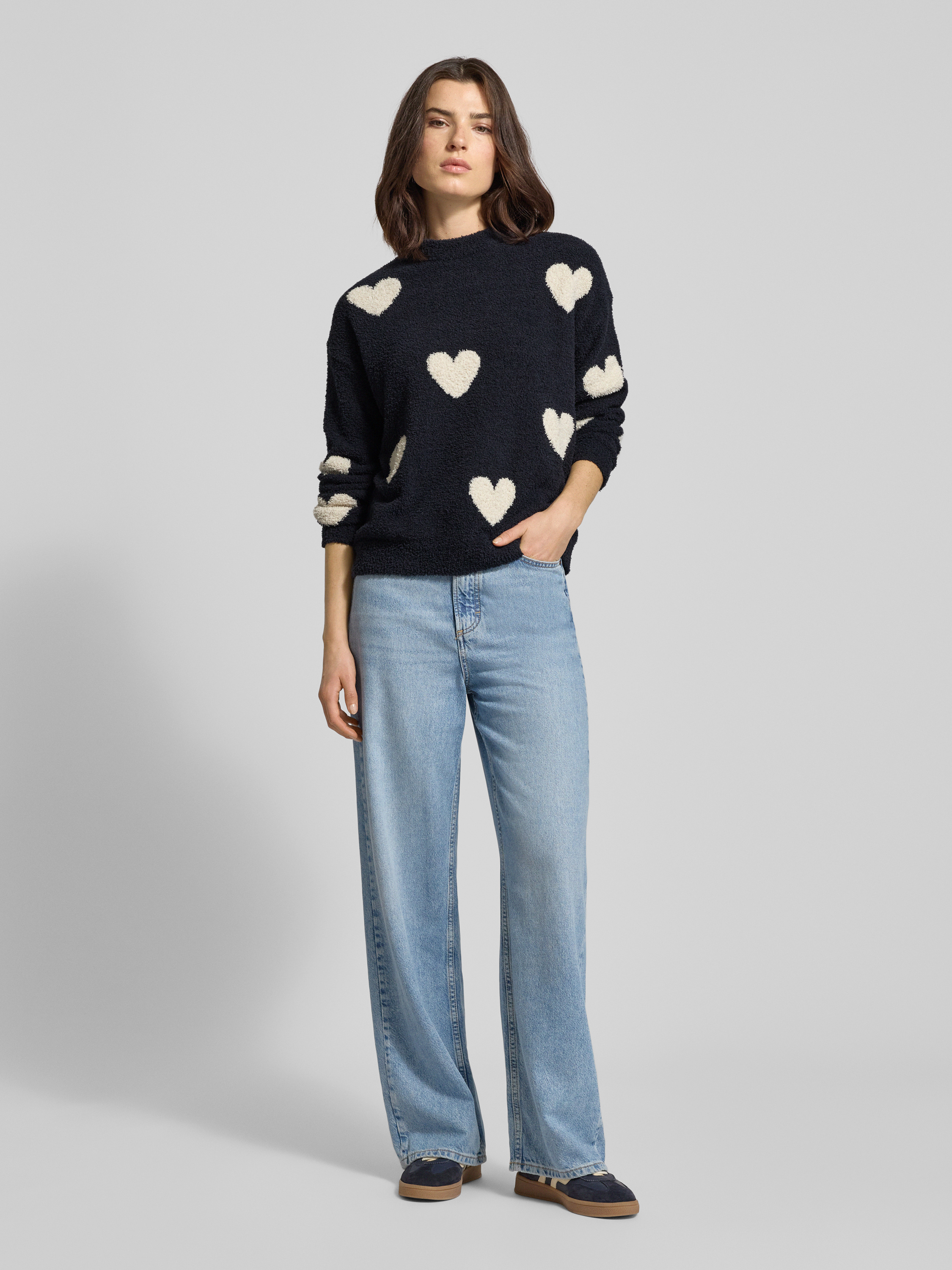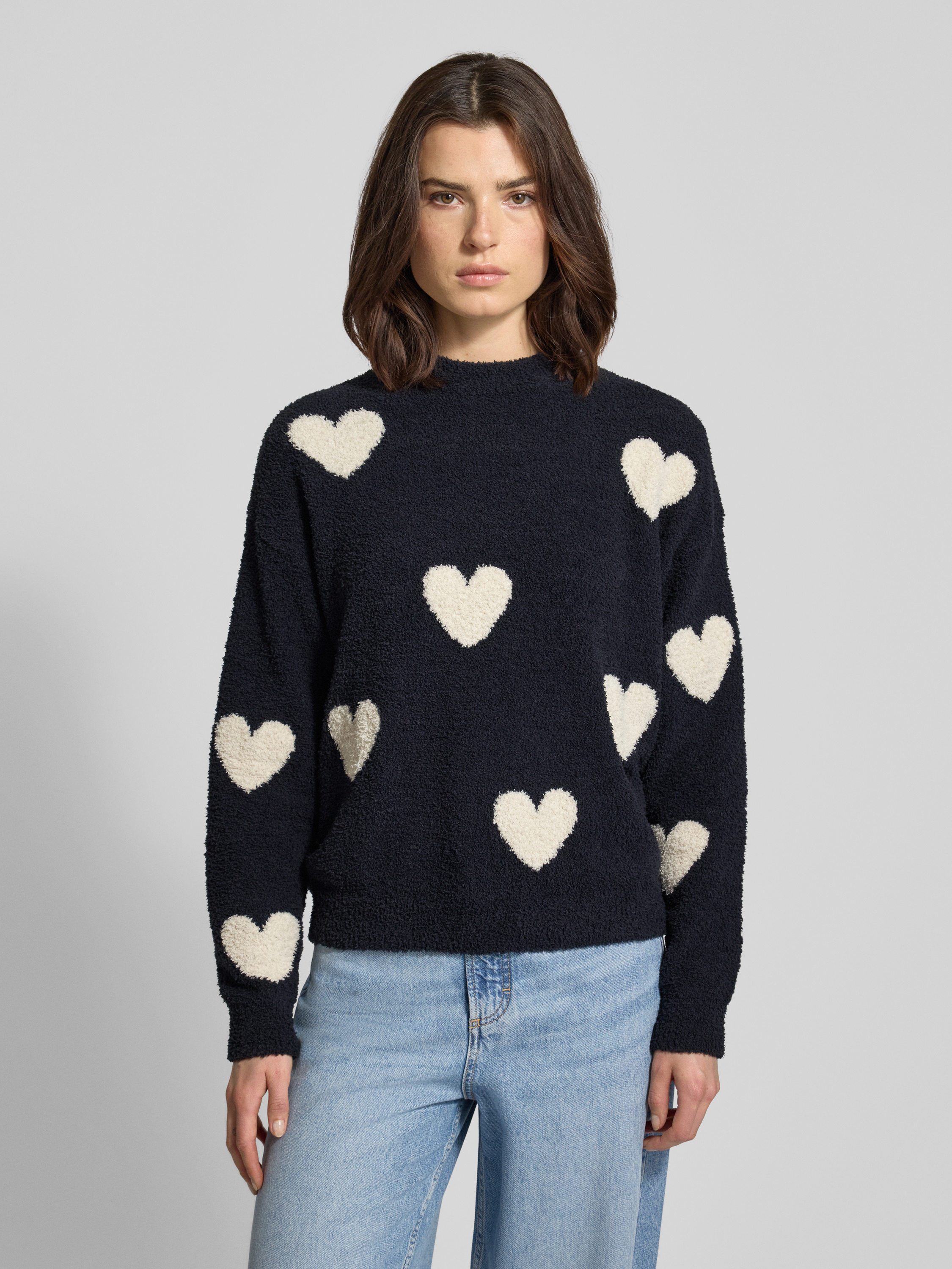 Sweter z dzianiny ze wzorem na całej powierzchni - ciemnoniebieski