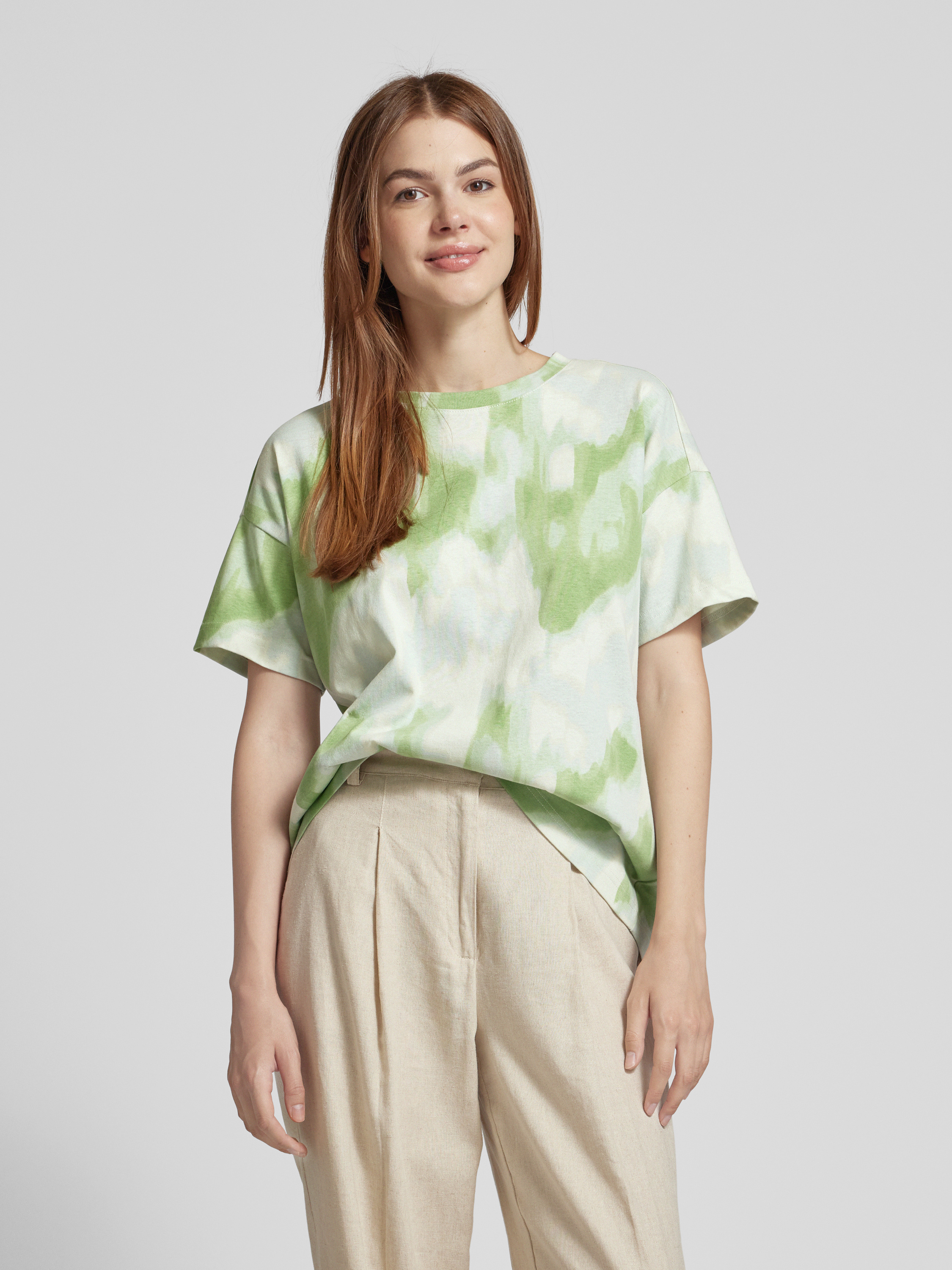Jake*s CasualT-shirt o kroju oversized z nadrukiem na całej powierzchni - trawiasty zielony
