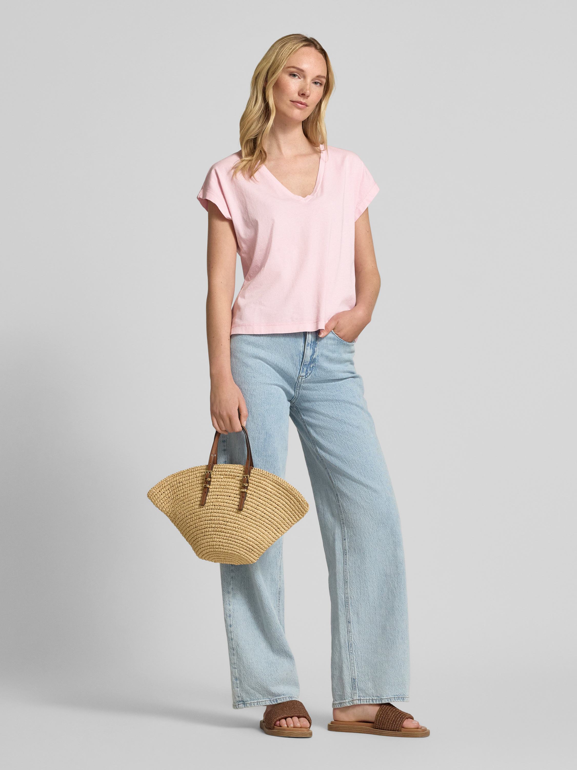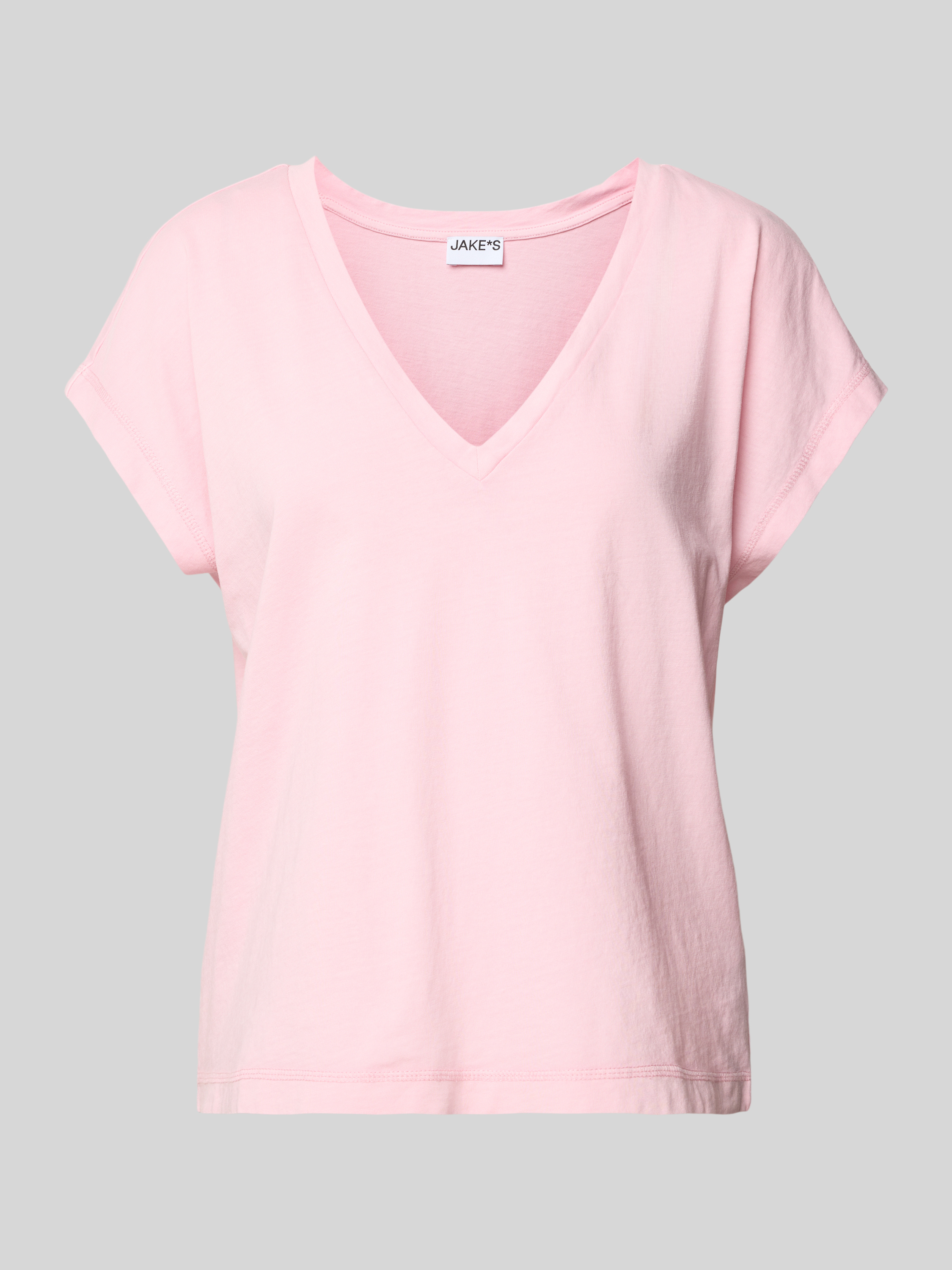 Jake*s CasualT-shirt z prążkowanym dekoltem w serek - fuksjowy