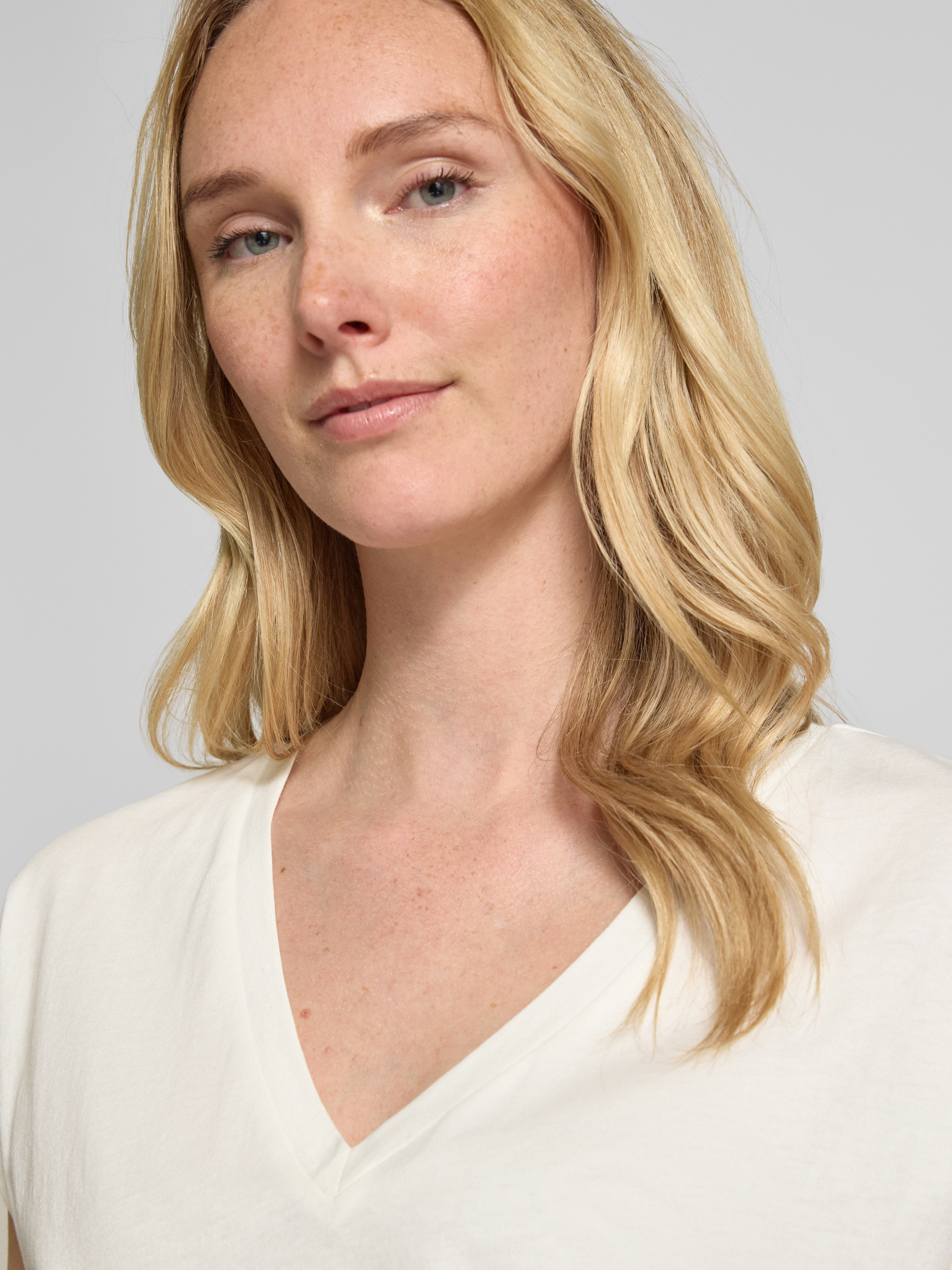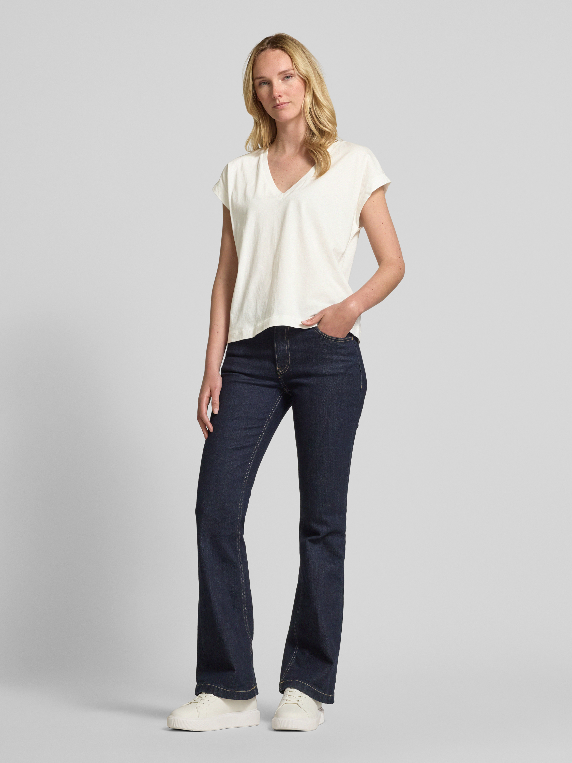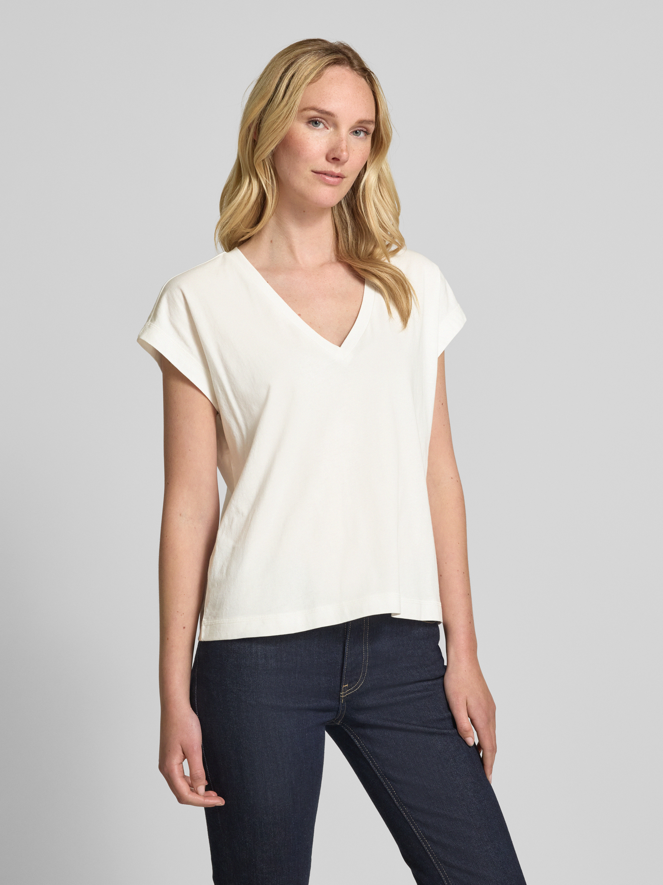Jake*s CasualT-shirt z prążkowanym dekoltem w serek - złamany biały