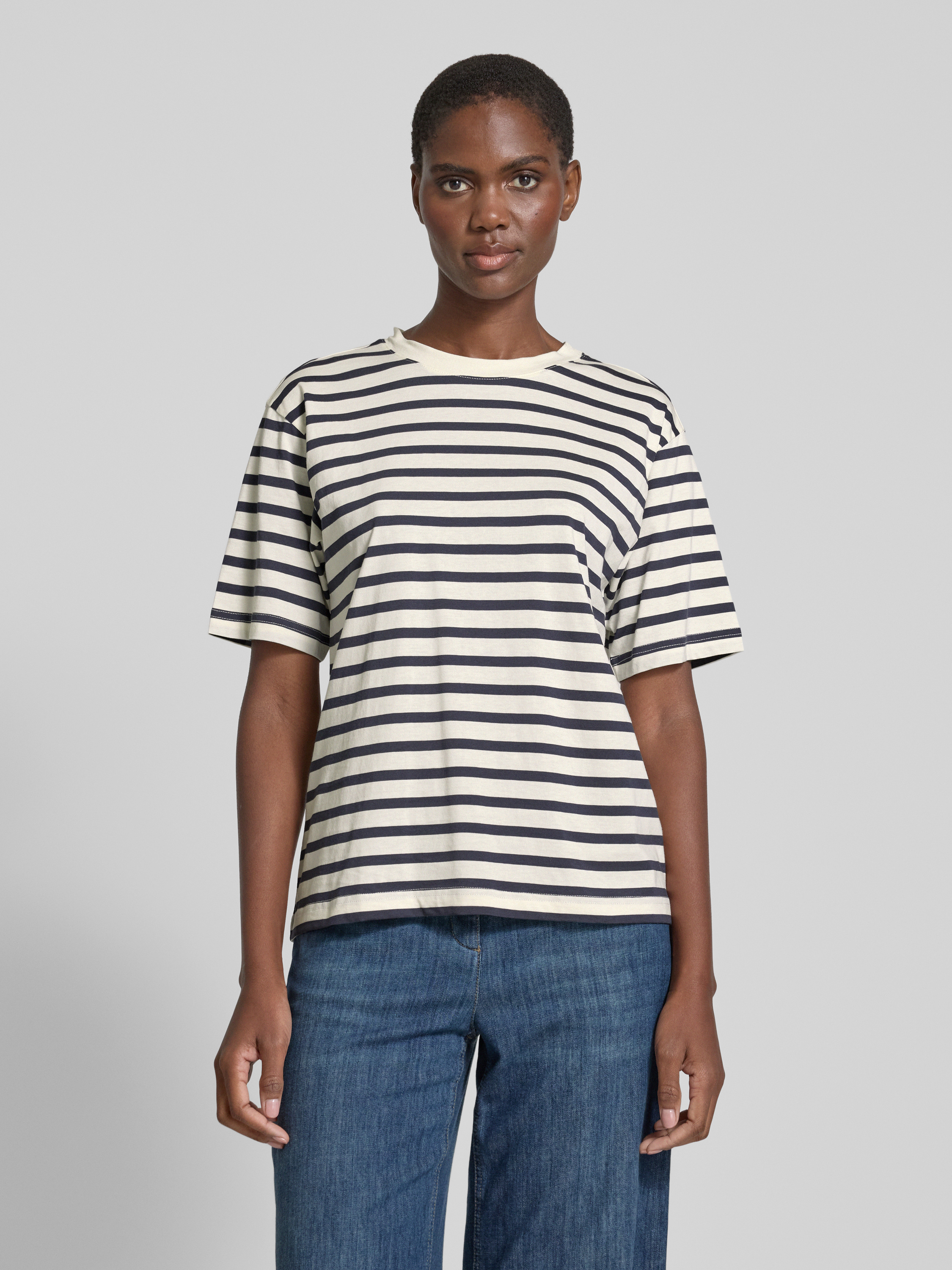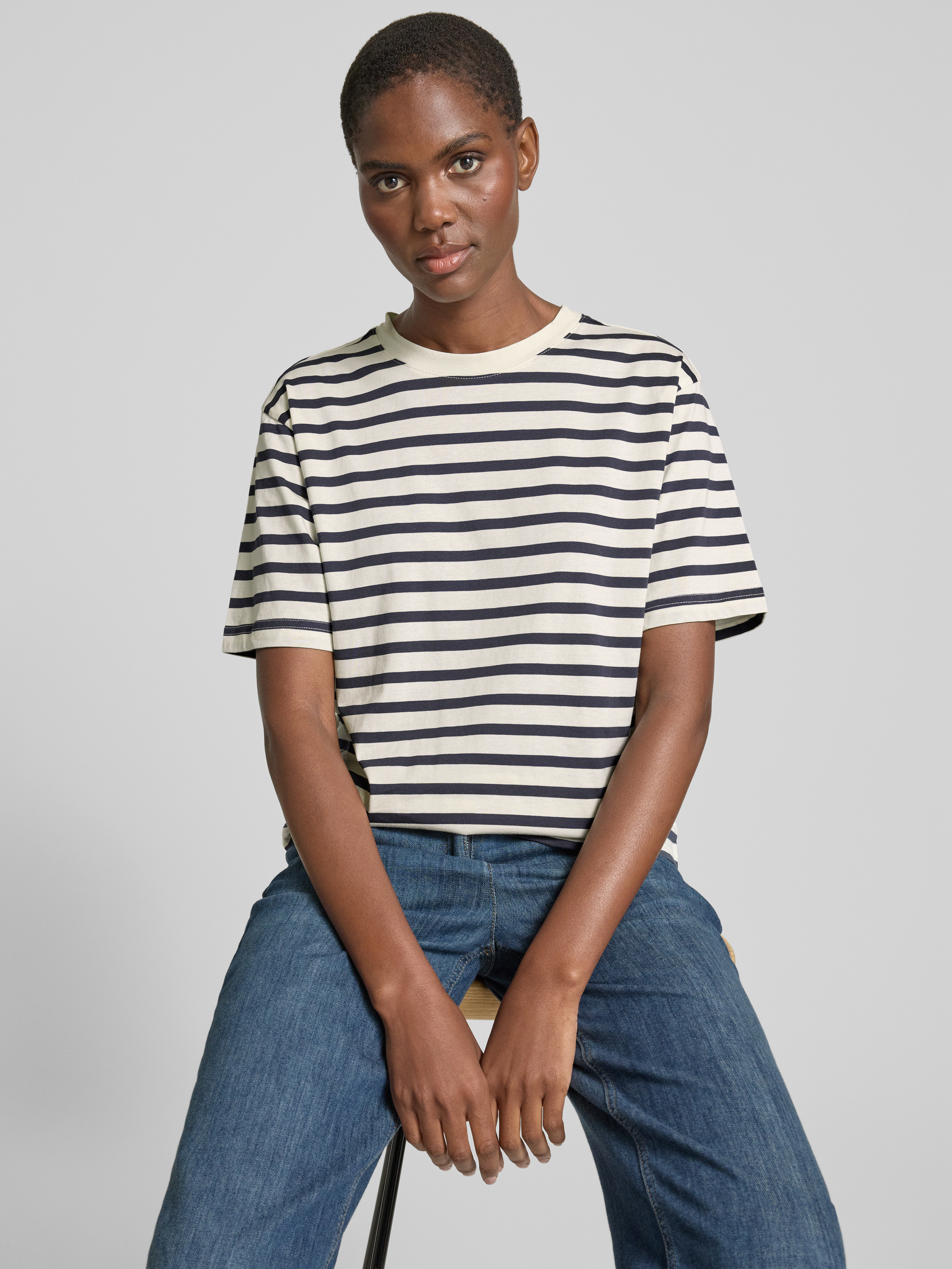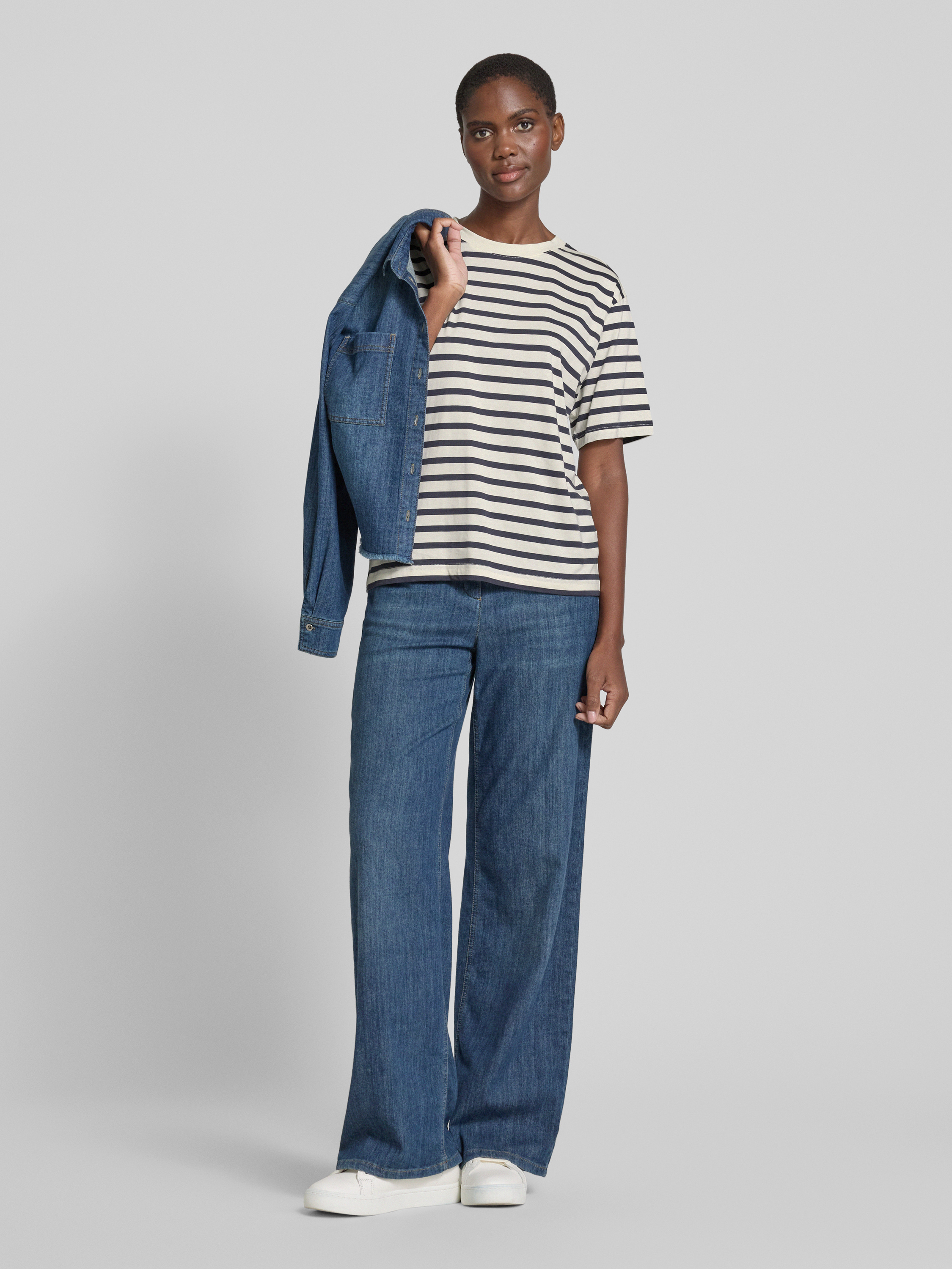 Jake*s CasualT-shirt z prążkowanym okrągłym dekoltem - ciemnoniebieski