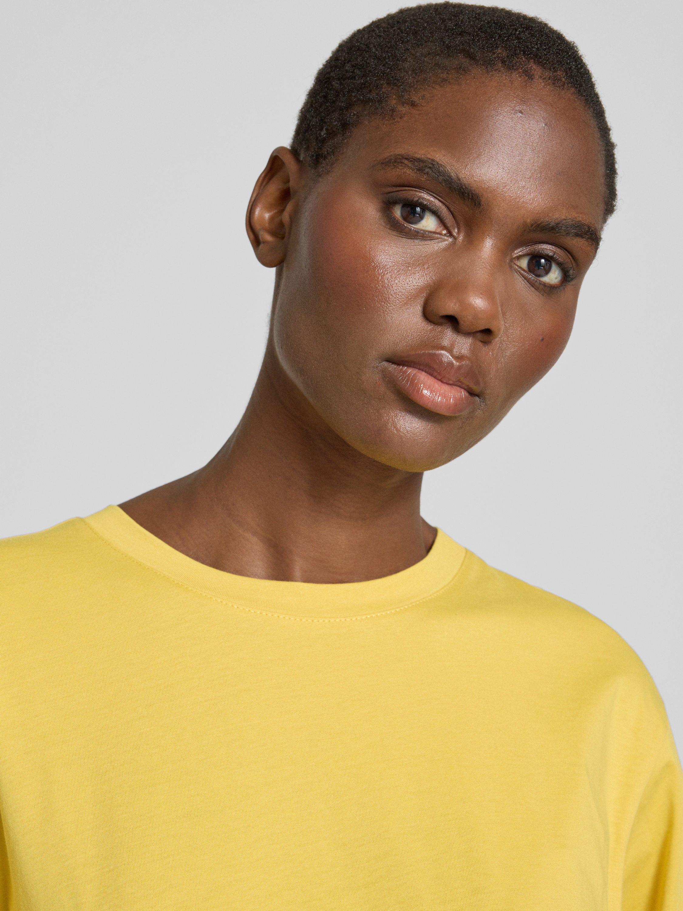 Jake*s CasualT-shirt z prążkowanym okrągłym dekoltem - ciemnożółty
