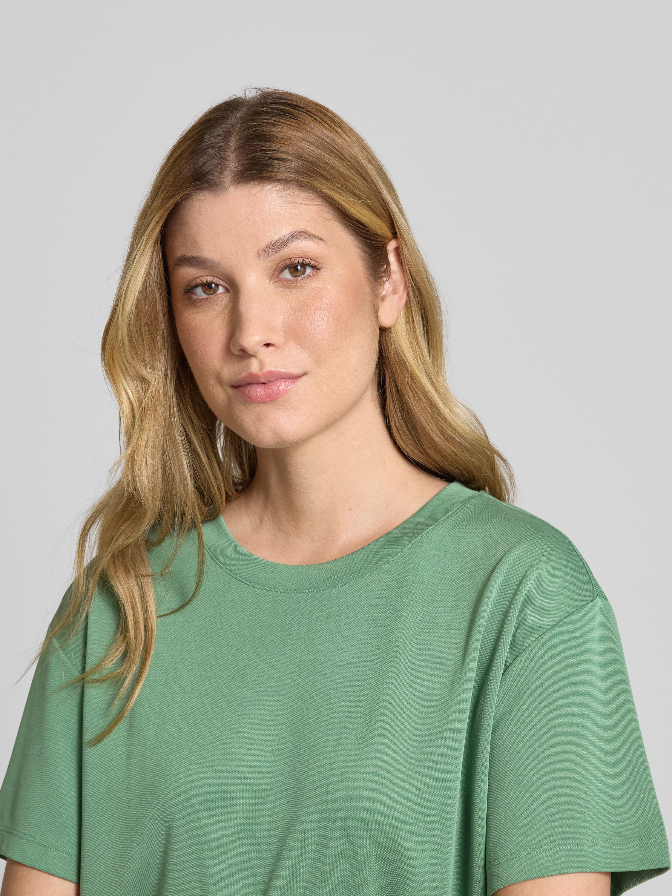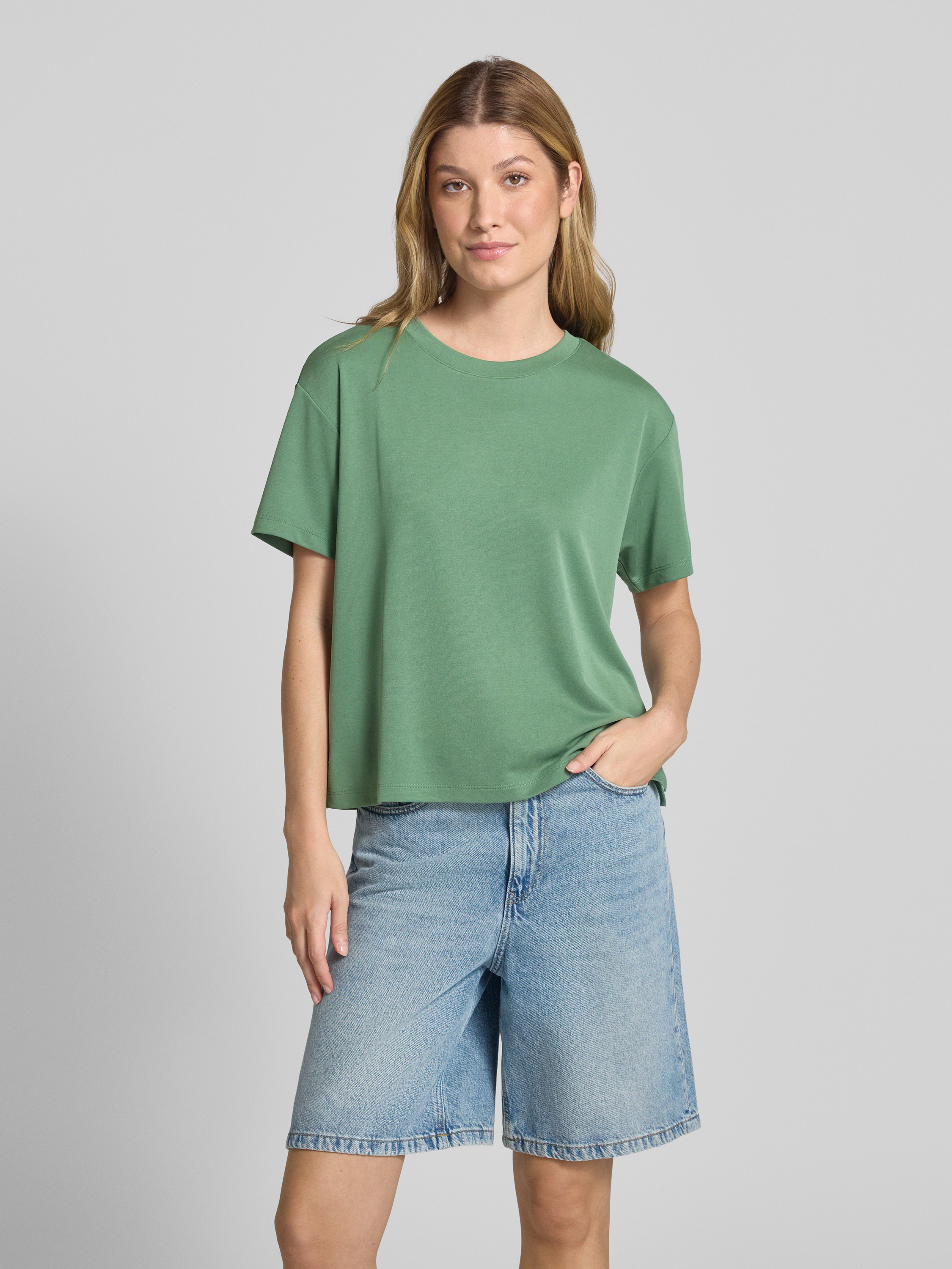 T-shirt z prążkowanym okrągłym dekoltem - zielony