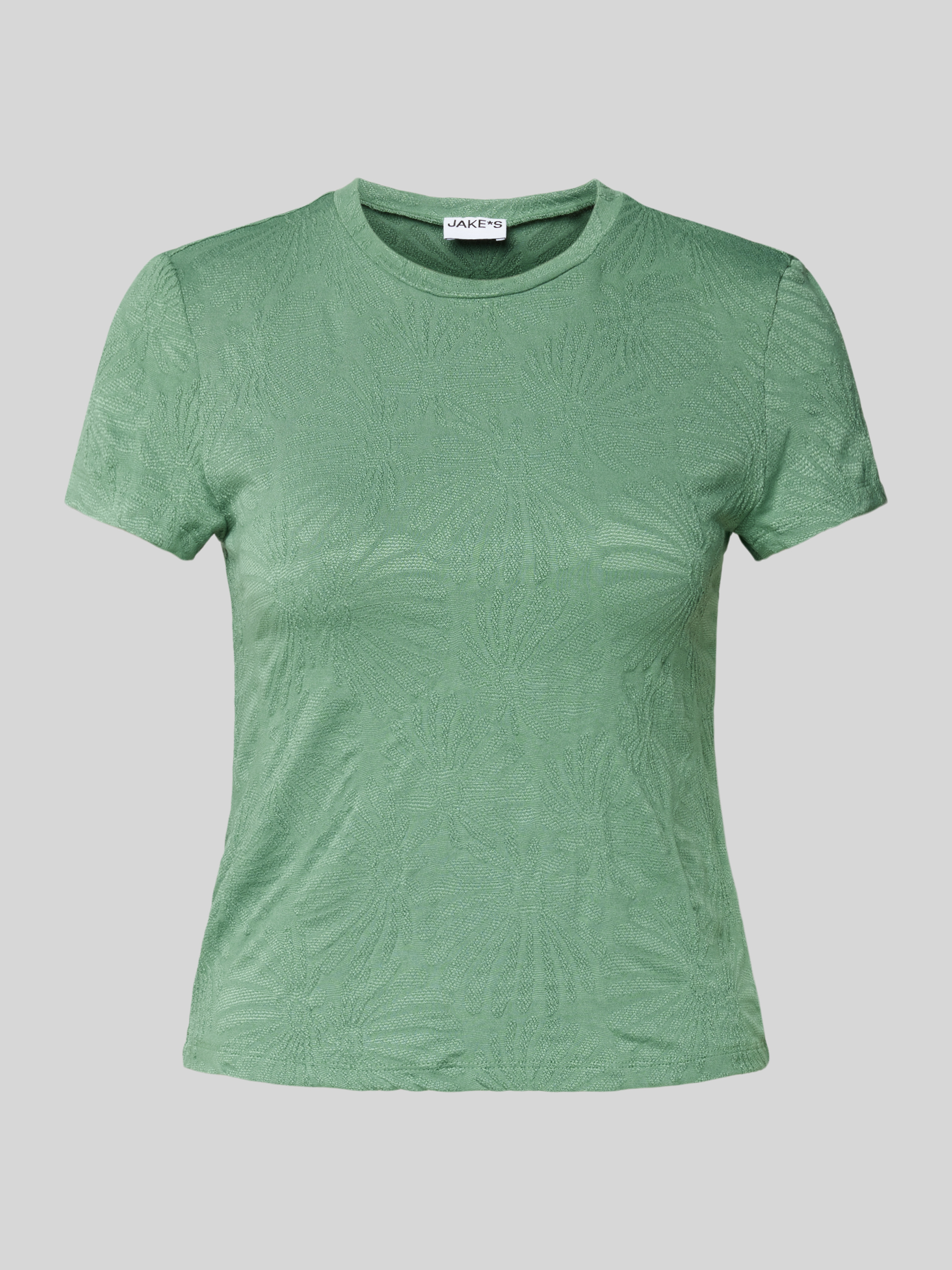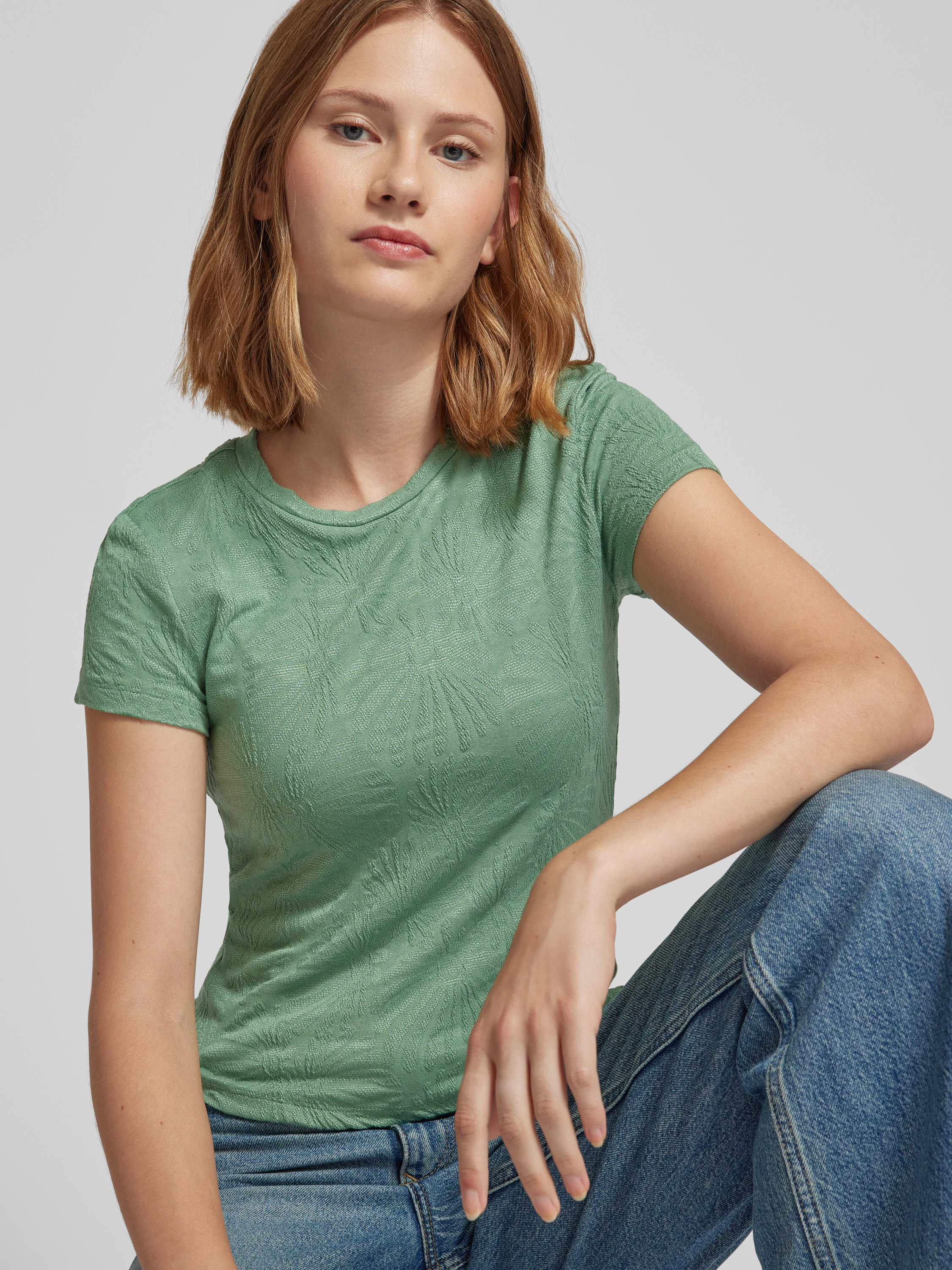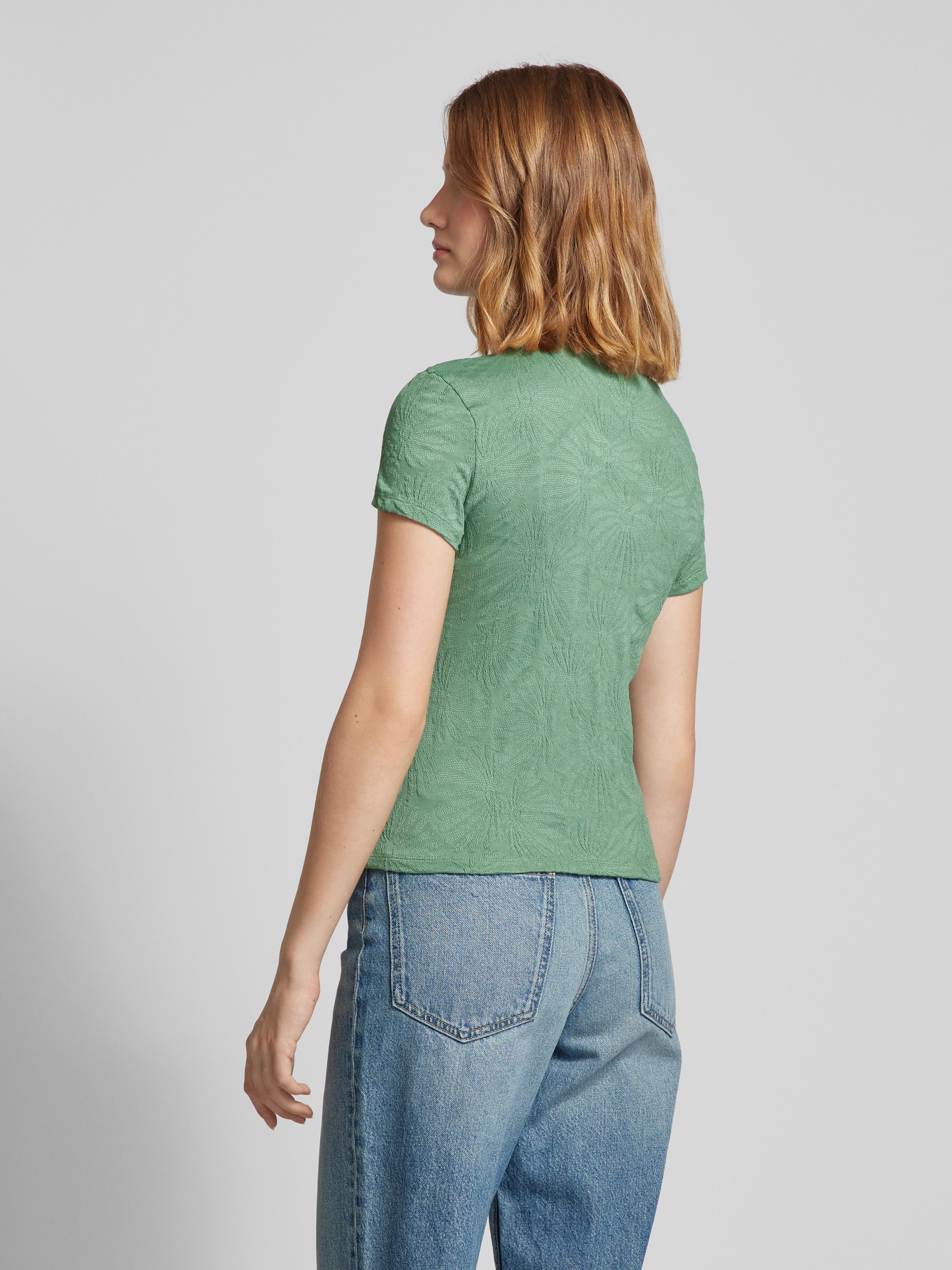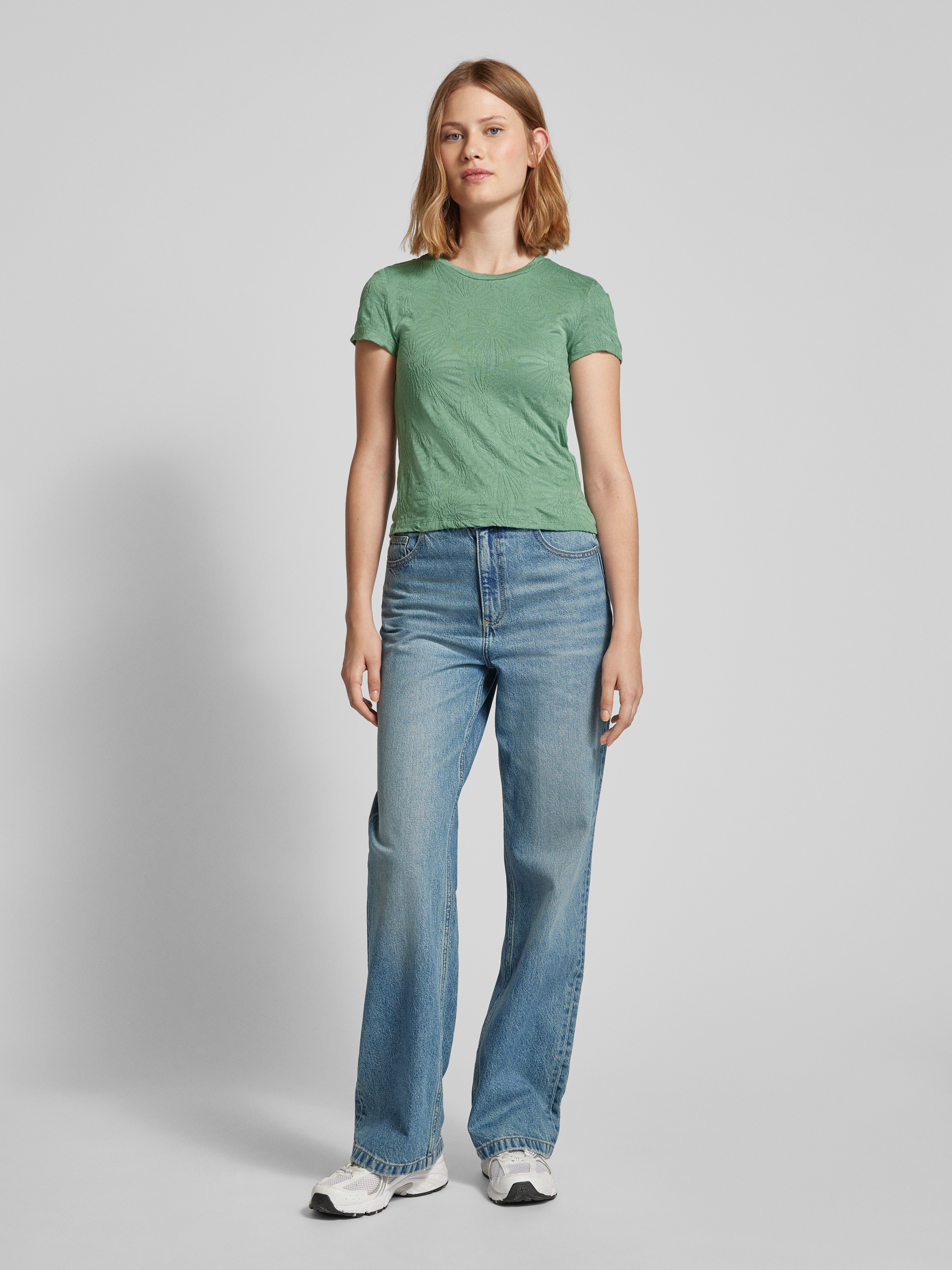 T-shirt z prążkowanym okrągłym dekoltem - zielony
