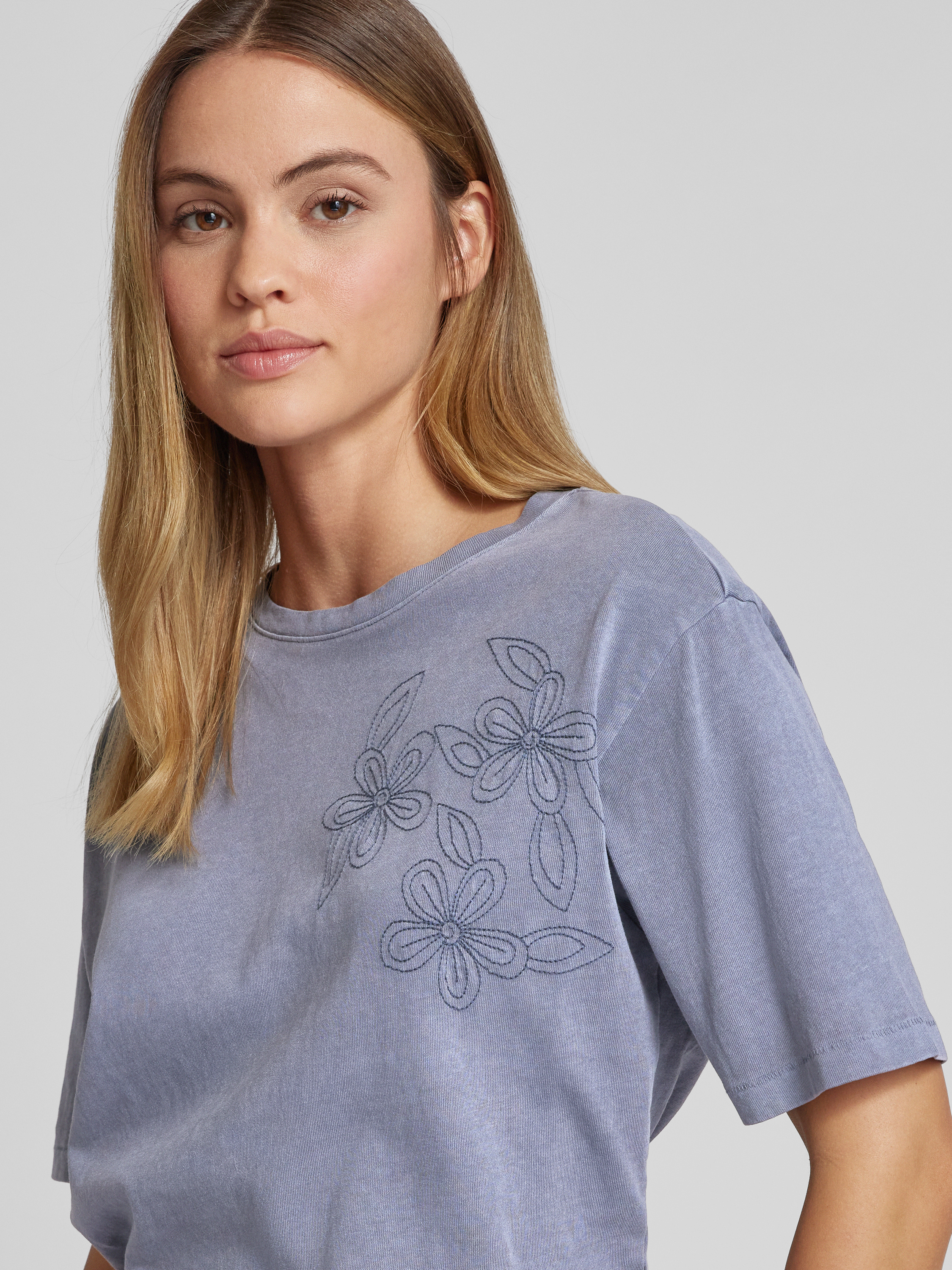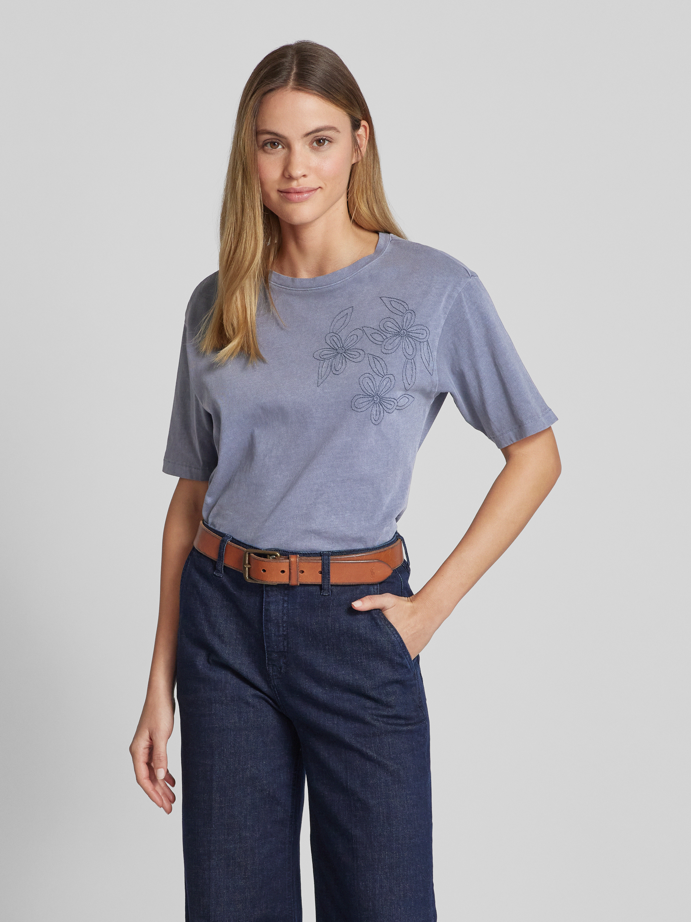 Jake*s CasualT-shirt z wyhaftowanym motywem - jeansowy niebieski