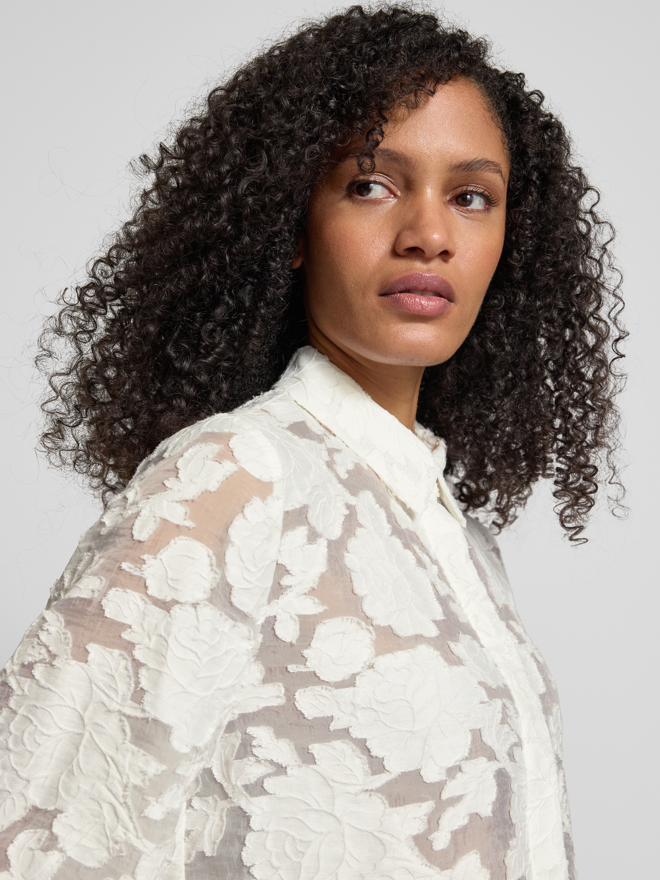 Bluzka koszulowa z krytą listwą guzikową - złamany biały