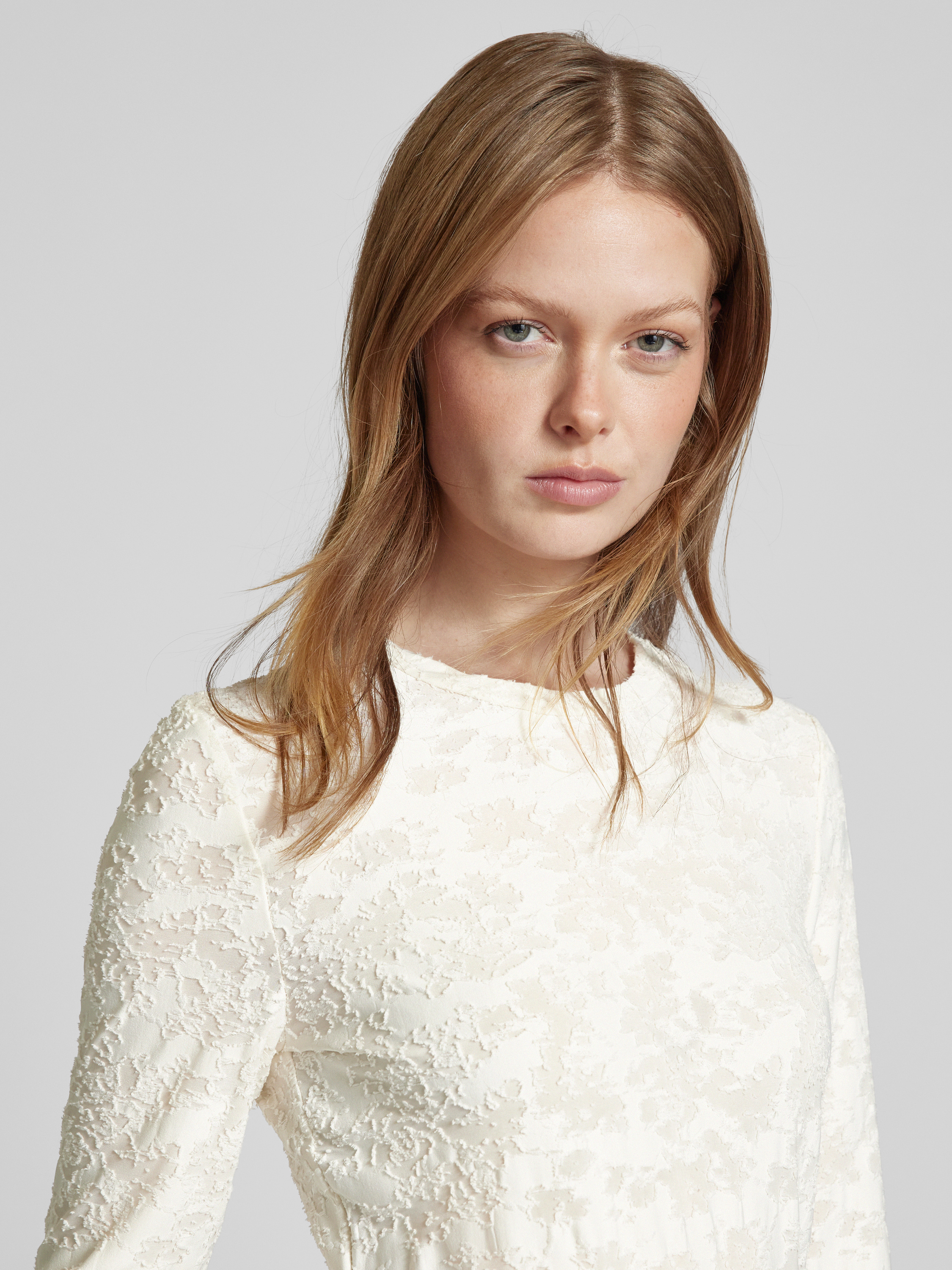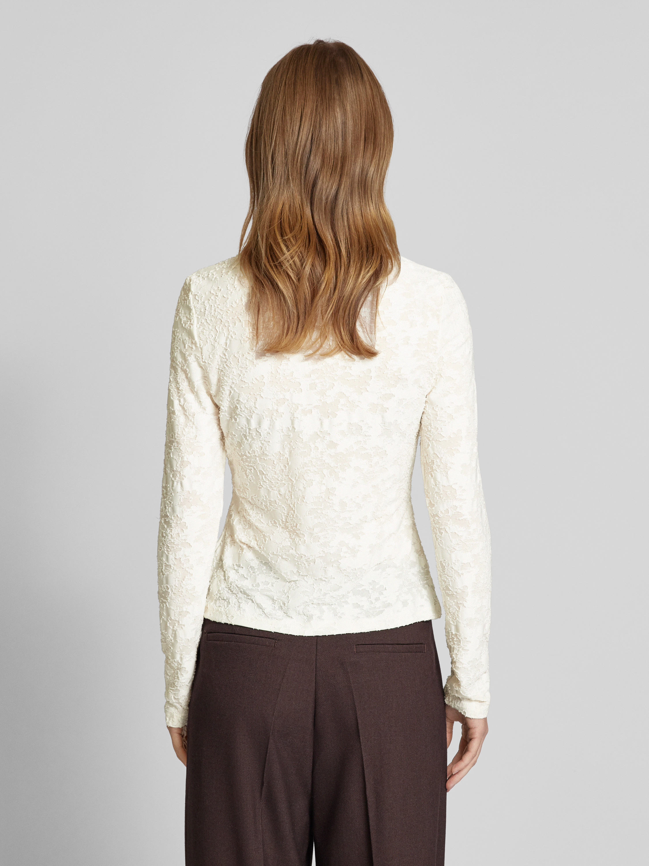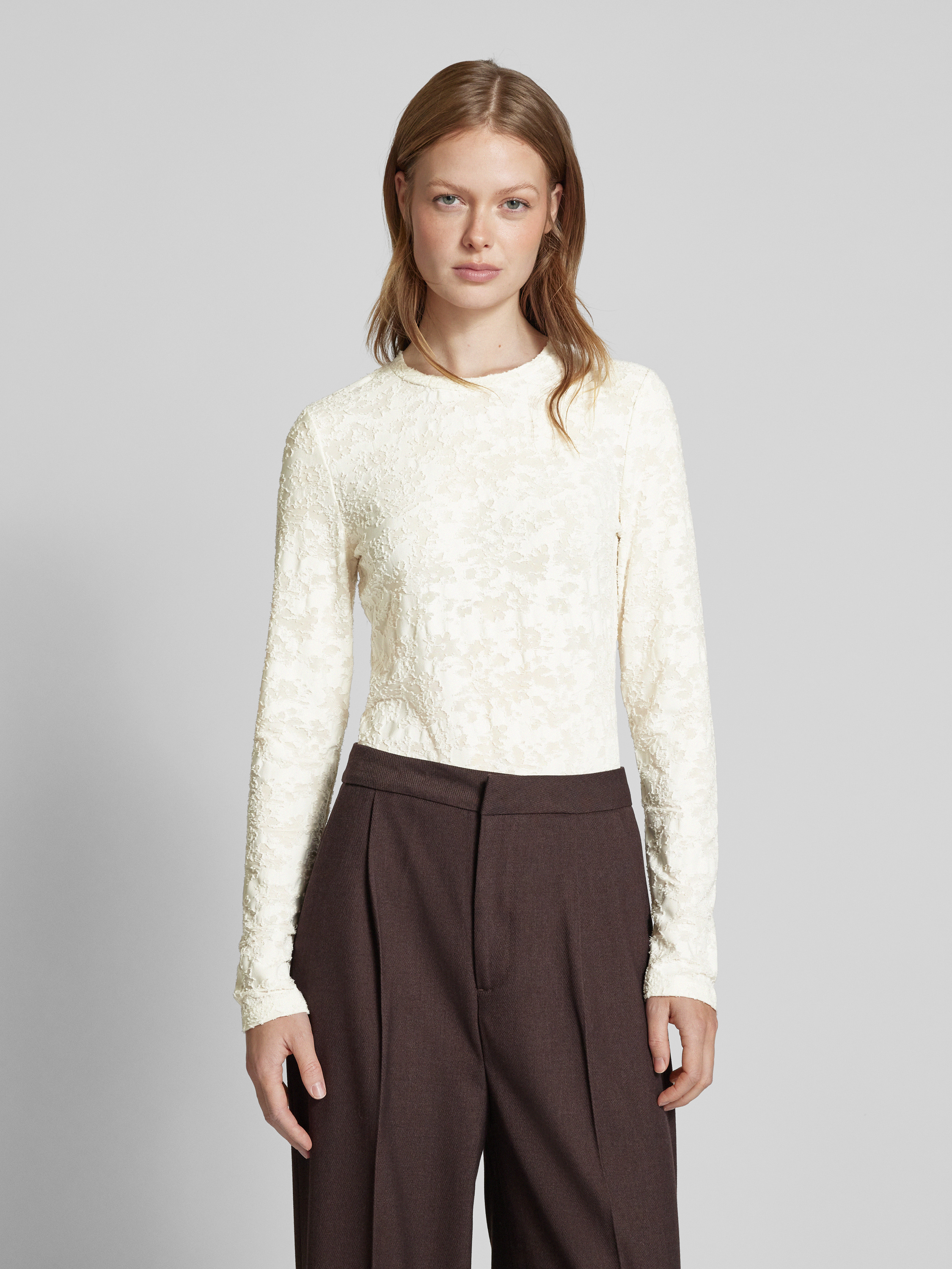 Bluzka z długim rękawem i fakturowanym wzorem - écru