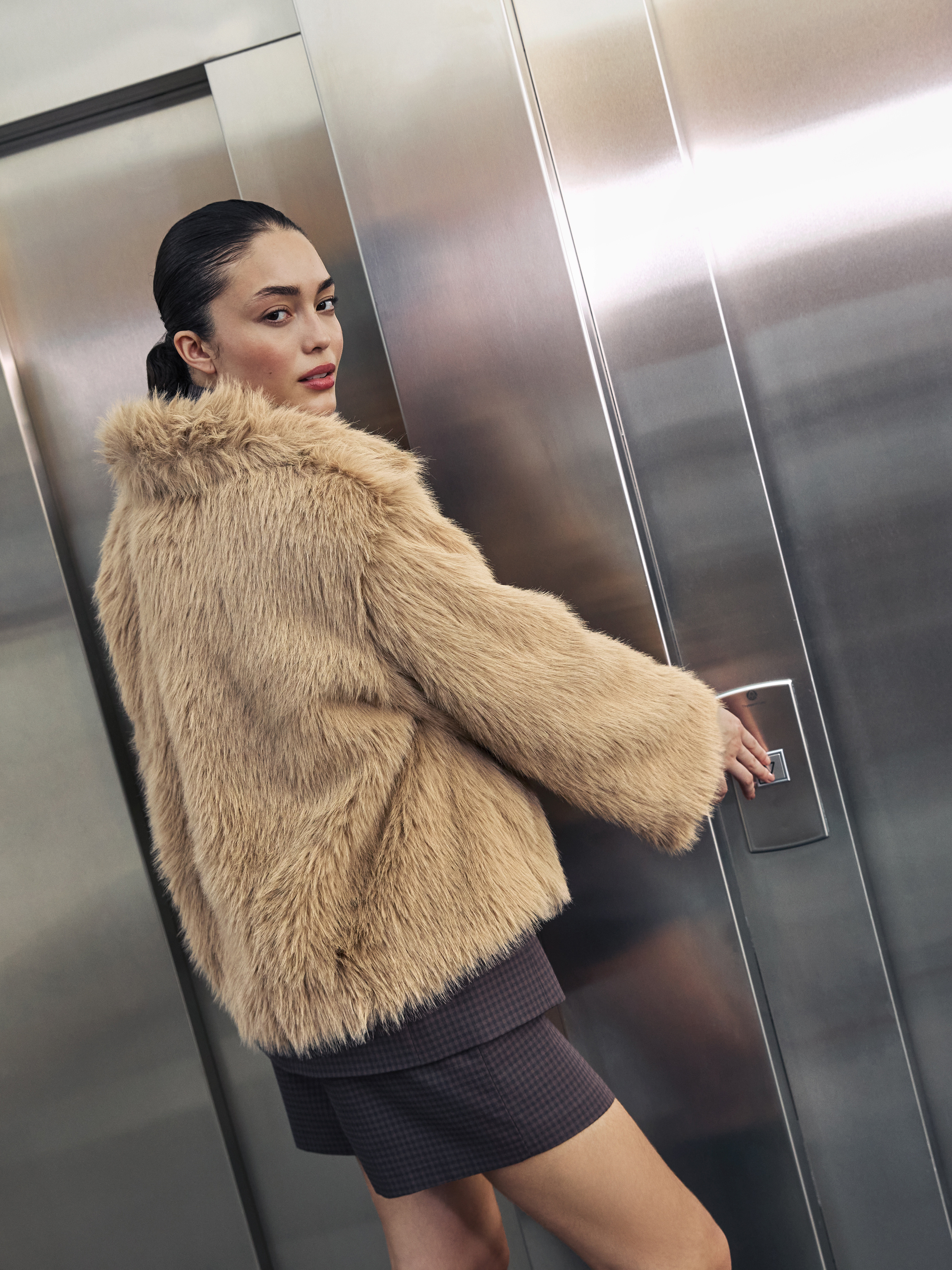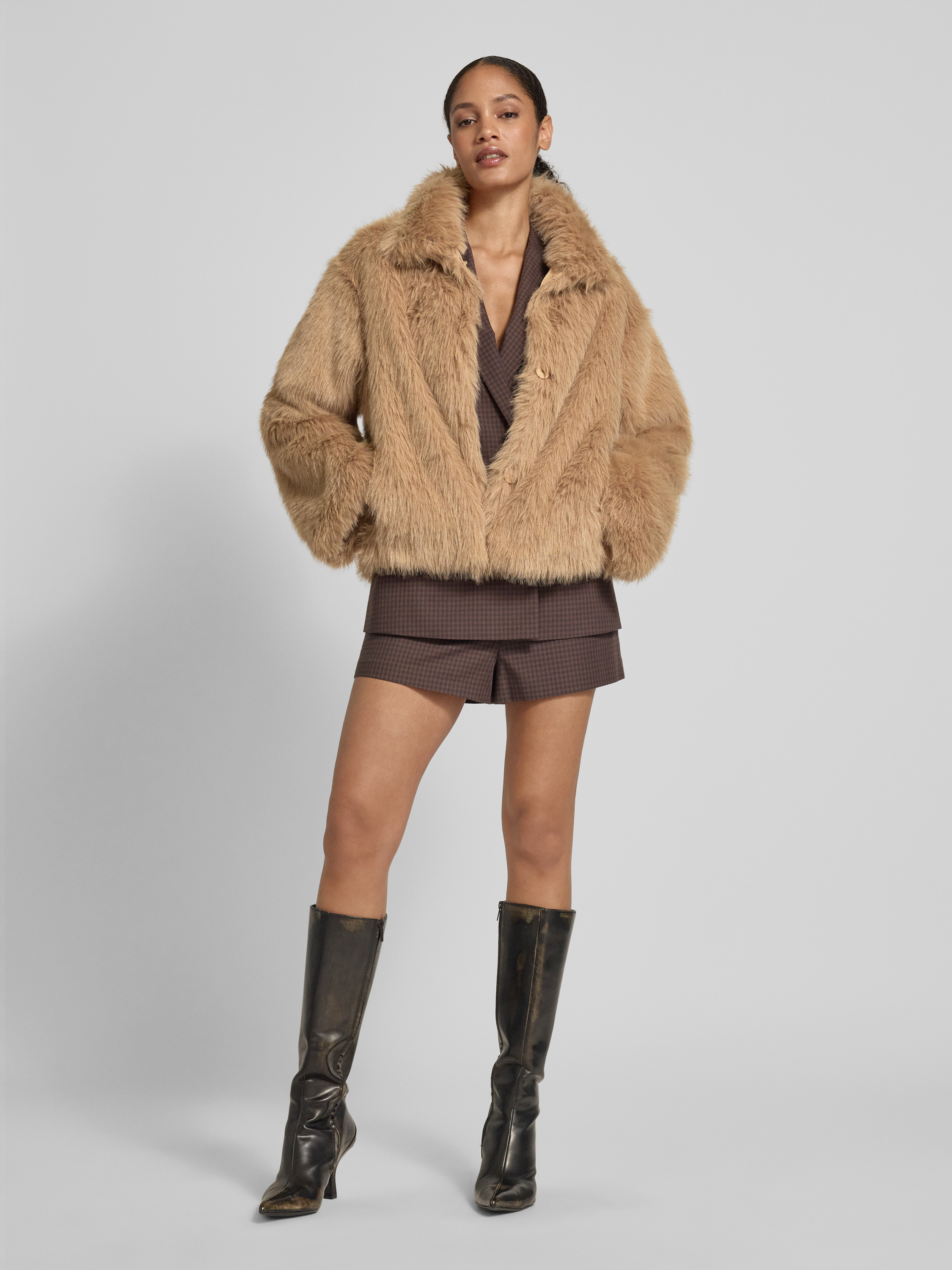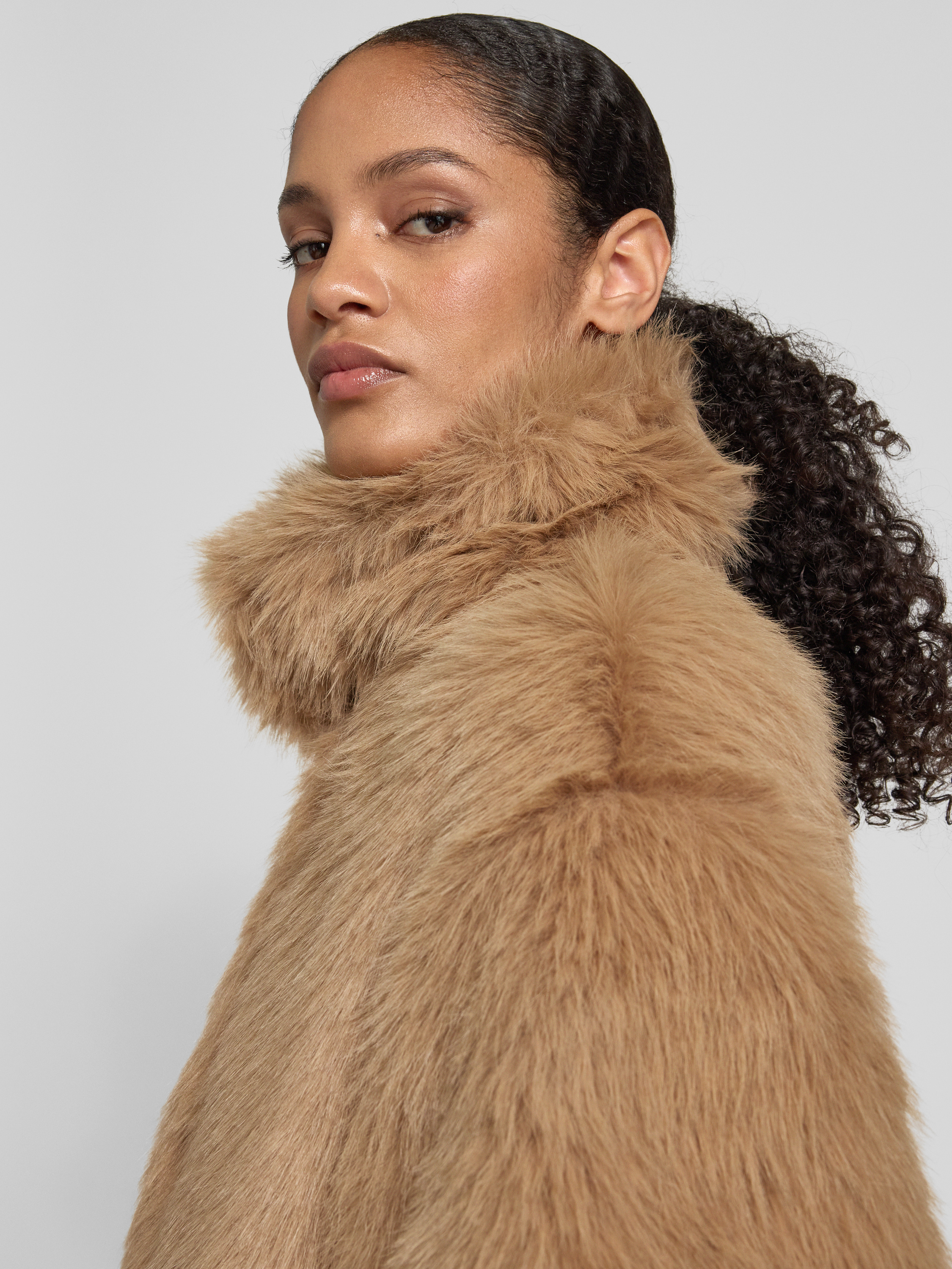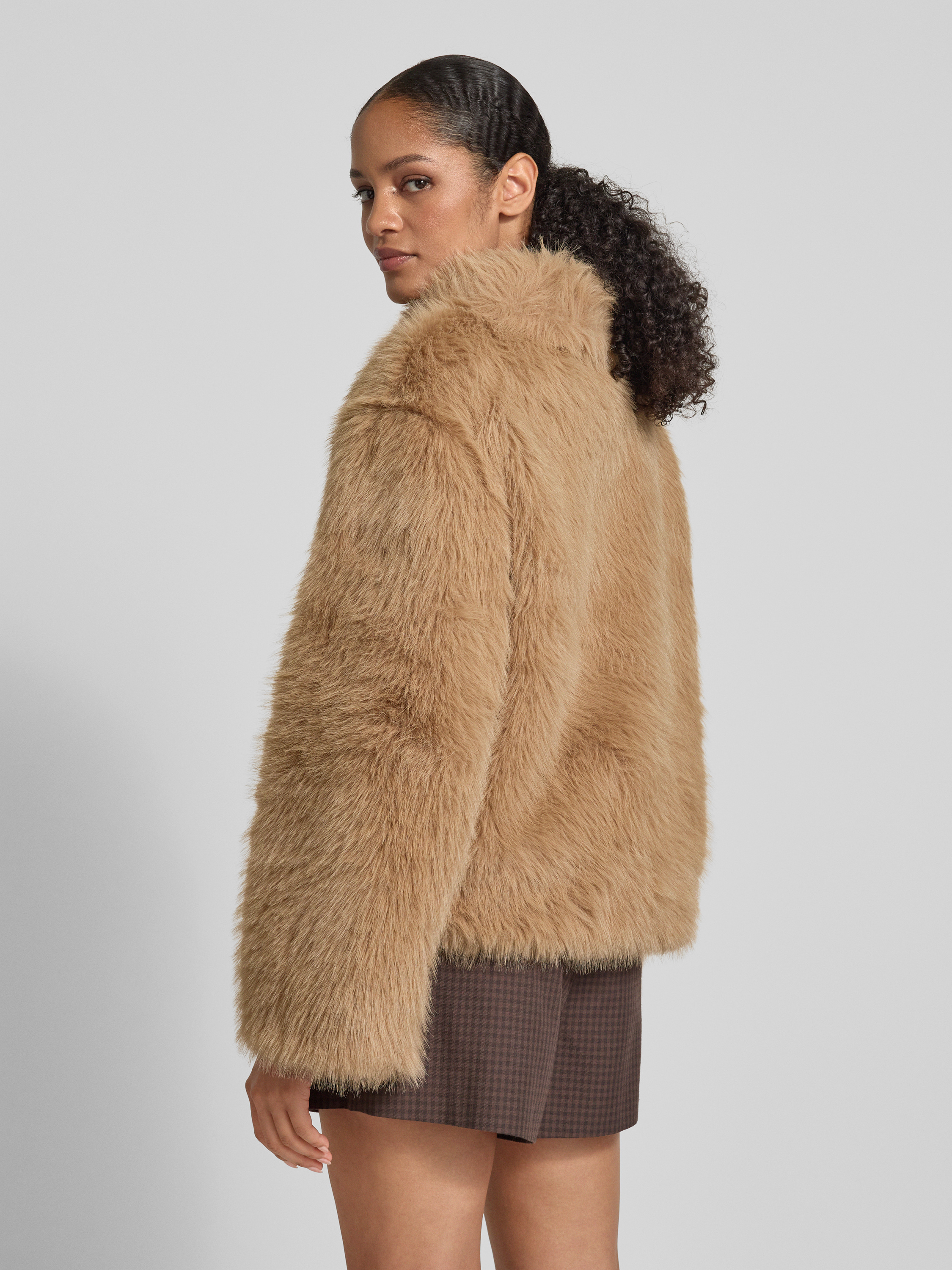 Kurtka z imitacji futra z wykładanym kołnierzem - camel