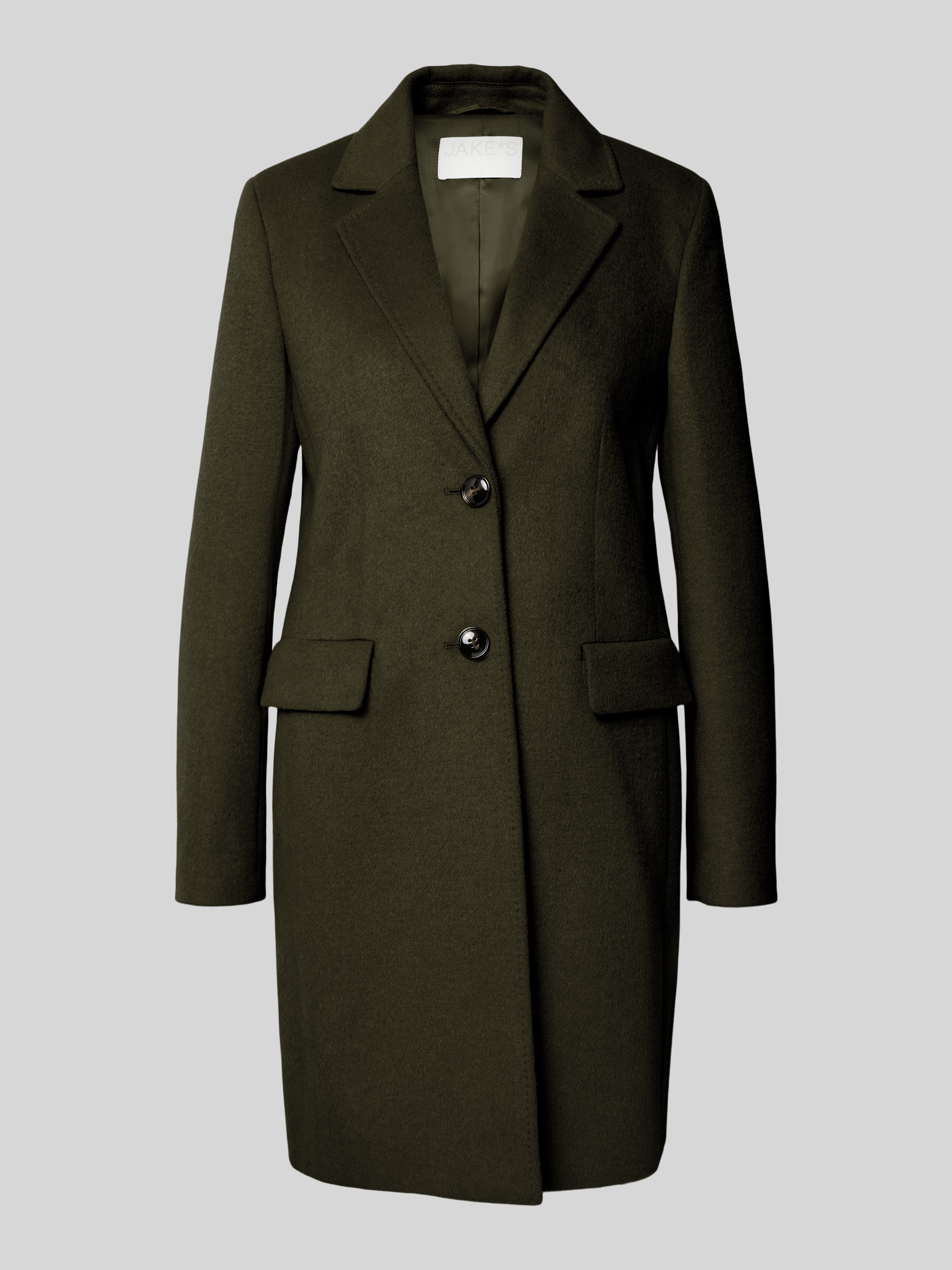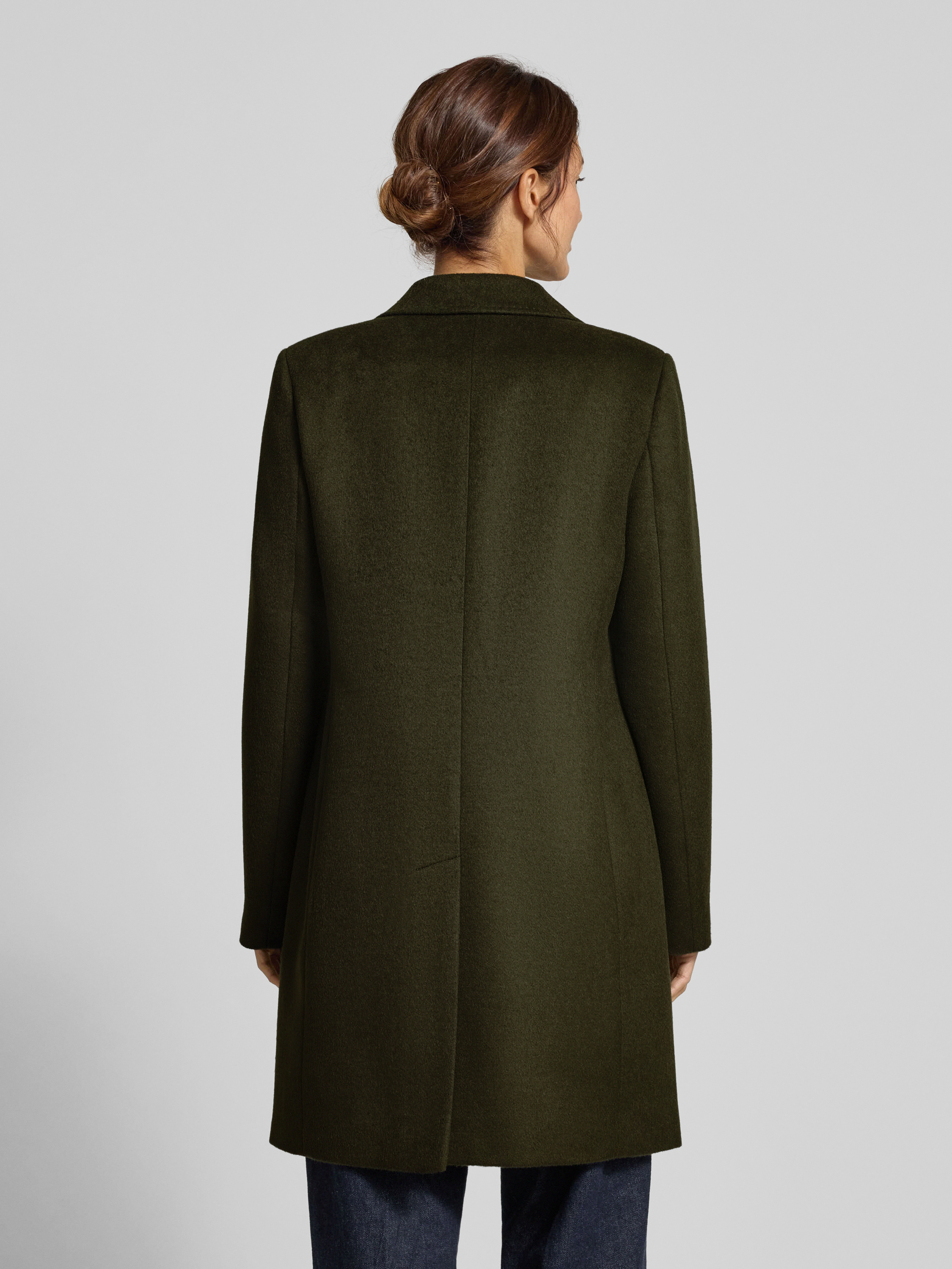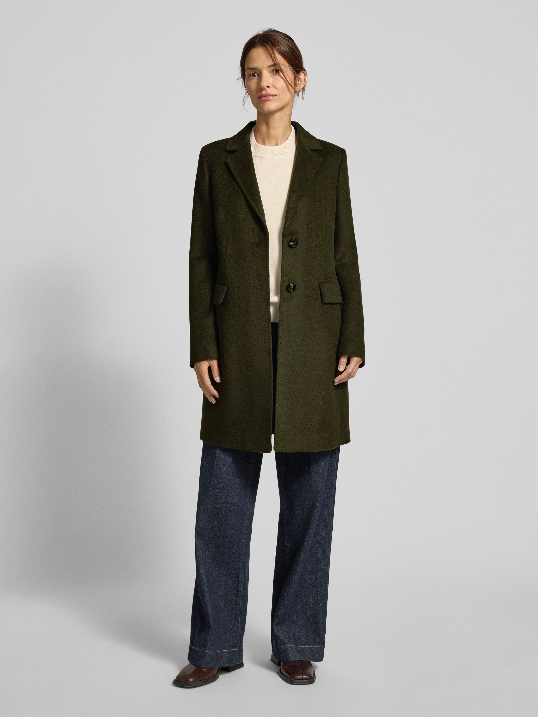 Płaszcz o kroju regular fit z dodatkiem wełny lana i kołnierzem z połami - ciemnozielony