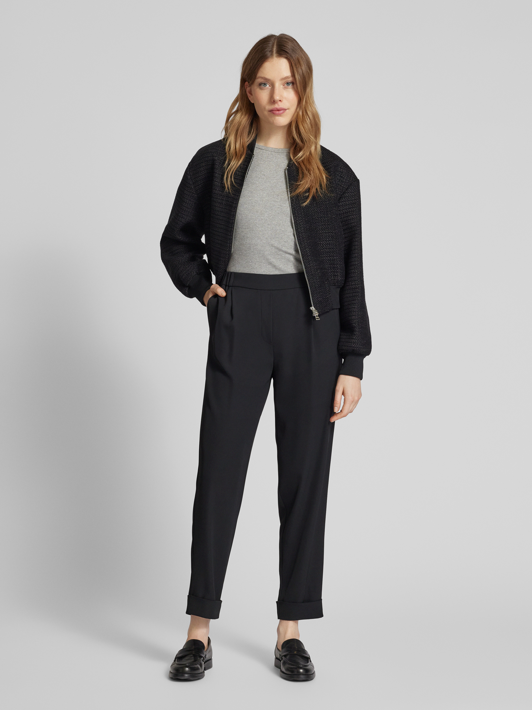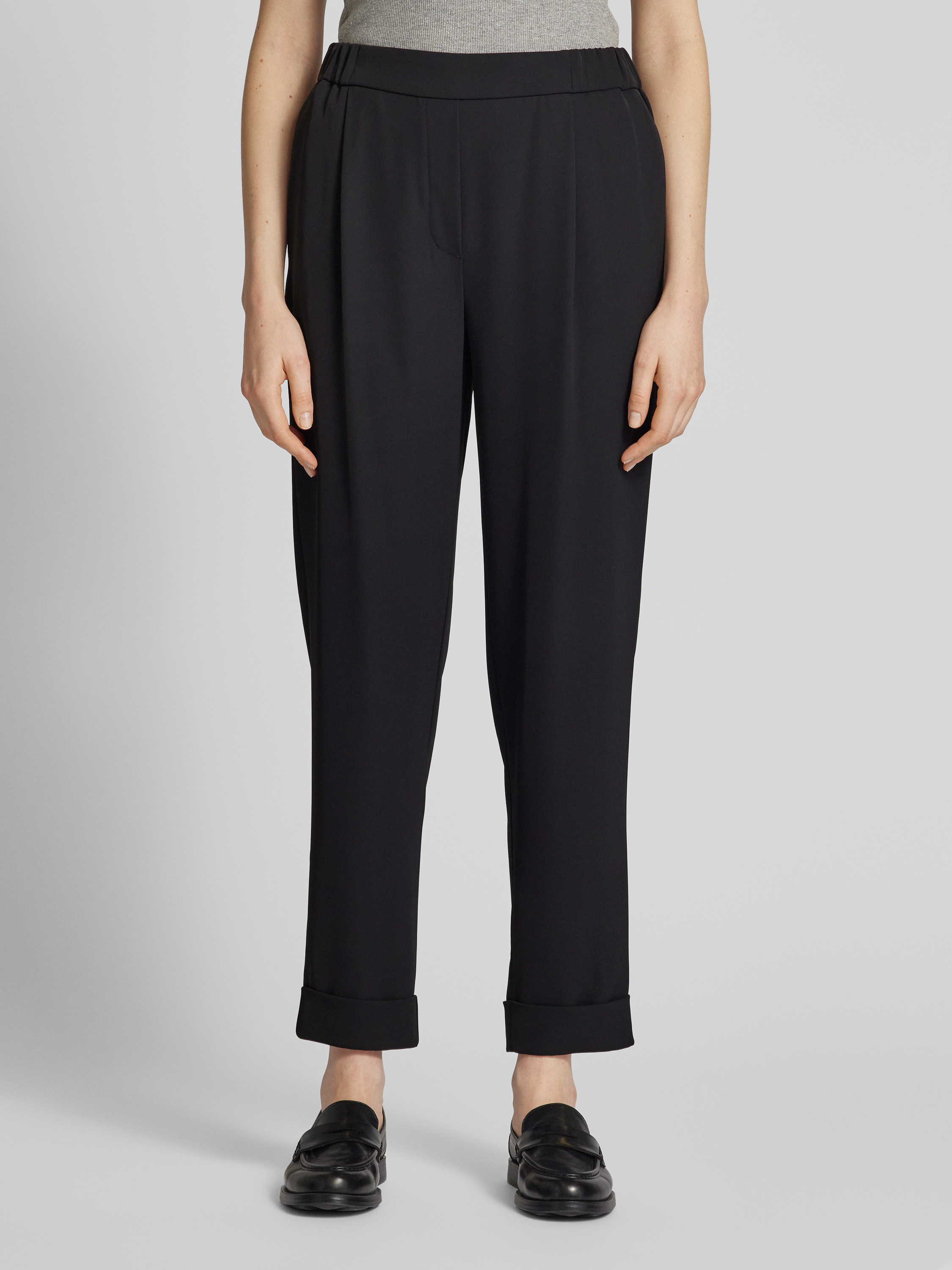 Spodnie do garnituru o kroju slim fit z zakładkami w pasie - czarny