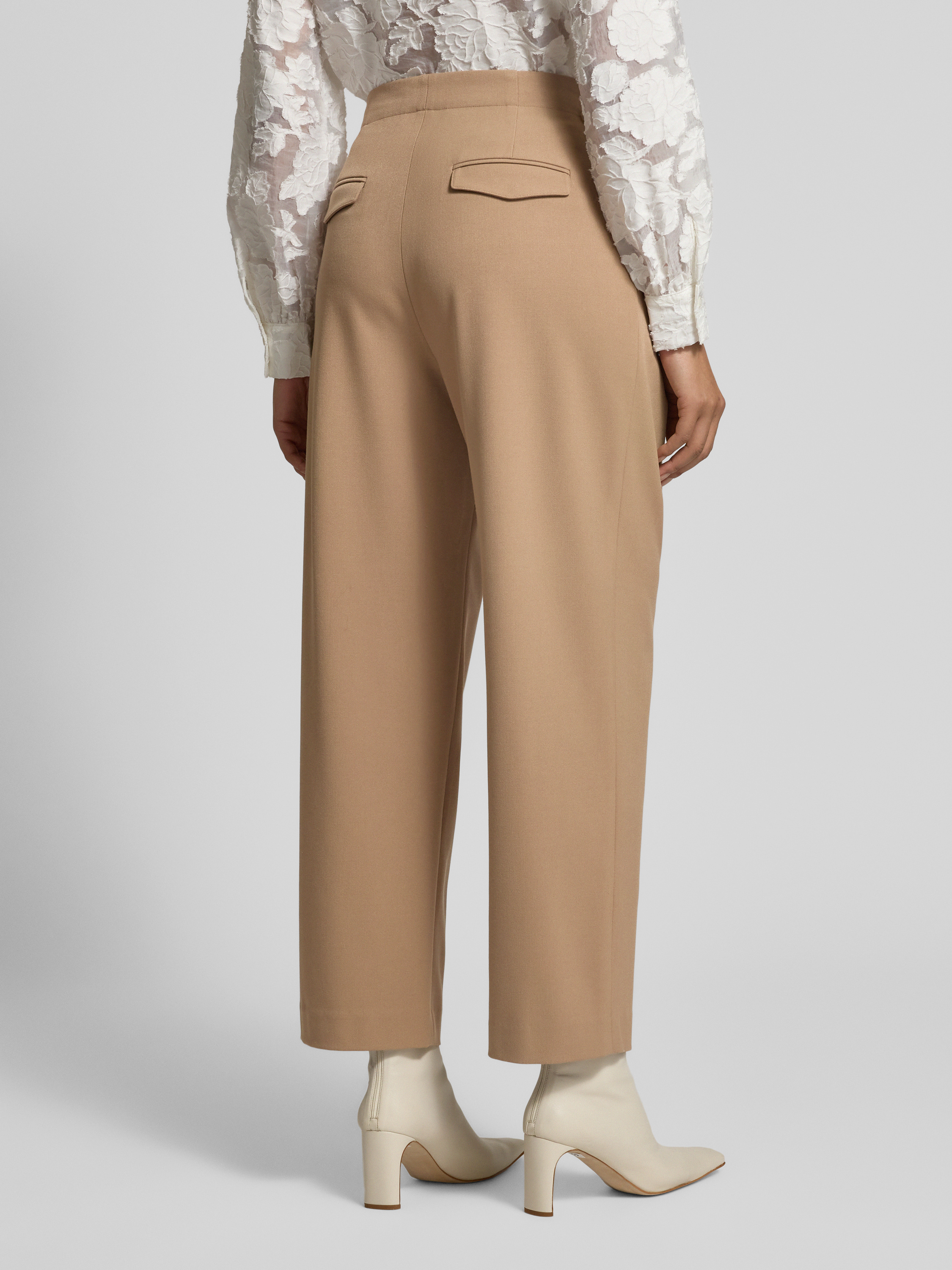 Spodnie materiałowe z szerokimi nogawkami i lamowanymi kieszeniami z tyłu - orzechowy