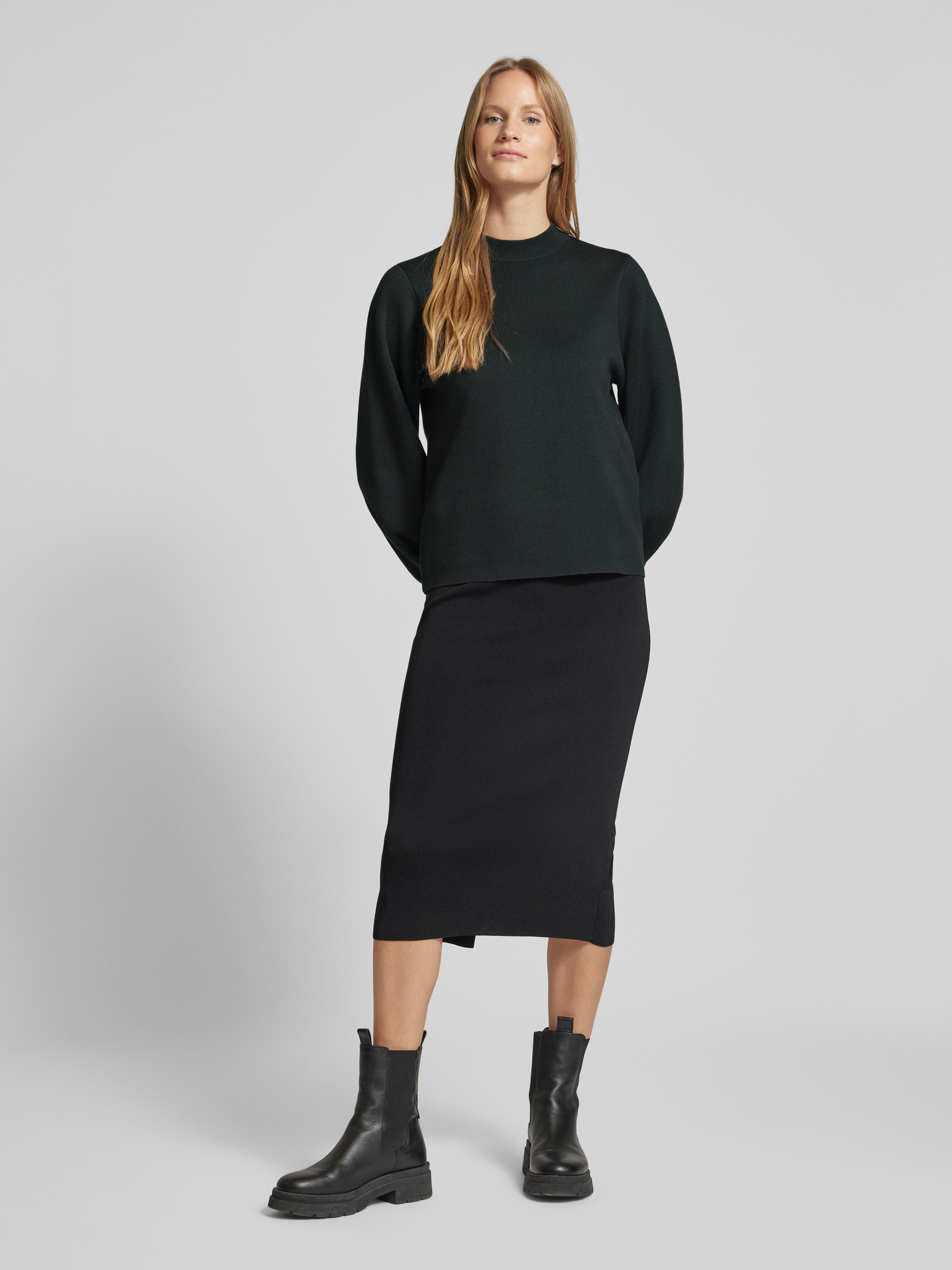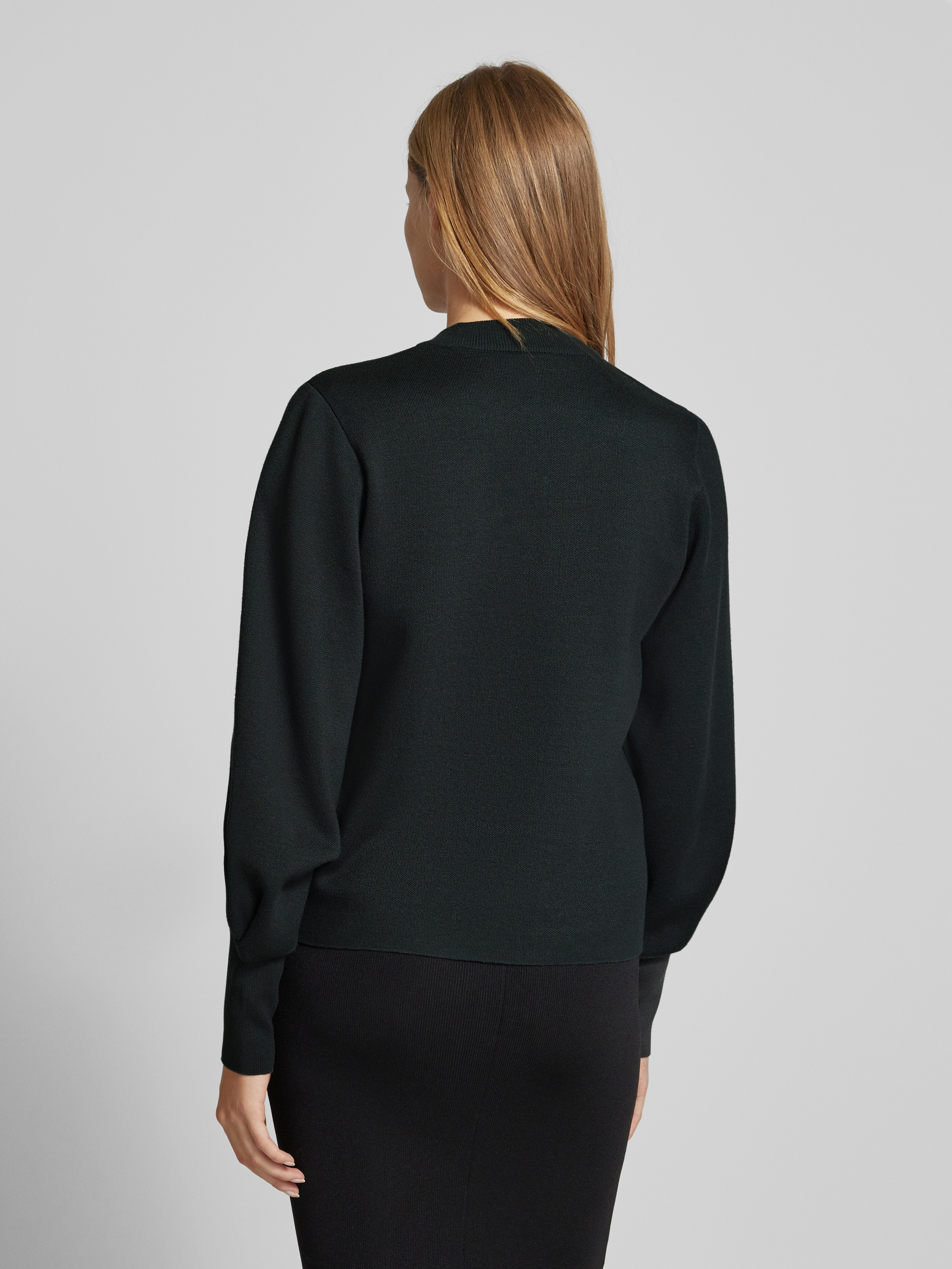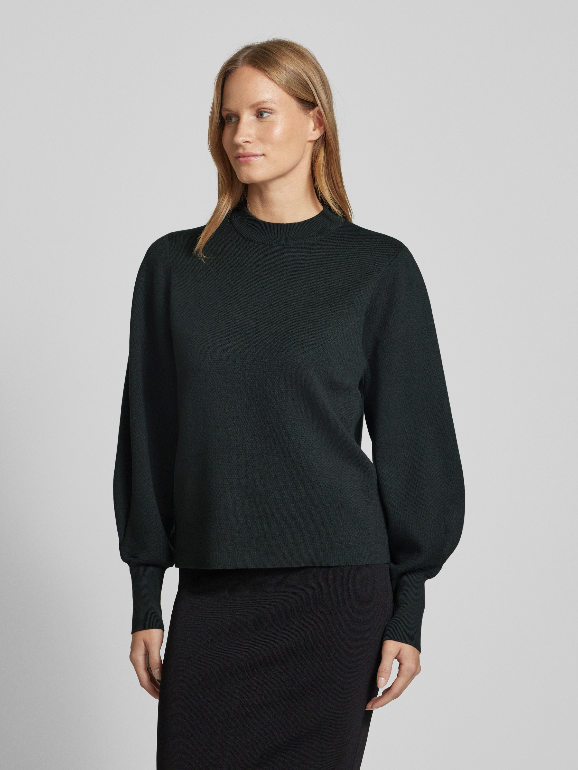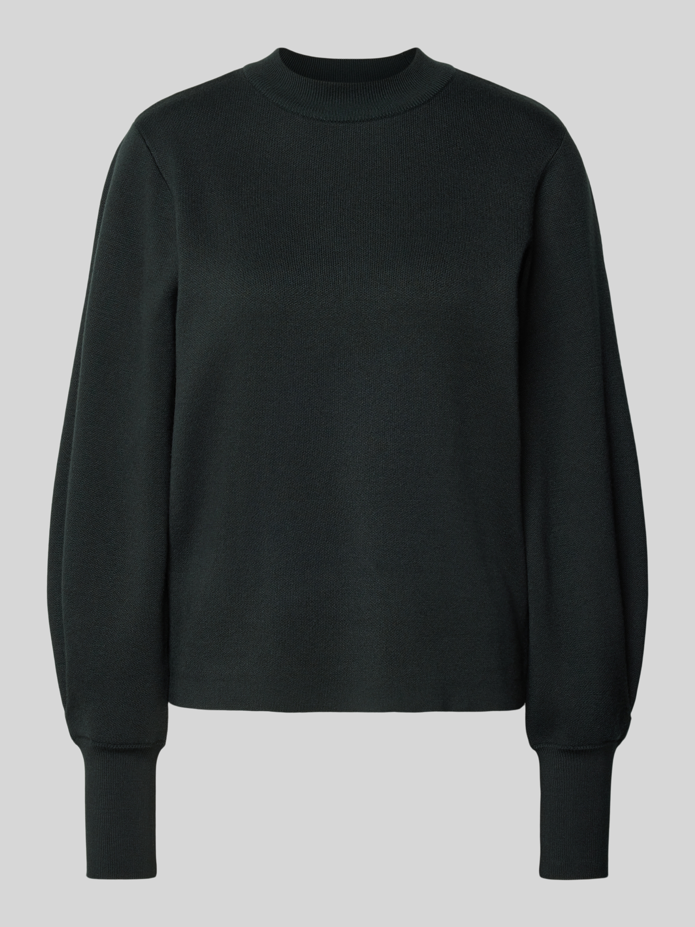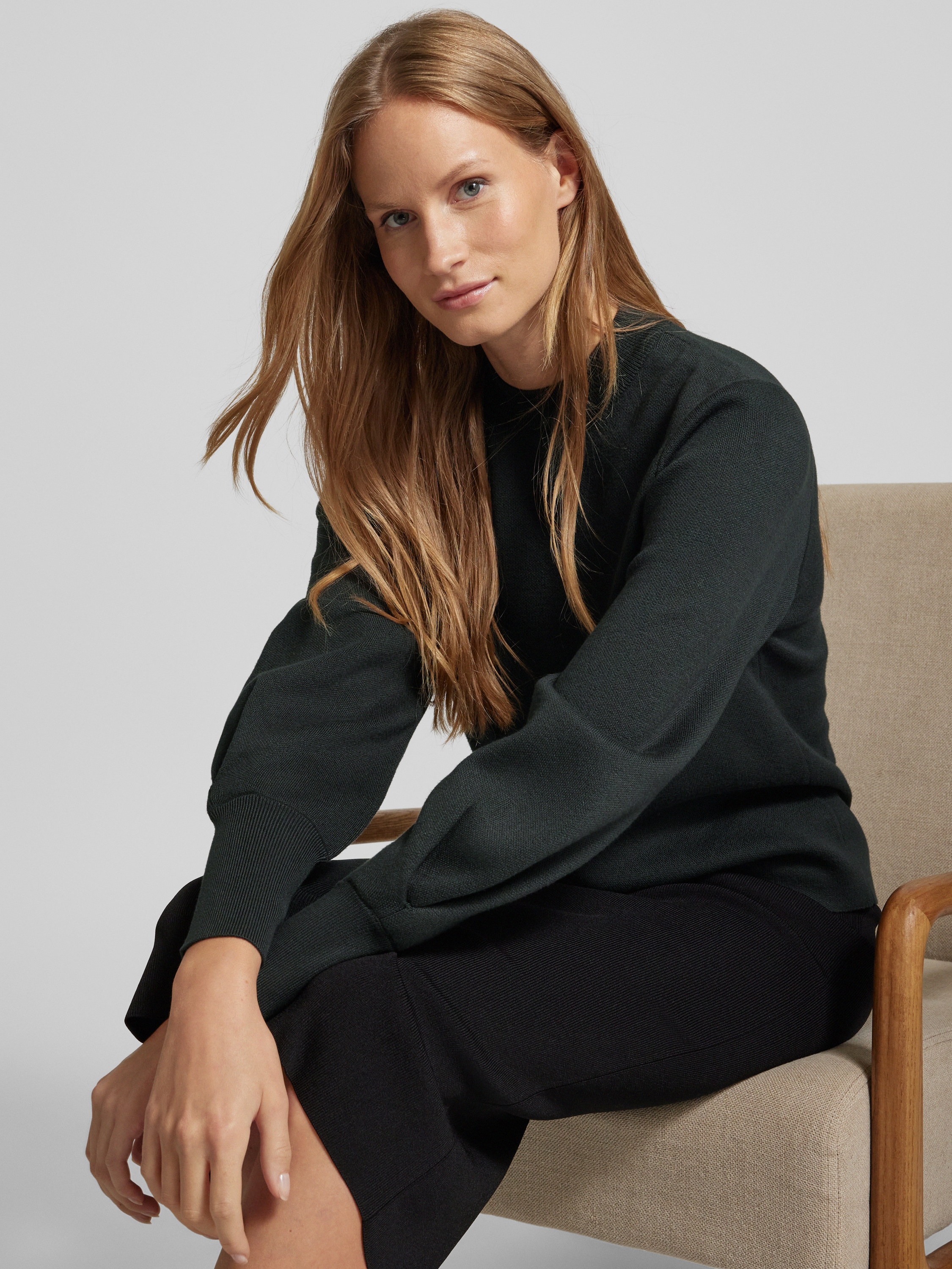 Sweter z dzianiny z mieszanki wiskozy z bufiastymi rękawami - butelkowy zielony