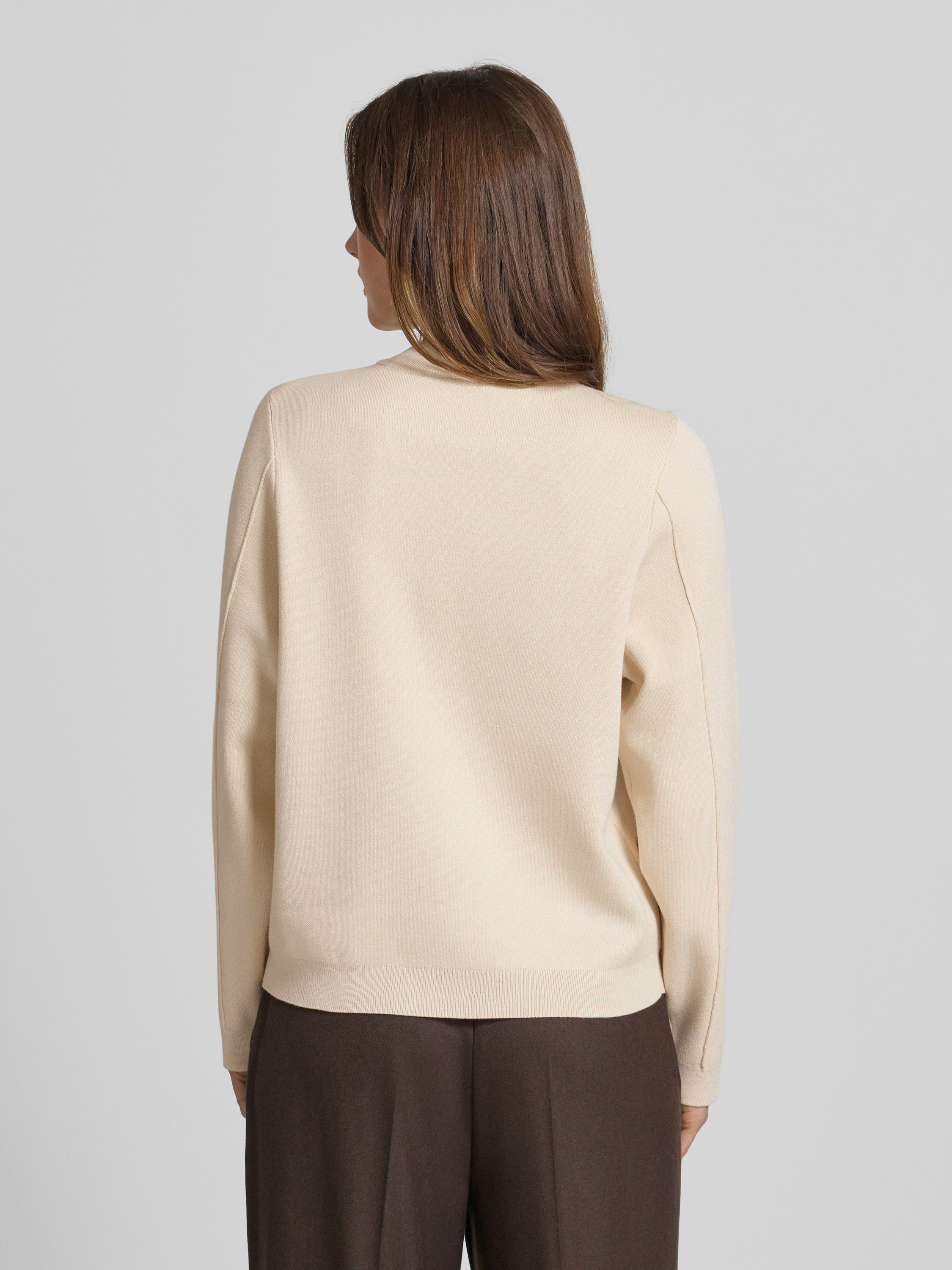 Sweter z dzianiny z okrągłym dekoltem - écru