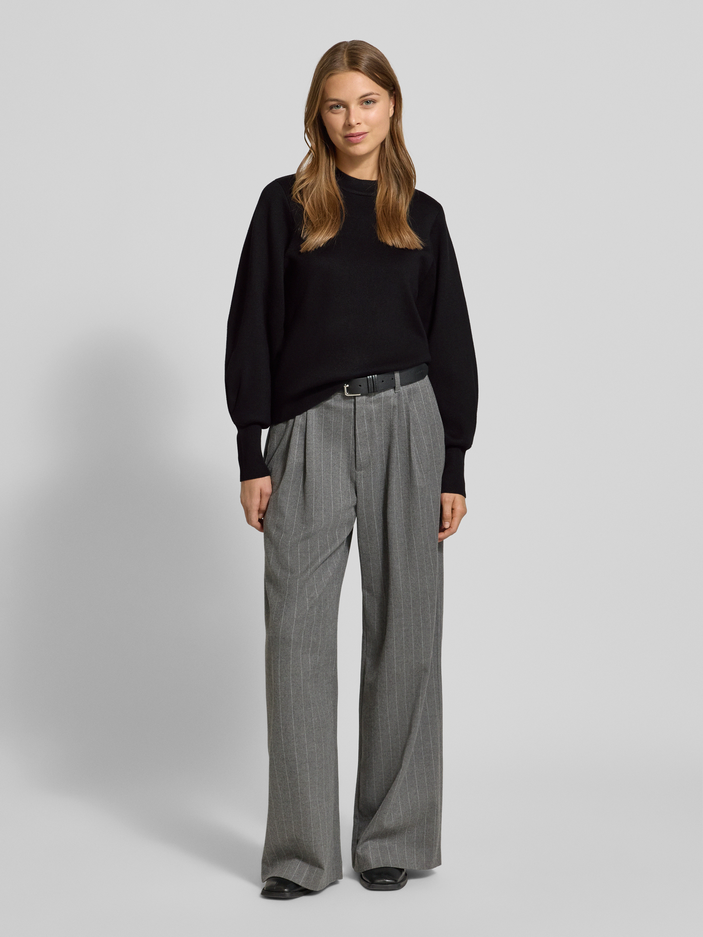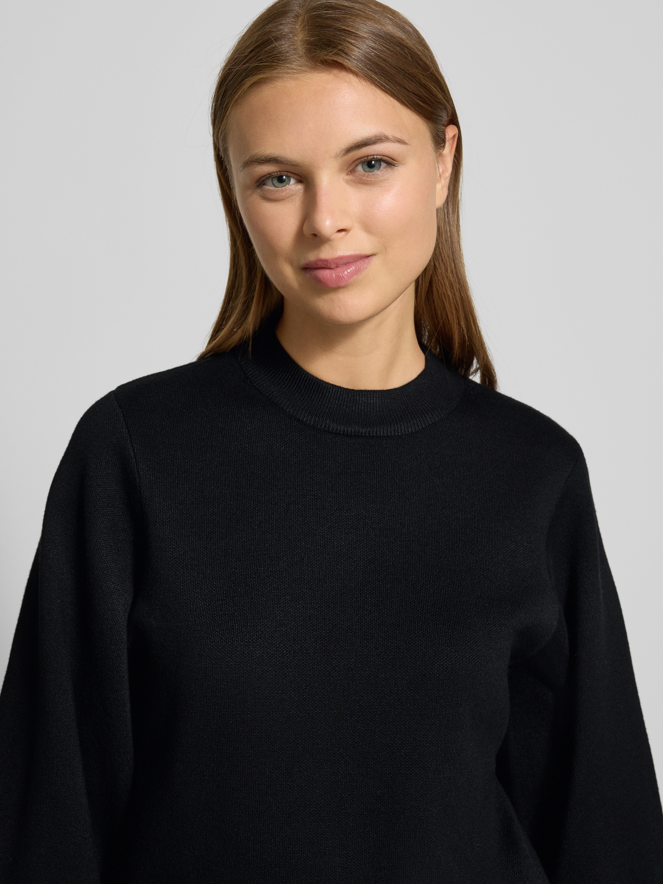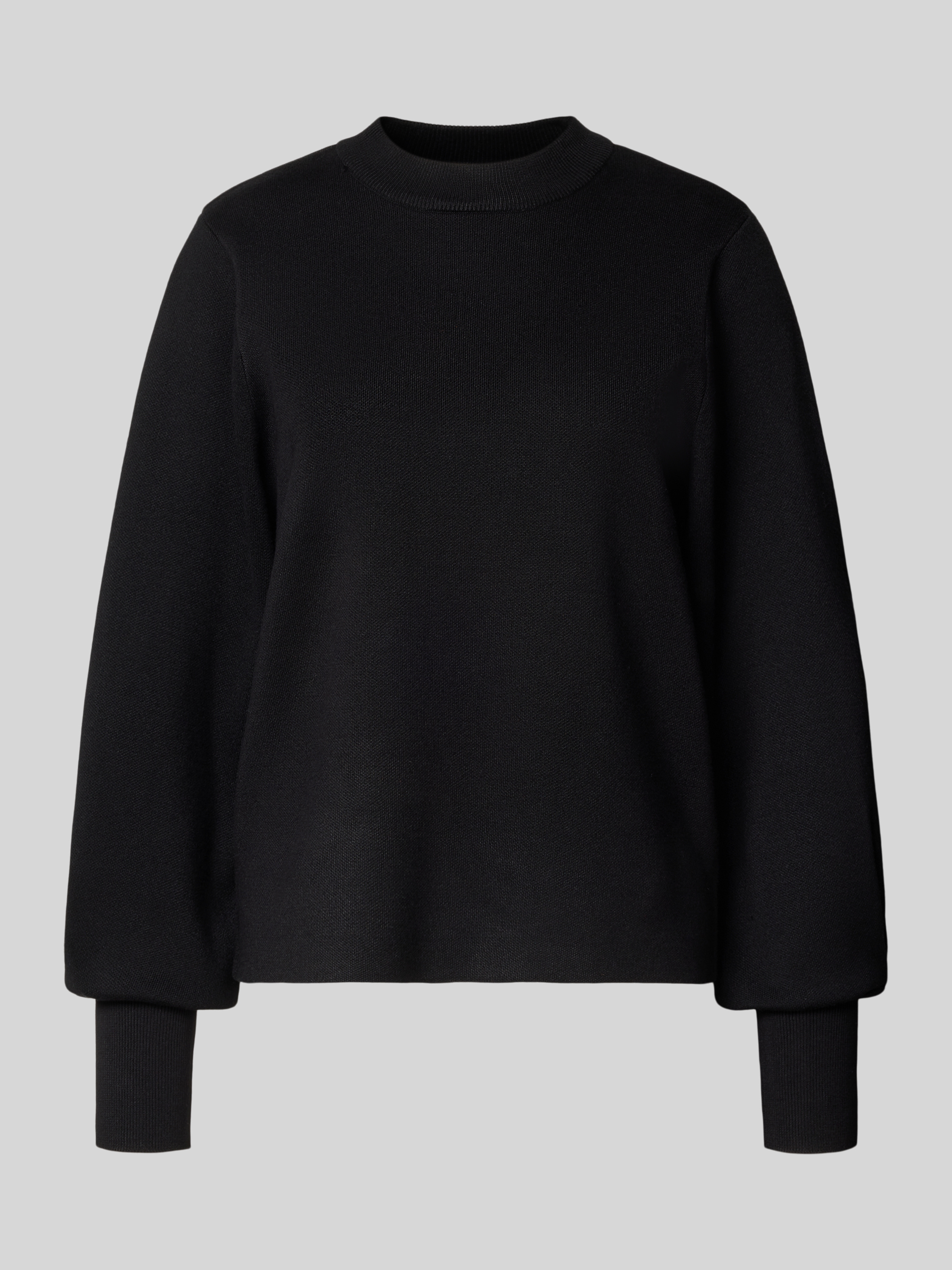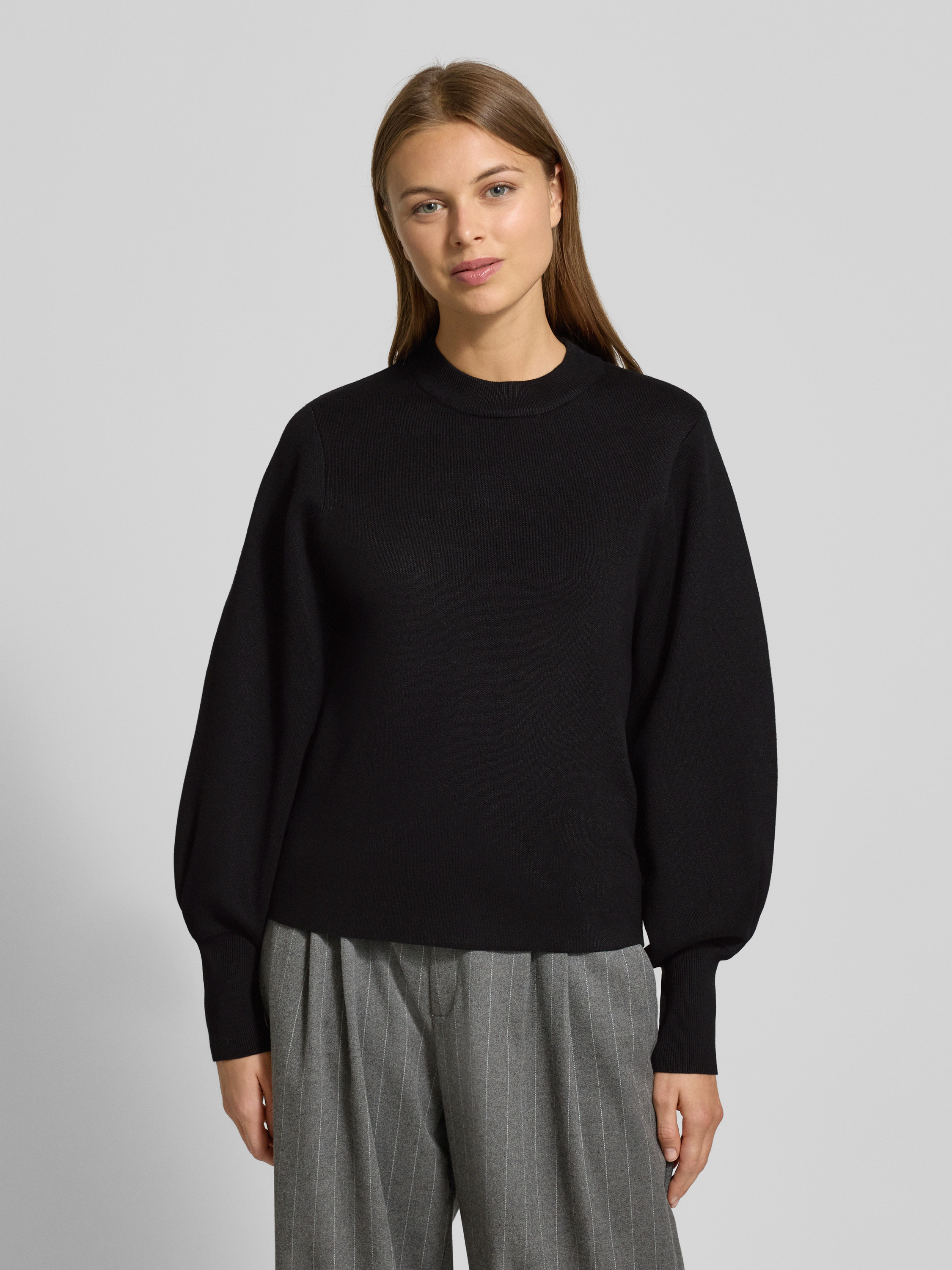 Sweter z dzianiny z prążkowanymi wykończeniami - czarny
