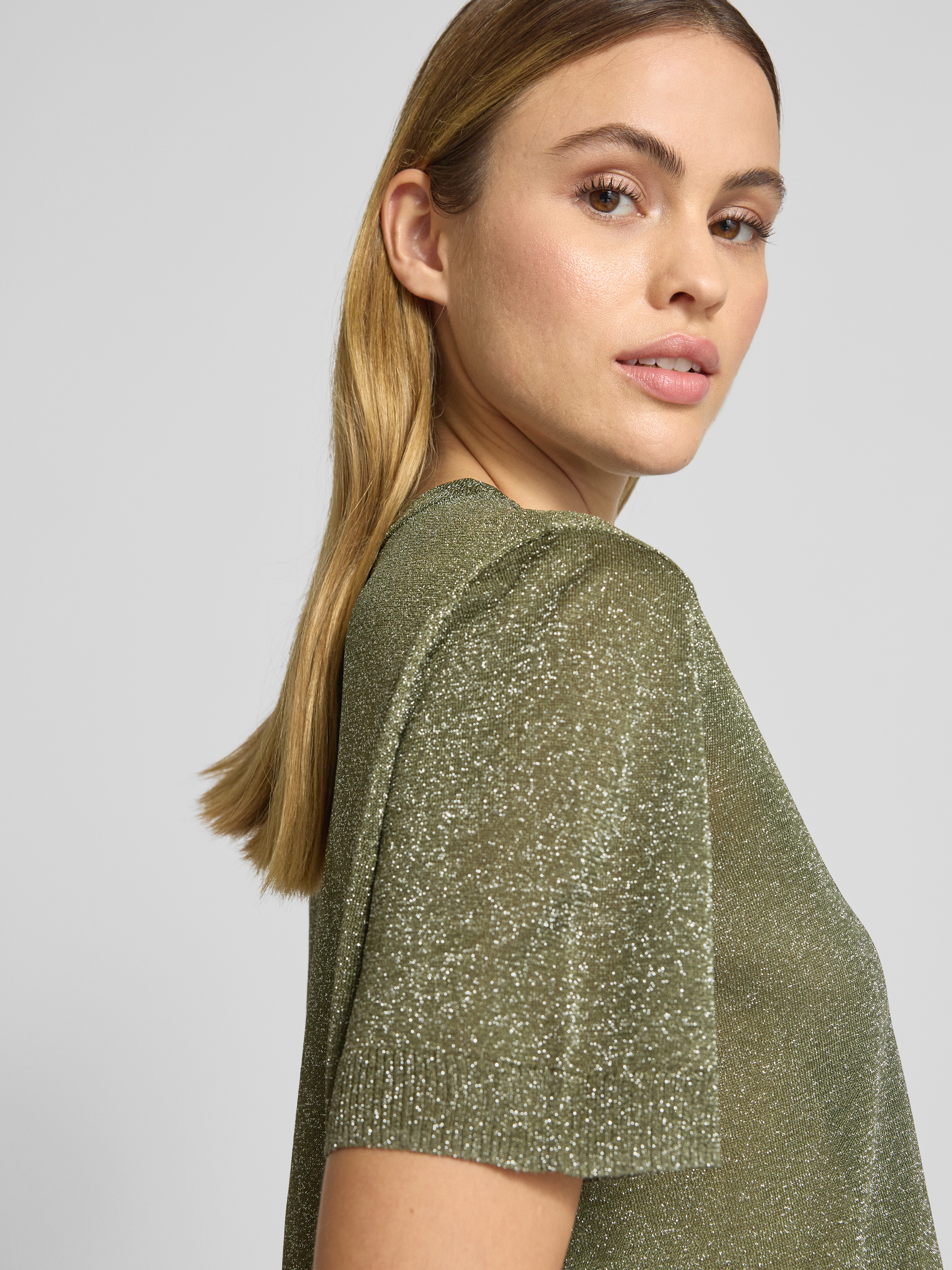Sweter z dzianiny z rękawem o dł. 1/2 - ziemisty brązowy