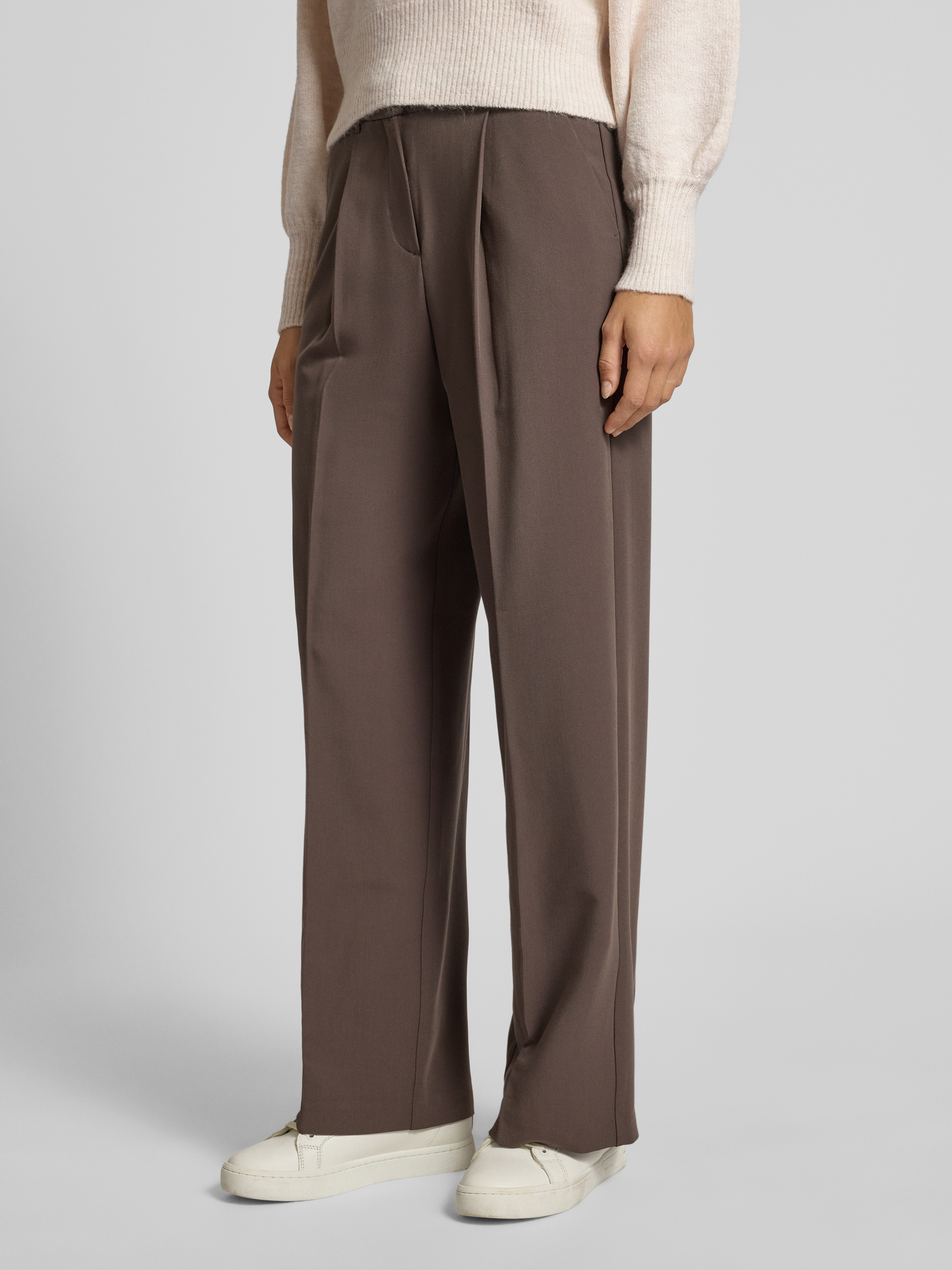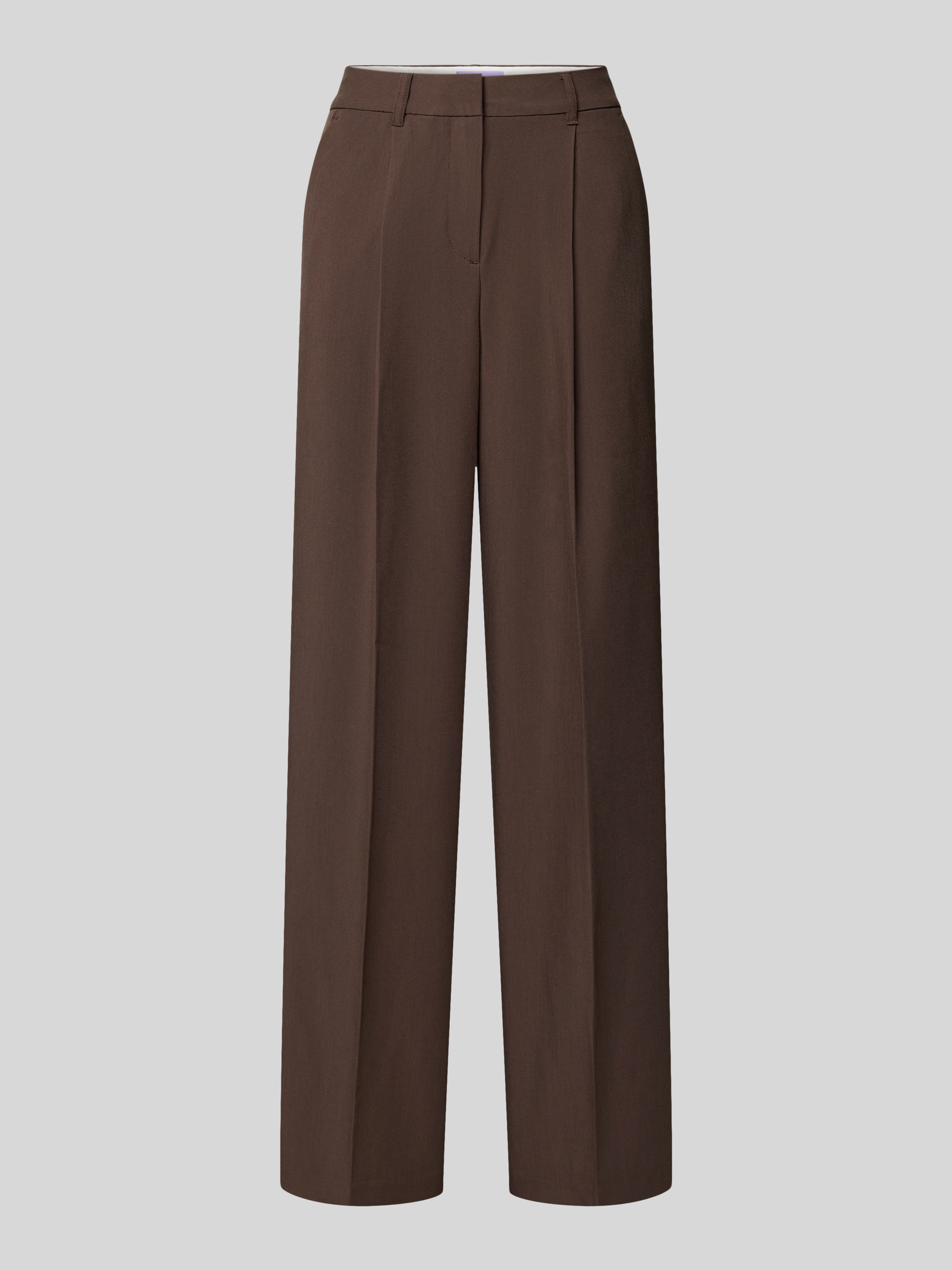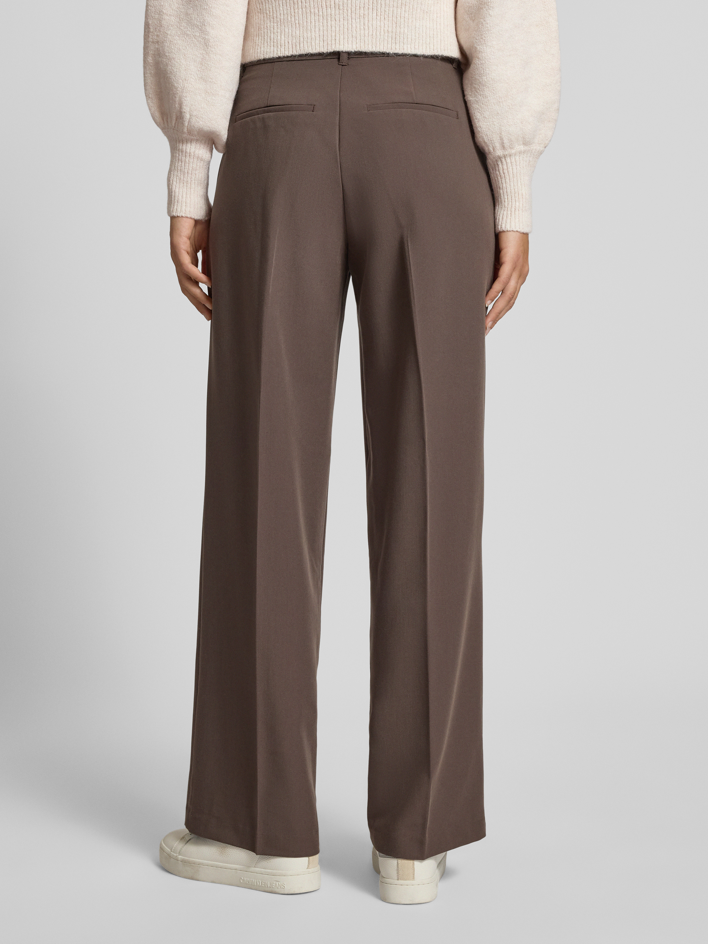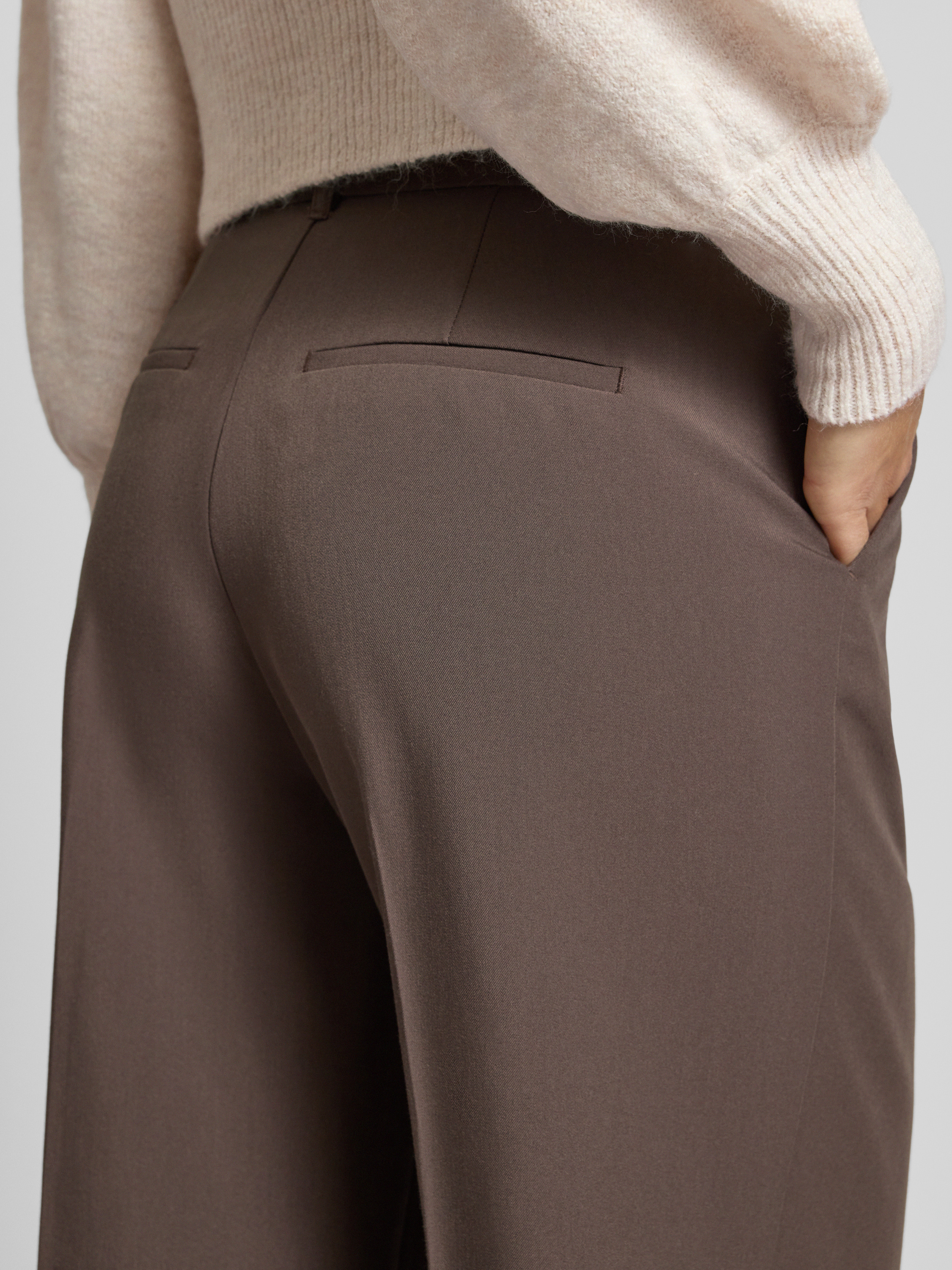 Spodnie materiałowe o szerokim kroju z dodatkiem wiskozy model ‘Ellis’ - ciemnobrązowy