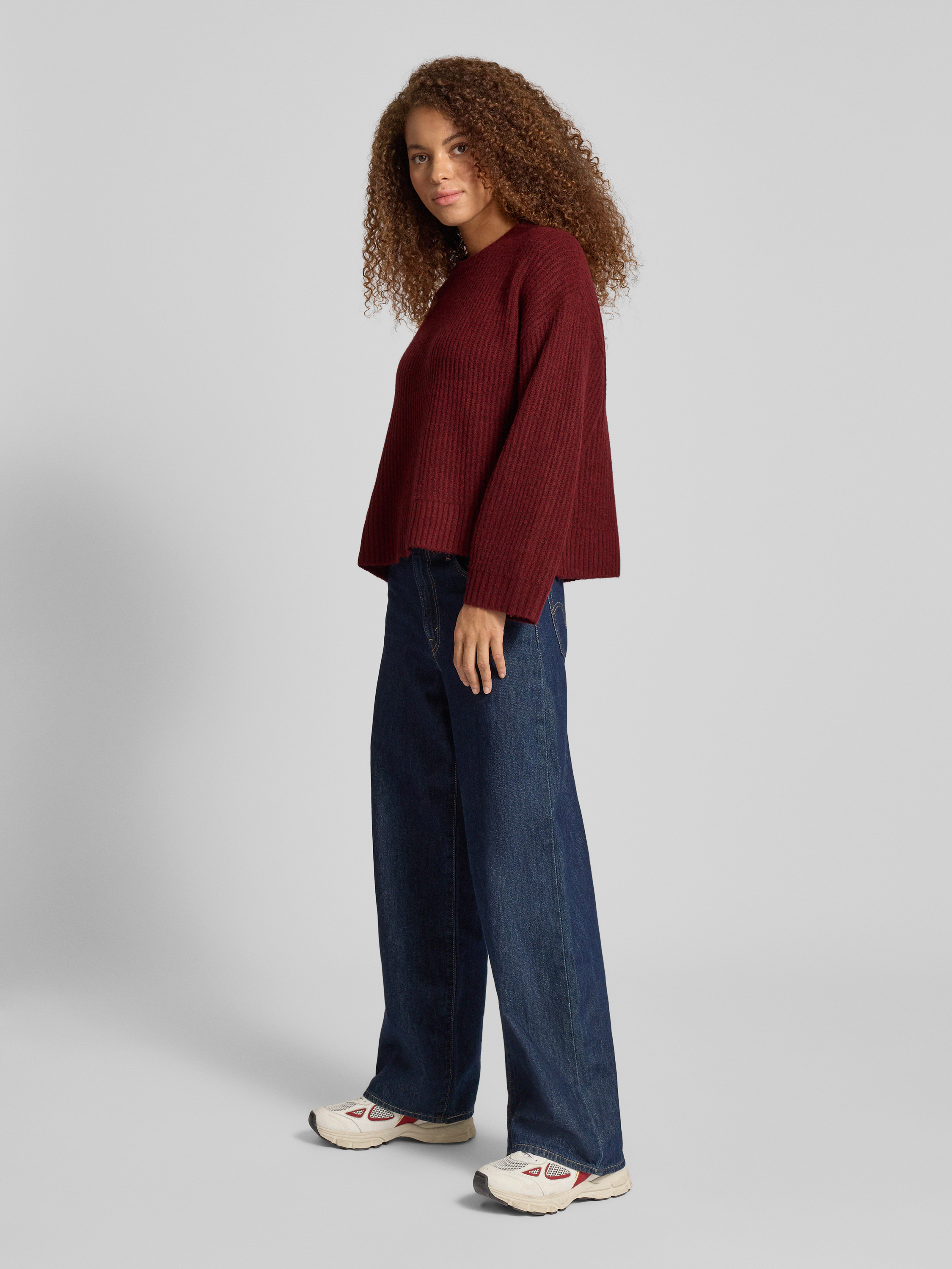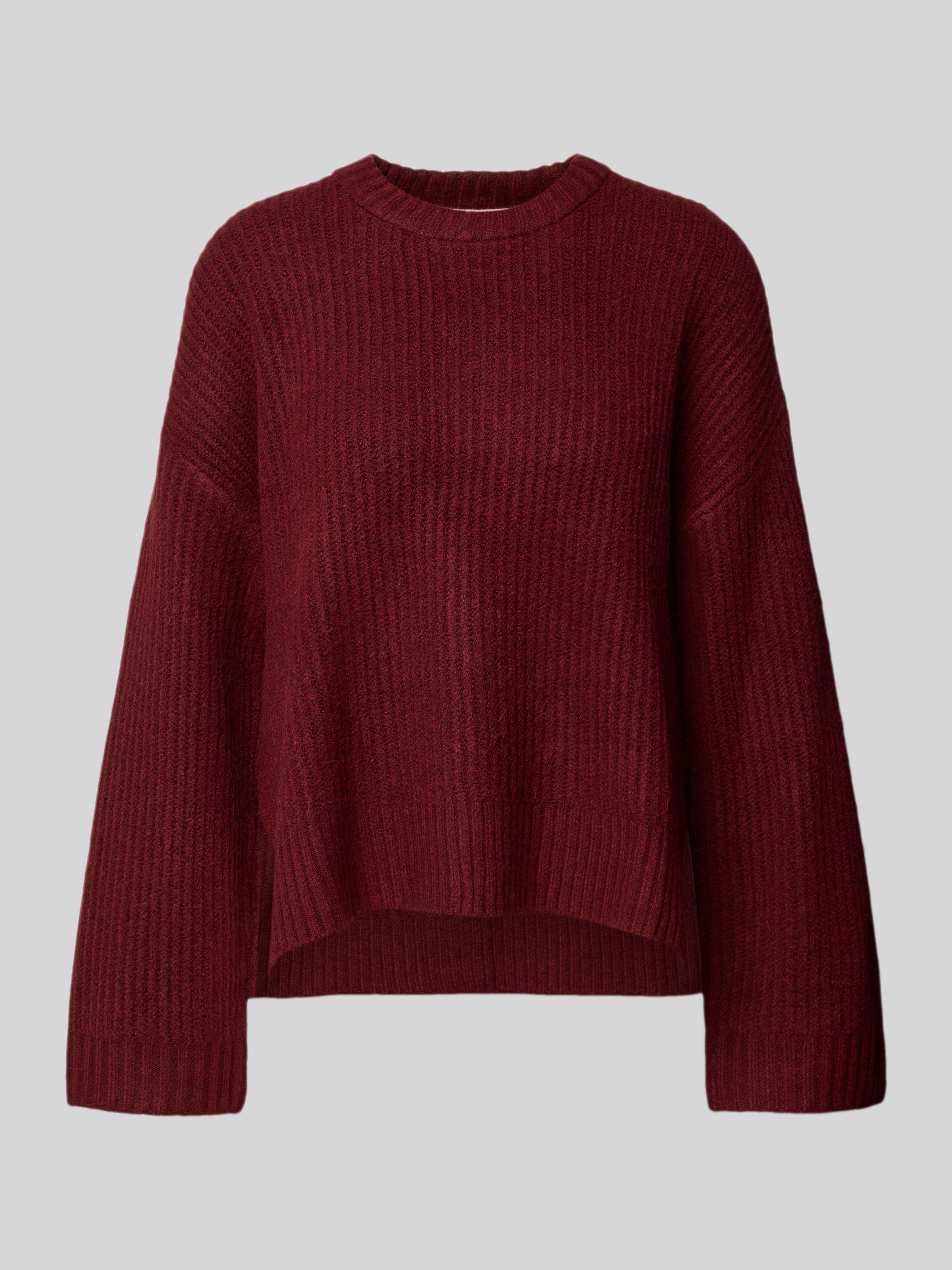 Sweter z dzianiny o kroju oversized z prążkowanymi wykończeniami model ‘SIGGA’ - bordowy