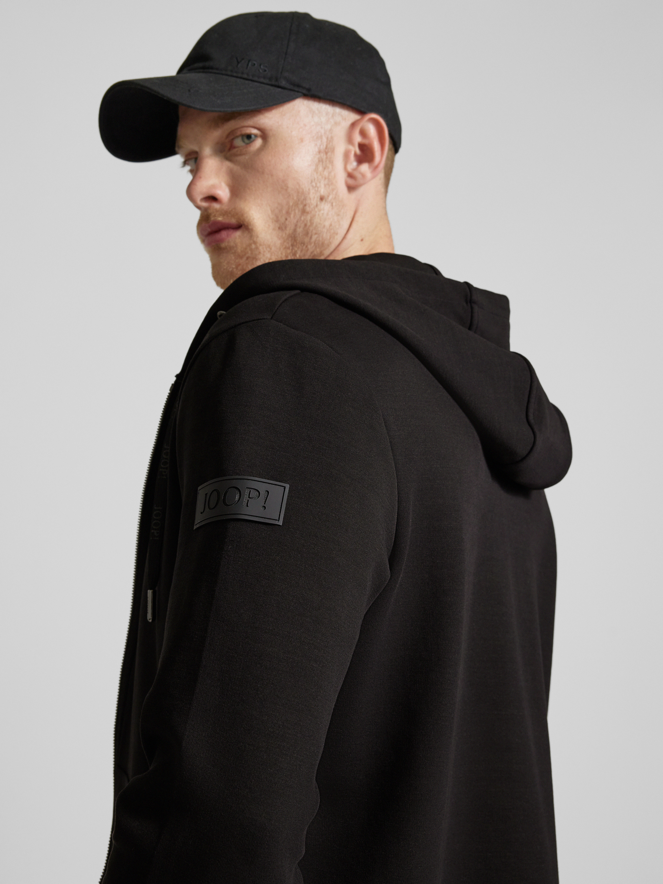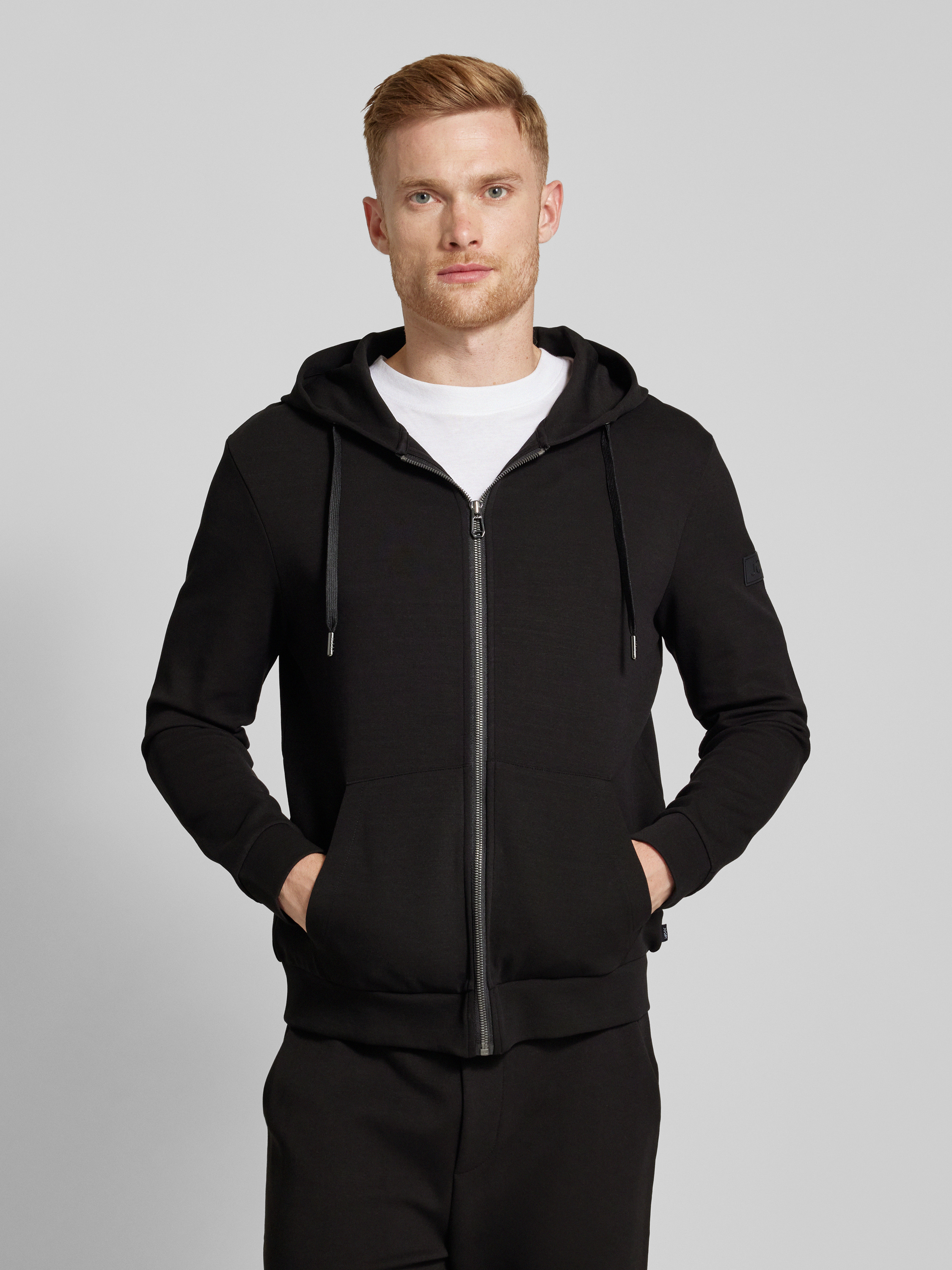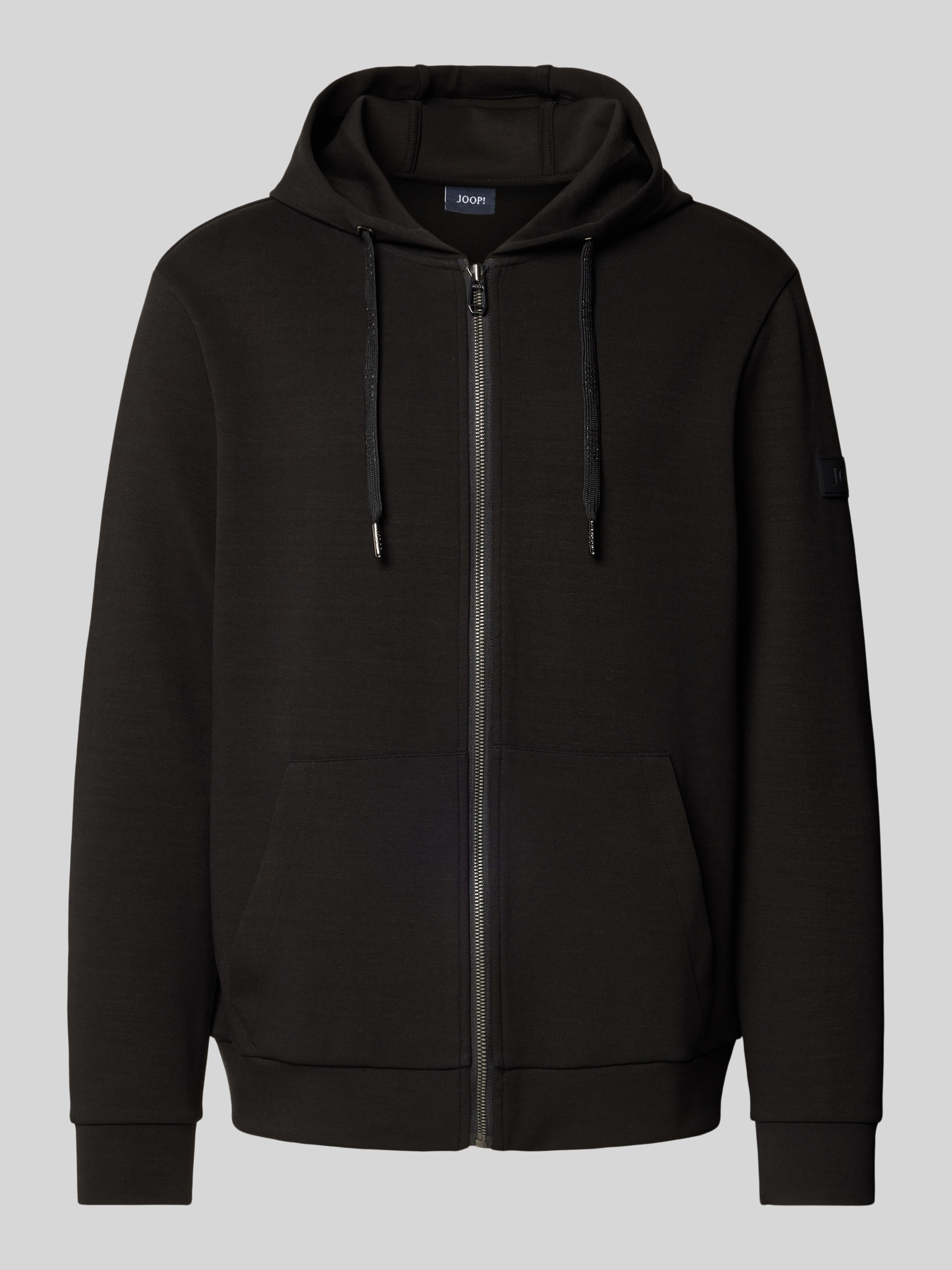 JOOP! CollectionBluza rozpinana męska JOOP! Collection;Mieszanka bawełny z dodatkiem streczu;Luźny krój;Model ‘Stratos’;Kaptur z tunelem;Zamek błyskawiczny na całej długości;Boczne wpuszczane kieszenie;Długość tyłu w rozmiarze M: 65 cm;Długość rękawa w rozmiarze M: 64 cm - czarny